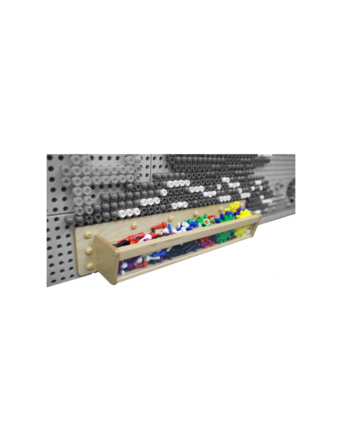 - - Konteineris tvirtinamas tiesiai prie STEM sienos naudojant Masterkidz varžtus, todėl net vaikas gali jį pritvirtinti bet kurioje lentos vietoje.