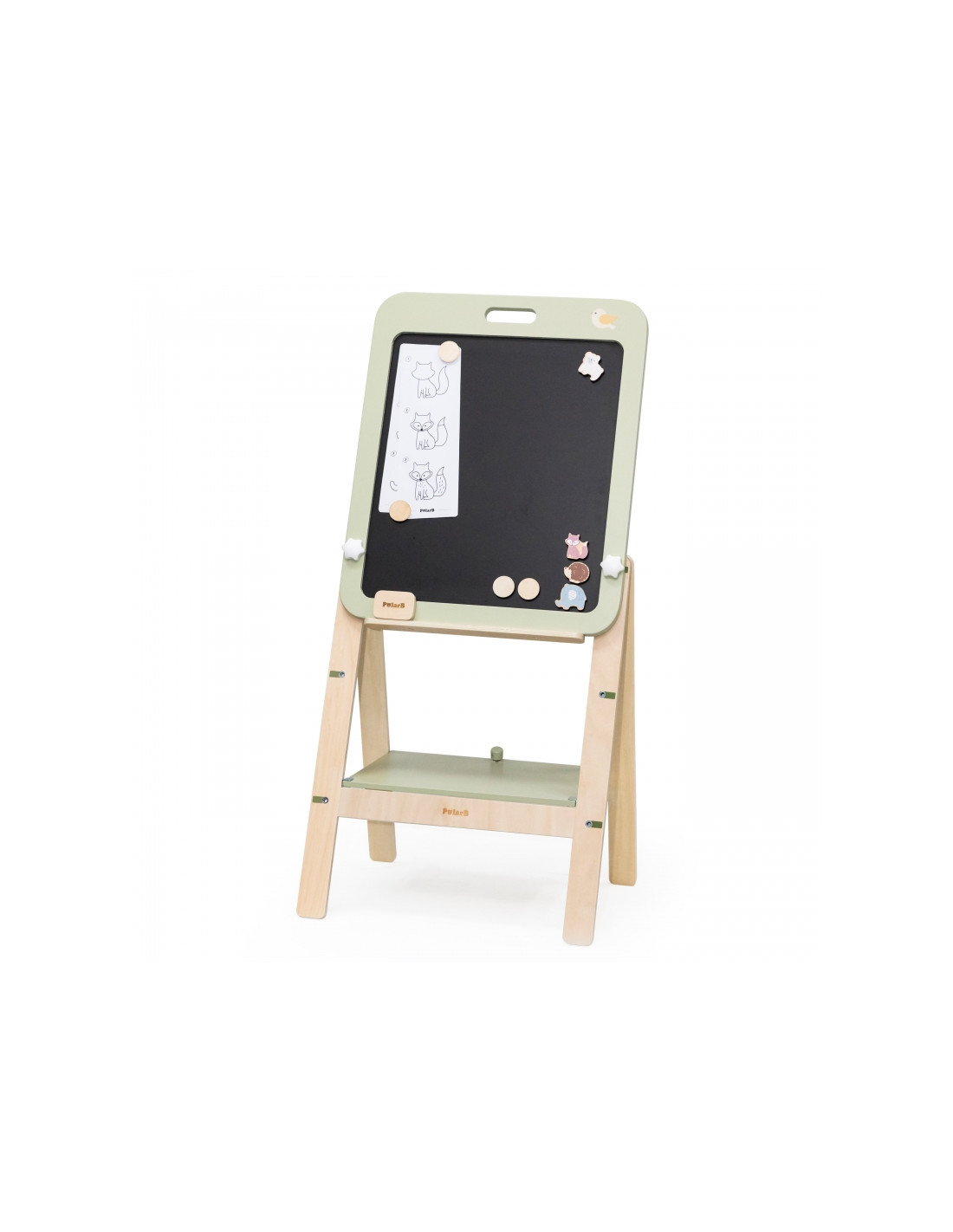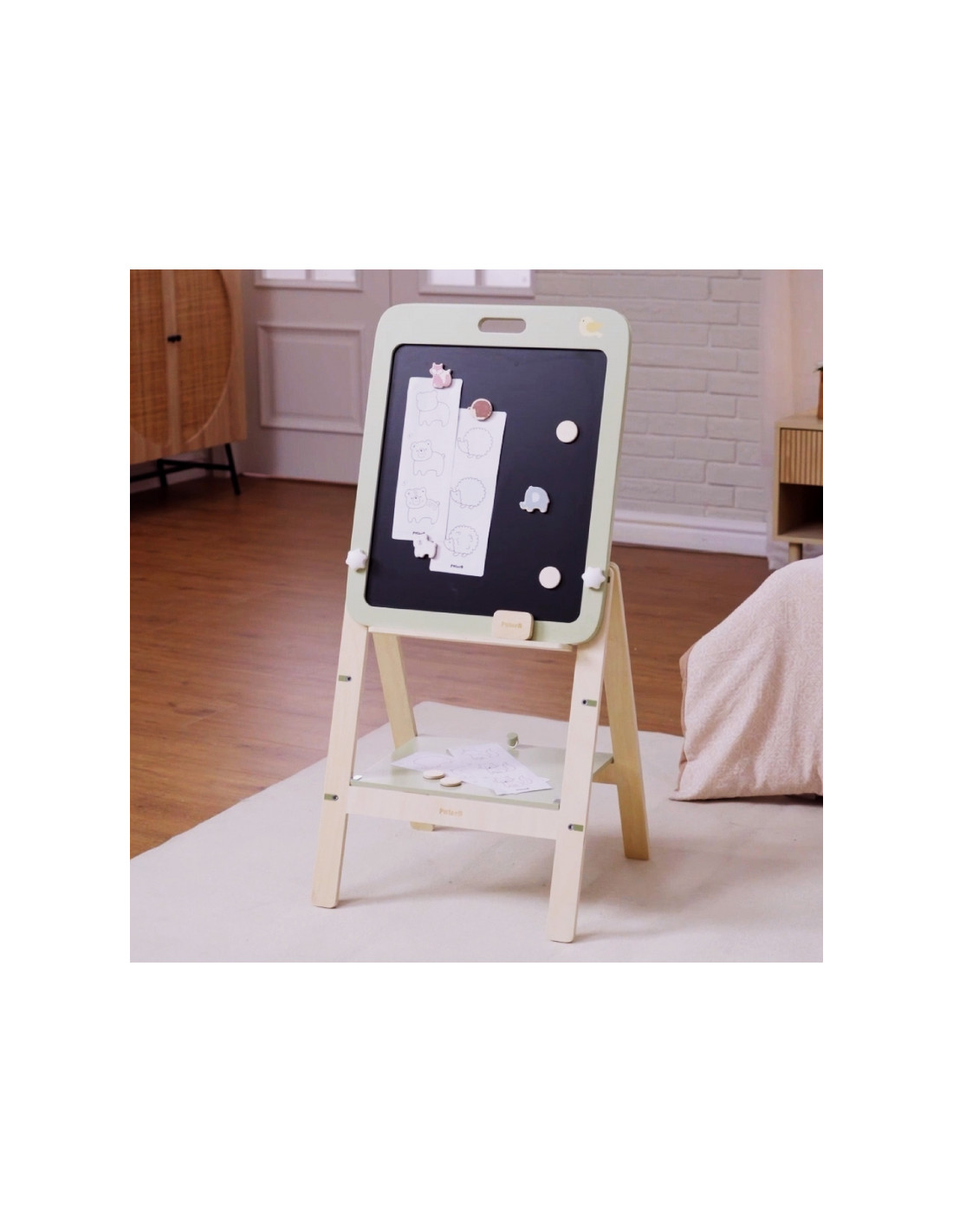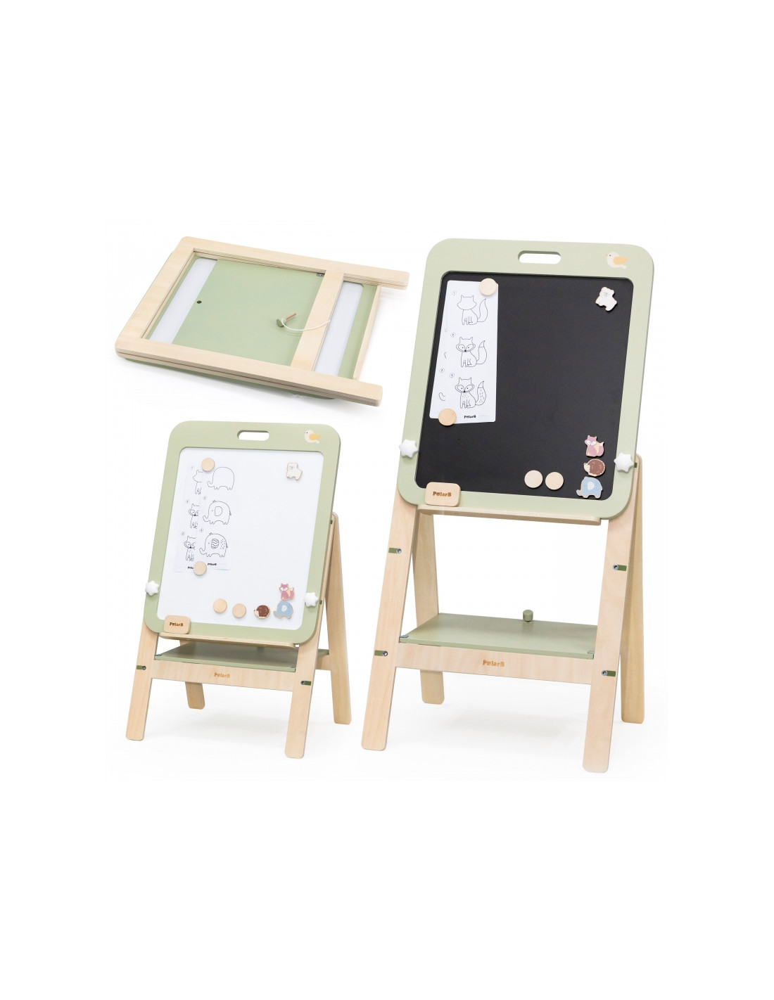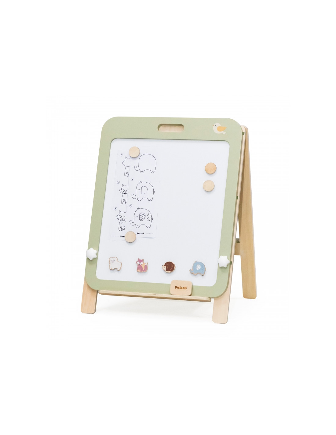 Medinė lenta iš „PolarB“ serijos yra puiki priemonė mažiesiems menininkams. Lenta turi dvipusį paviršių – vienoje pusėje yra klasikinė juoda kreidinė lenta, o kitoje – magnetinė balta lenta. Dėl reguliuojamo aukščio ją galima lengvai pritaikyti augančiam vaikui, užtikrinant patogų žaidimą skirtingais raidos etapais. Be to, lentą galima nuimti ir pakabinti ant sienos kaip dekoraciją po žaidimo!