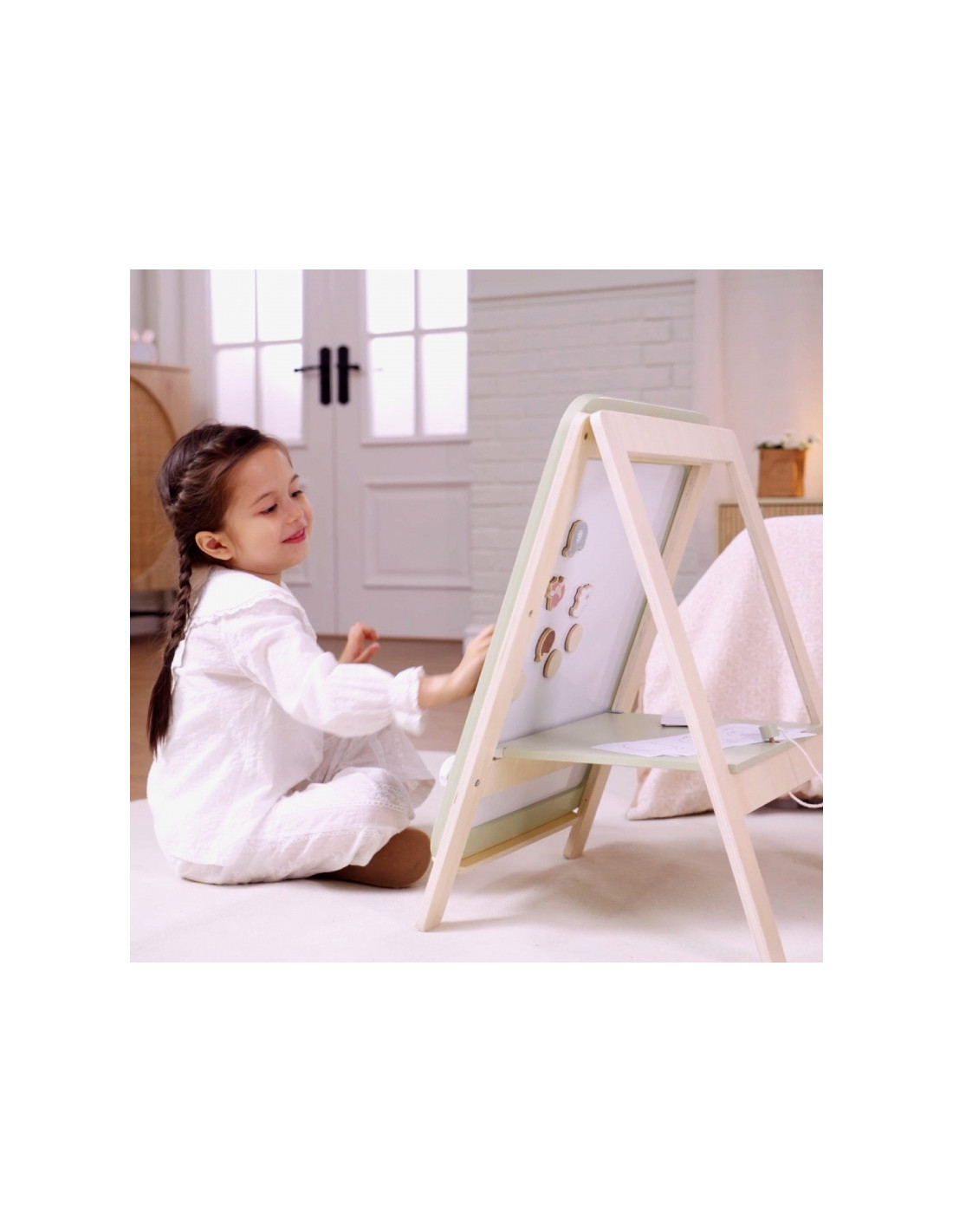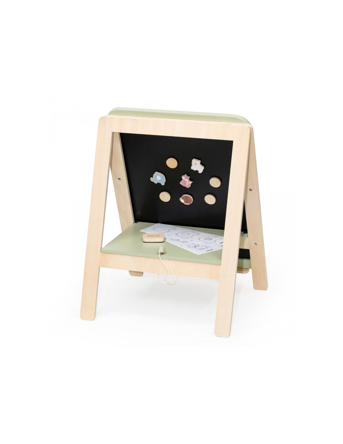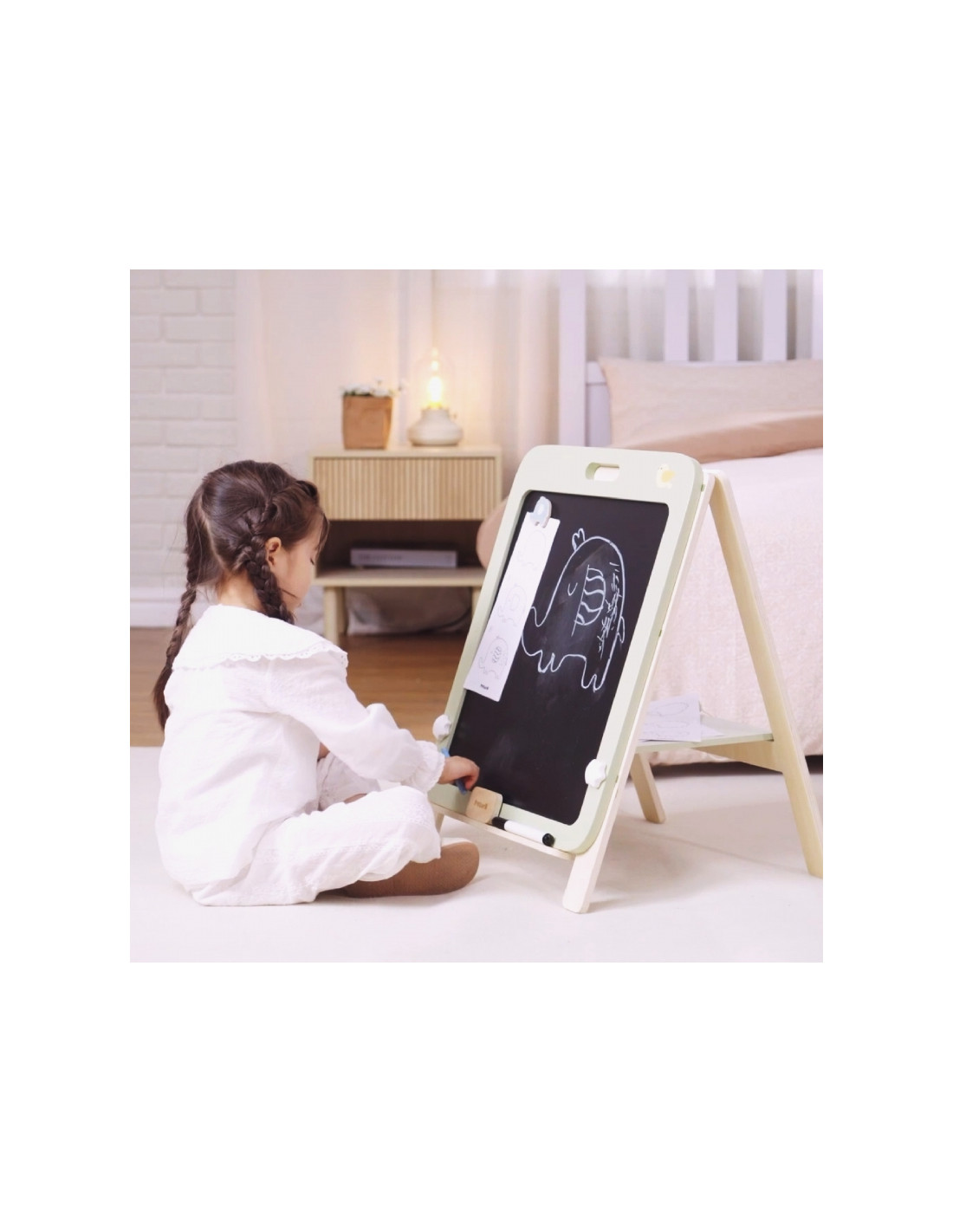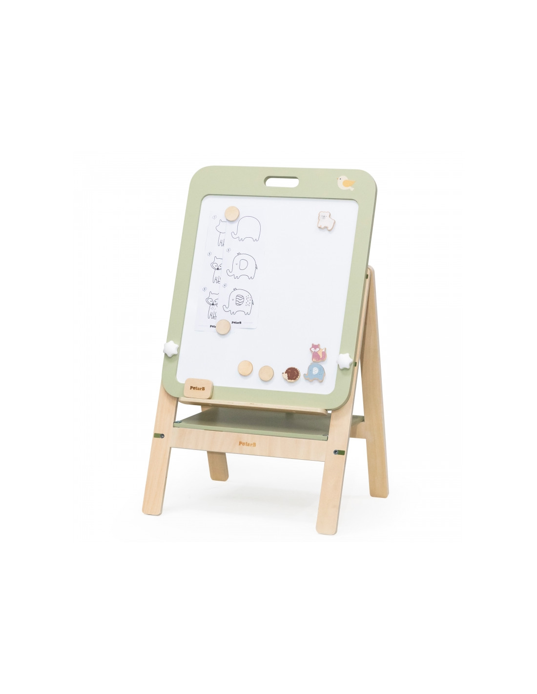 Medinė lenta iš „PolarB“ serijos yra puiki priemonė mažiesiems menininkams. Lenta turi dvipusį paviršių – vienoje pusėje yra klasikinė juoda kreidinė lenta, o kitoje – magnetinė balta lenta. Dėl reguliuojamo aukščio ją galima lengvai pritaikyti augančiam vaikui, užtikrinant patogų žaidimą skirtingais raidos etapais. Be to, lentą galima nuimti ir pakabinti ant sienos kaip dekoraciją po žaidimo!