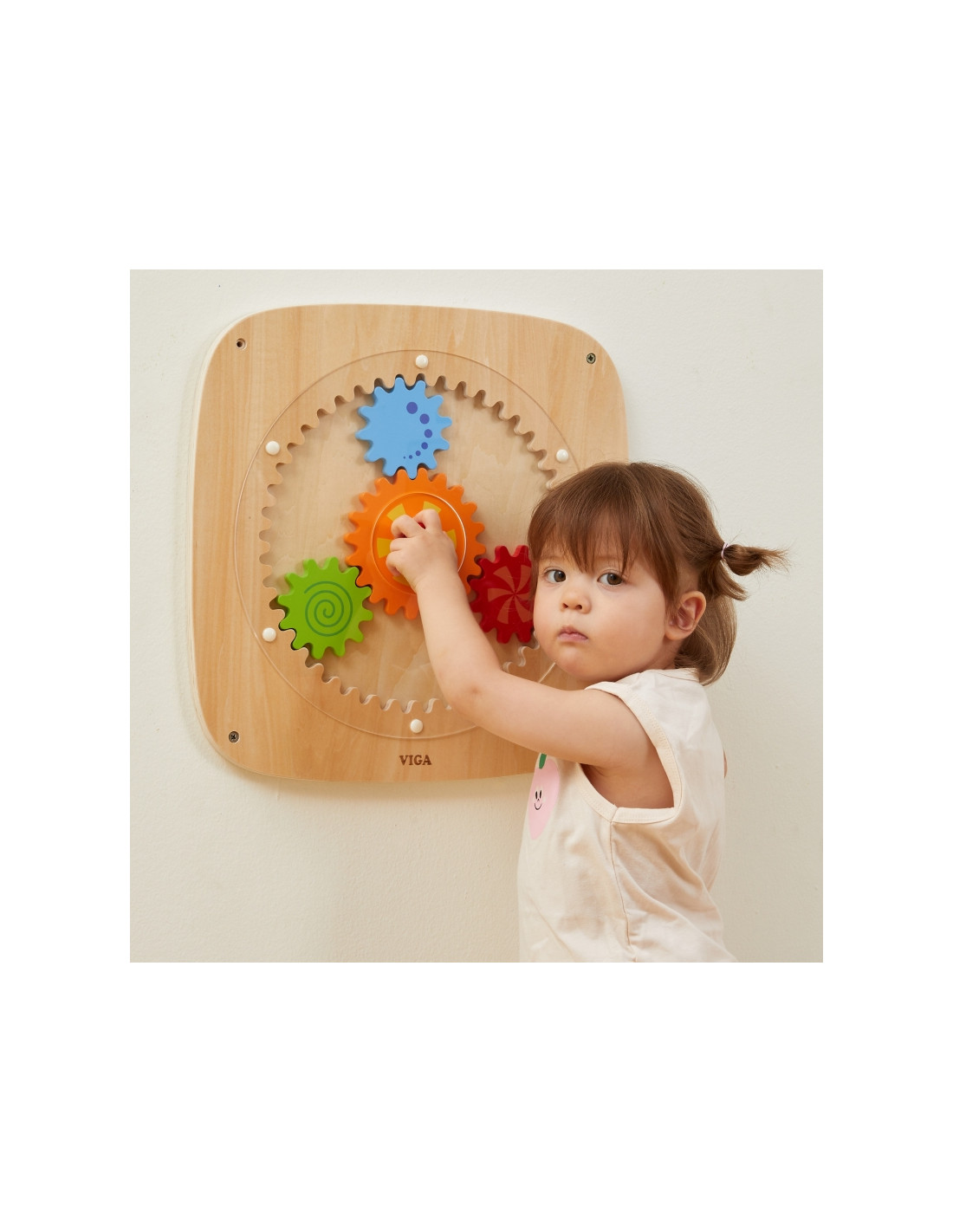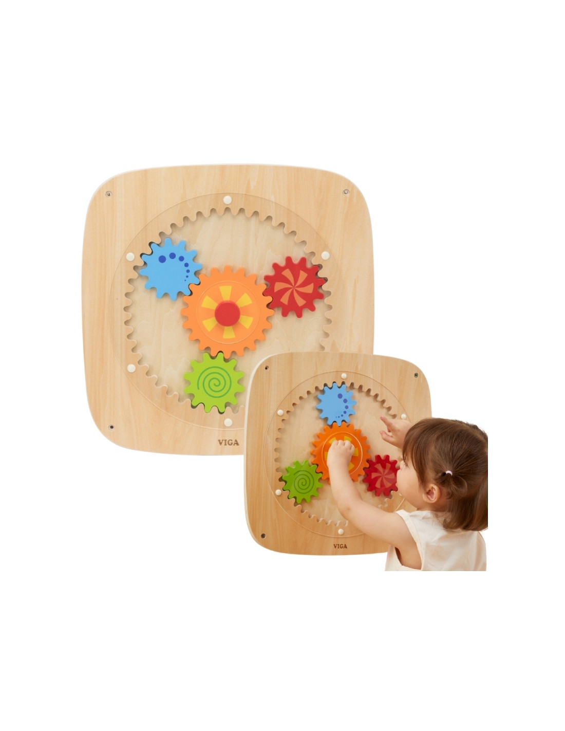 Atraskite nuostabų lavinamąjį žaislą, kuris lavina jūsų vaiko smulkiąją motoriką ir loginį mąstymą! Ši VIGA sieninė lenta su spalvingomis pavaromis yra ne tik puiki pramoga, bet ir mokymosi priemonė. Vaikai gali pasukti rankenėlę, kad pajudintų visas pavaras. Susijungiančios pavaros priverčia jas visas suktis vienu metu, padėdamos jiems suprasti „jėgos ir judėjimo“ sąvoką. Pavaros turi skirtingus raštus, sukasi kurdamos vaizdinius efektus. Žaislas pagamintas tik iš medžio, užtikrinant patvarumą ir saugumą. Jis puikiai tinka kaip didesnės veiklos sienos dalis vaiko kambaryje, darželyje ar darželyje. Tai puikus pasirinkimas bet kuriam smalsiam mažyliui!
