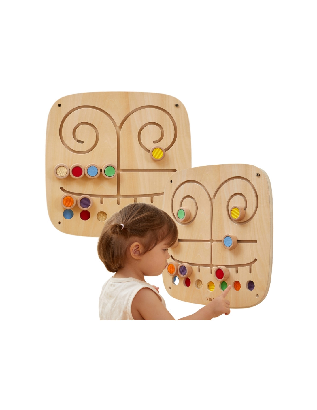 Atraskite VIGA sieninę plokštę „Paliesk ir suderink“ – nuostabų edukacinį žaislą, skirtą vaikų sensoriniam ir regimajam suvokimui lavinti. Lenta pasižymi 7 unikaliomis tekstūromis ir spalvomis, kurias mažyliai gali judinti labirinte, derindami jas tarpusavyje. Žaidimas moko atpažinimo ir diferencijavimo, lavina kognityvinius įgūdžius, ugdo sensorinį sąmoningumą ir susikaupimą. Ši medinė plokštė puikiai tinka žaidimų zonai vaiko kambaryje, darželyje ar darželyje. Leiskite savo vaikui tyrinėti jį supantį pasaulį per savo pojūčius. Šis žaislas suteikia valandų valandas įdomaus mokymosi kartu su pramogomis, o tvirta konstrukcija užtikrina patvarumą ir saugumą.