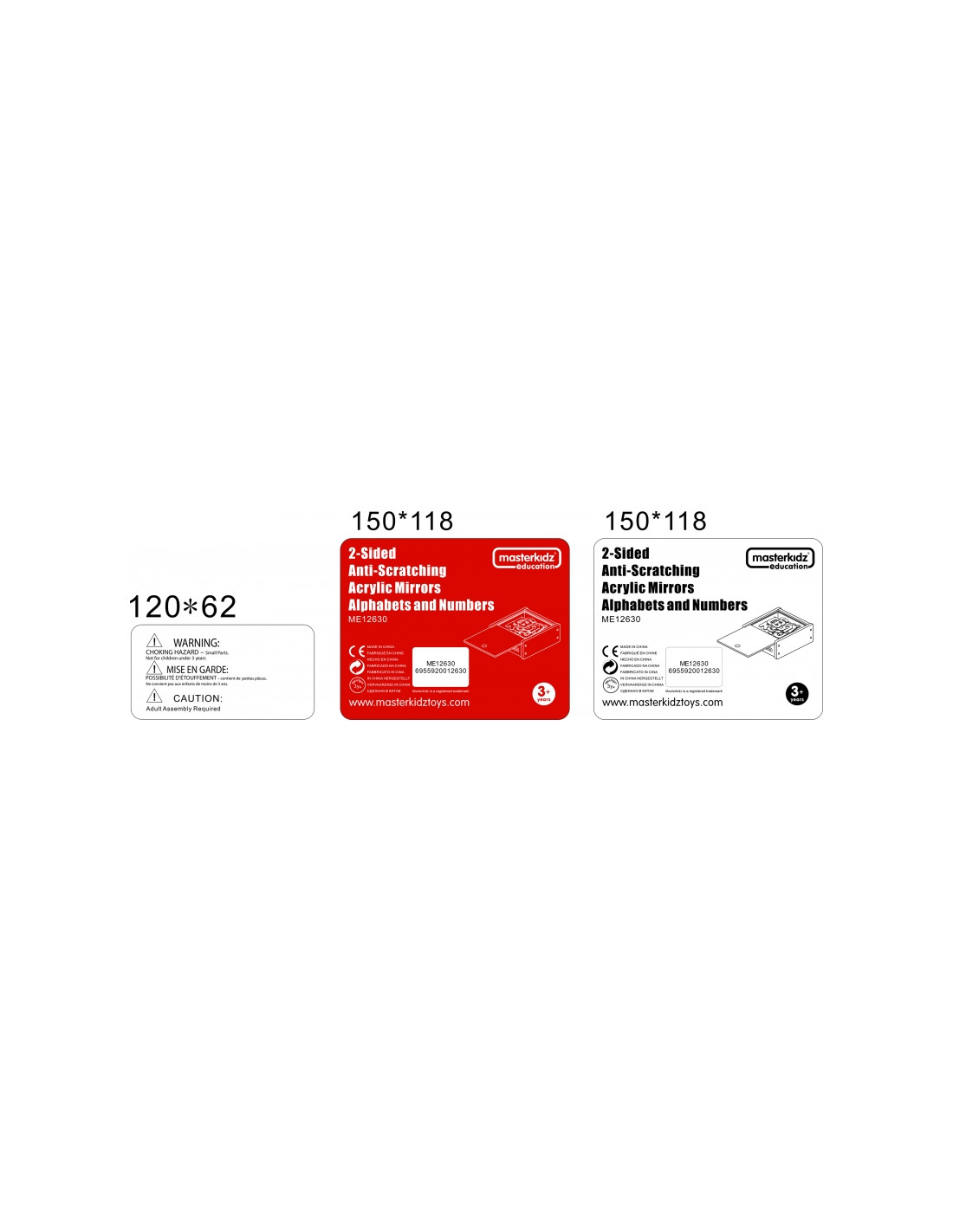 MASTERKIDZ dvipusiai akriliniai veidrodžiai, raidės, skaičiai, Montessori abėcėlė