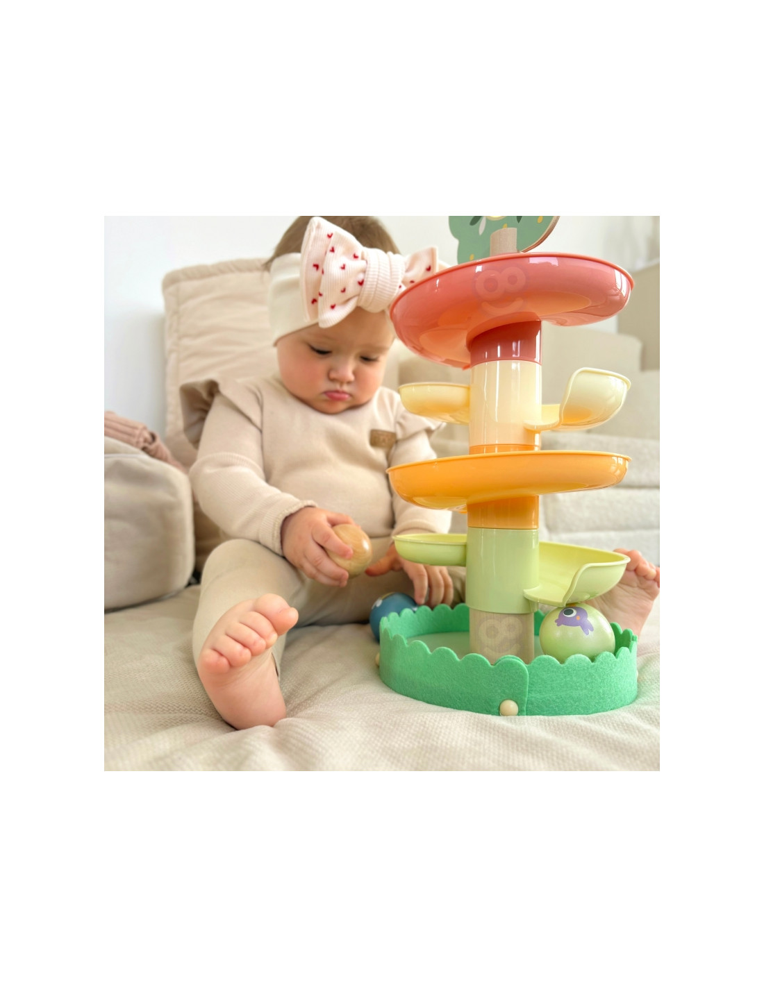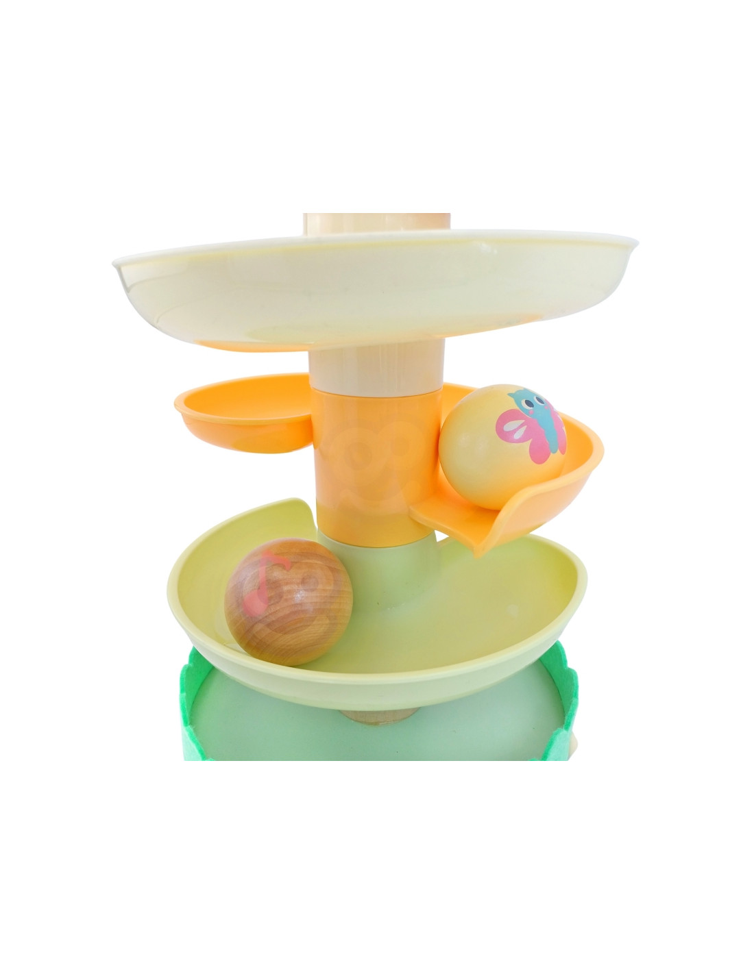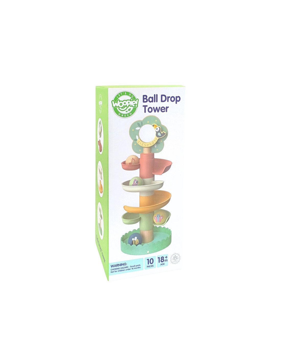 Medinis kamuoliukų takelis iš WOOPIE GREEN yra puikus sensorinis ir lavinamasis žaislas mažyliams nuo 18 mėnesių amžiaus. Spiralinis bokštas, pagamintas iš 6 spalvingų, lengvai surenkamų elementų, leidžia vaikams susikurti savo kamuoliukų takelį. Rinkinį sudaro 4 lengvi kamuoliukai su gyvūnų ir natų raštais, kuriuos vaikai gali stebėti riedant žemyn – tai ne tik smagu, bet ir puiki mankšta jų akims bei rankoms. Miško tema skatina vaizduotę ir savarankišką žaidimą , o natūrali mediena ir saugios medžiagos užtikrina kokybę ir ilgaamžiškumą.