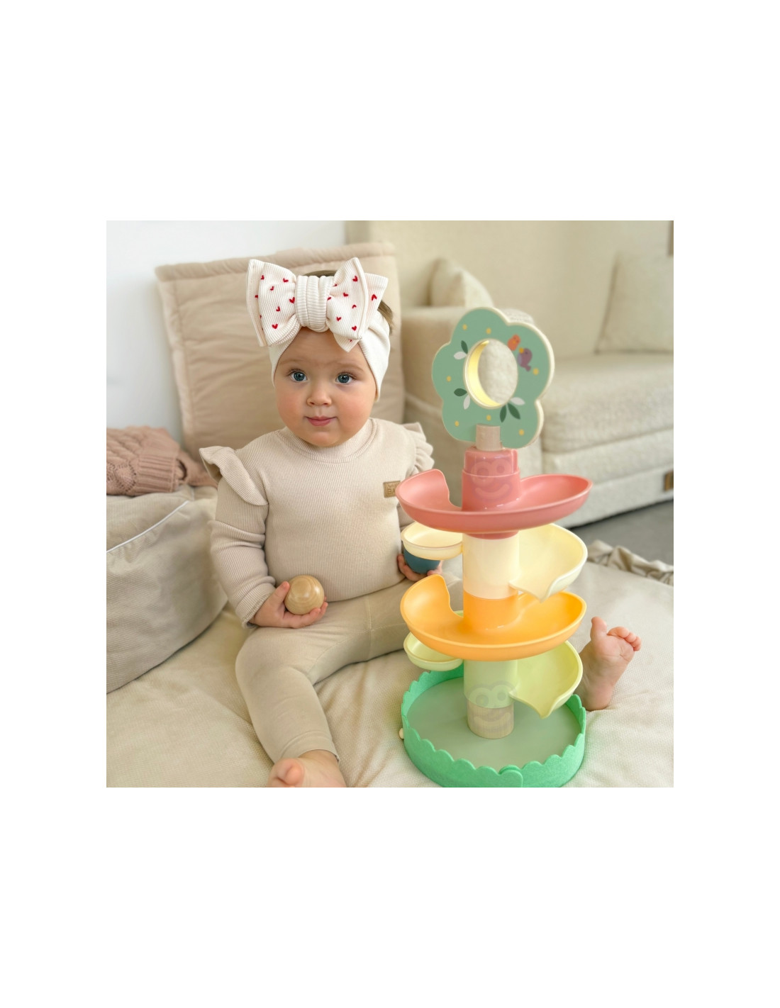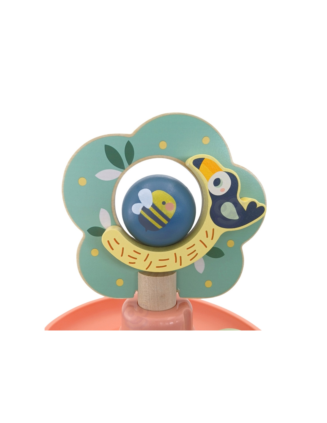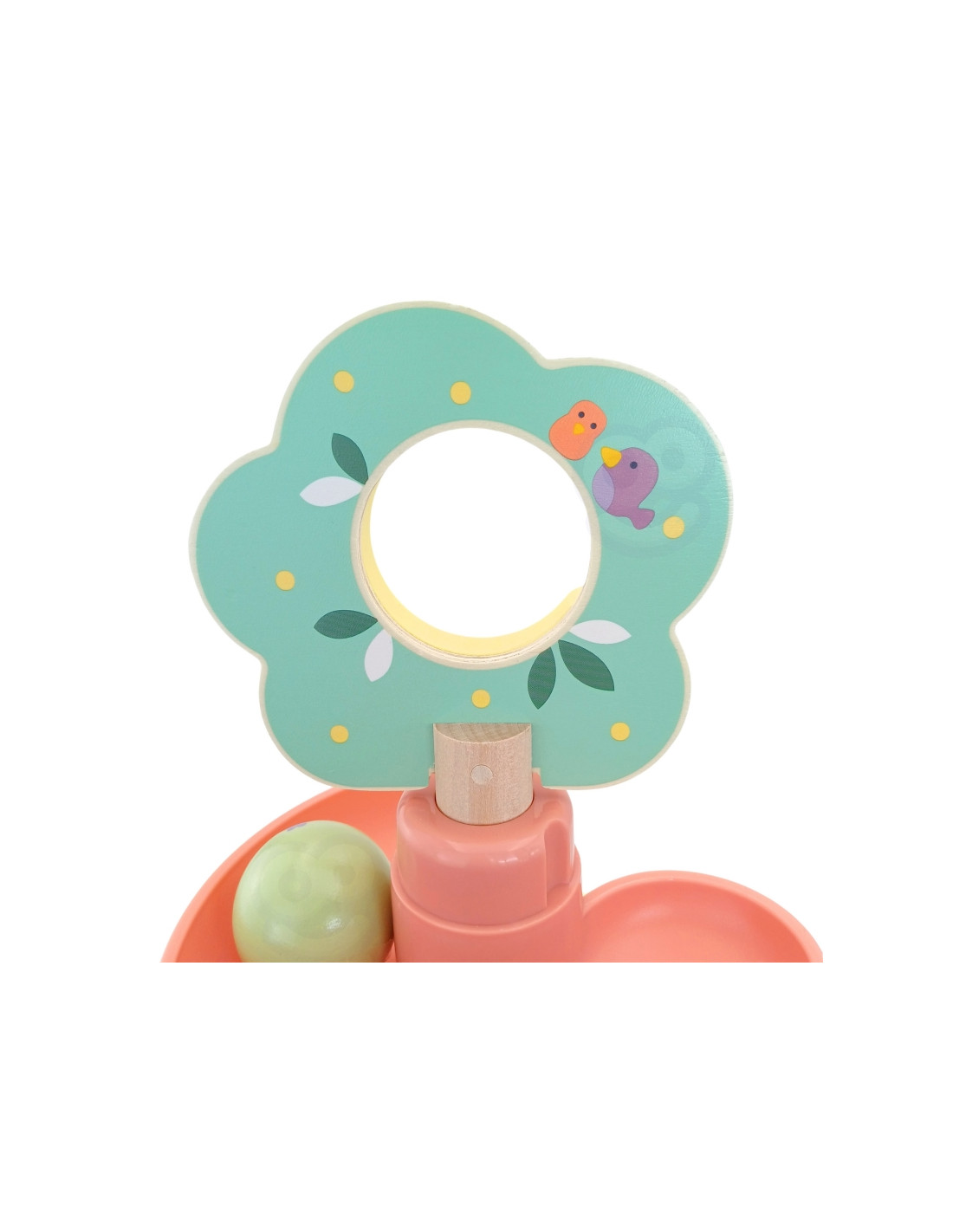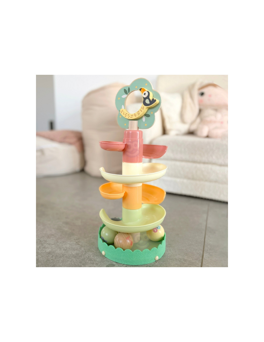 Medinis kamuoliukų takelis iš WOOPIE GREEN yra puikus sensorinis ir lavinamasis žaislas mažyliams nuo 18 mėnesių amžiaus. Spiralinis bokštas, pagamintas iš 6 spalvingų, lengvai surenkamų elementų, leidžia vaikams susikurti savo kamuoliukų takelį. Rinkinį sudaro 4 lengvi kamuoliukai su gyvūnų ir natų raštais, kuriuos vaikai gali stebėti riedant žemyn – tai ne tik smagu, bet ir puiki mankšta jų akims bei rankoms. Miško tema skatina vaizduotę ir savarankišką žaidimą , o natūrali mediena ir saugios medžiagos užtikrina kokybę ir ilgaamžiškumą.