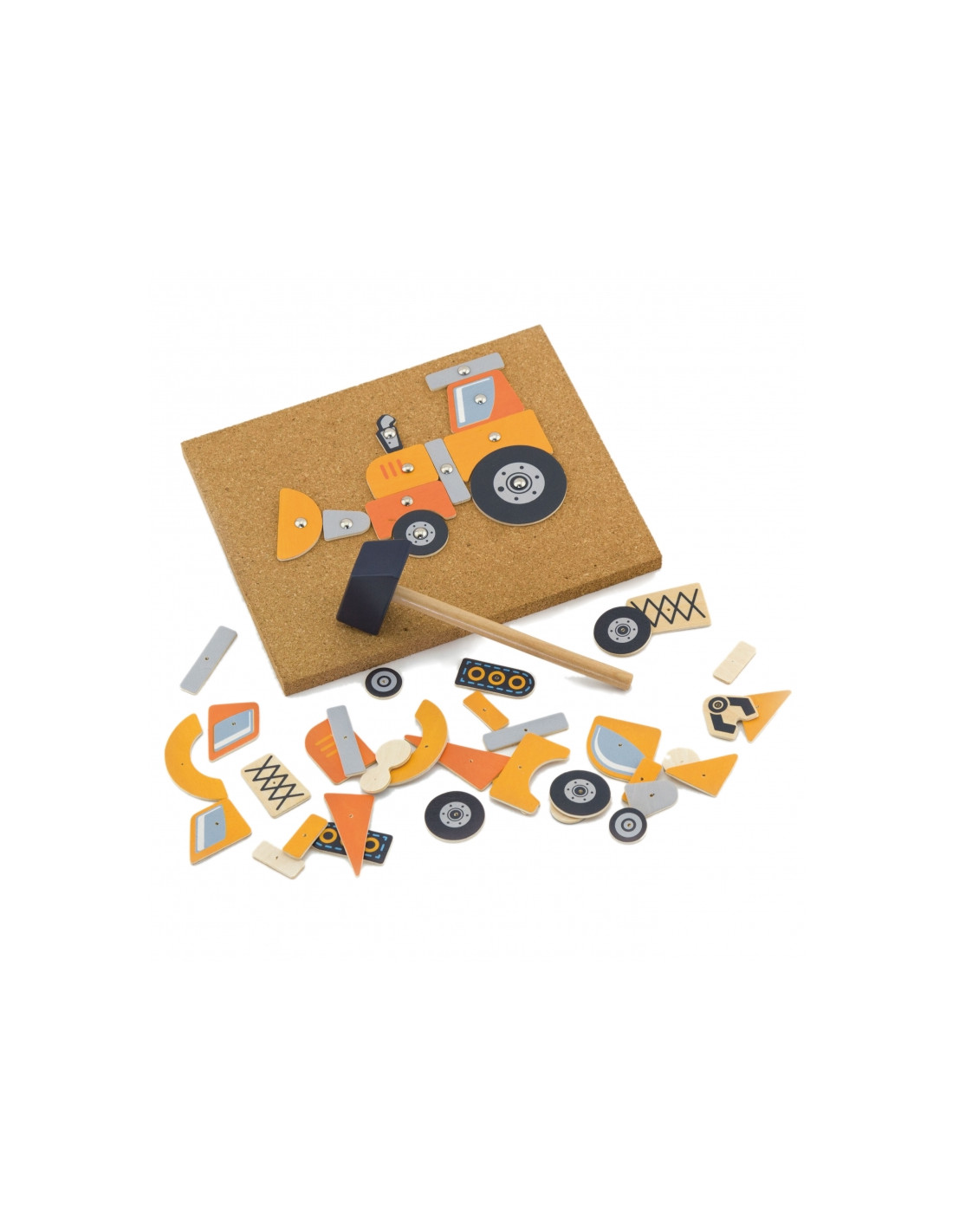 „Viga Toys“ kamštinė lenta „Statybinės transporto priemonės“ – puiki lenta jaunam statybininkui . Šis žaislas sukurtas pagal Montessori metodiką. Rinkinį sudaro 45 detalės , kamštinė lenta ir plaktukas . Kiekviena medinė detalė turi skylutę , o vaikai gali naudoti smeigtukus , kad įkaltų į lentą bet kokią formą. Vaikai gali laisvai išdėlioti detales, netgi pagal savo vaizduotę ir kūrybiškumą . Kamštinės lentos su vinimis – tai žaislai, kurie lavina rankinius įgūdžius , loginį mąstymą ir susikaupimą . Detalės turi užapvalintus kraštus , todėl yra 100 % saugios vaikams.