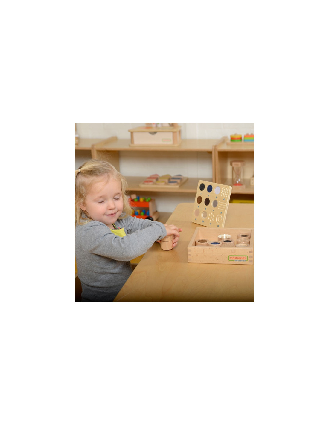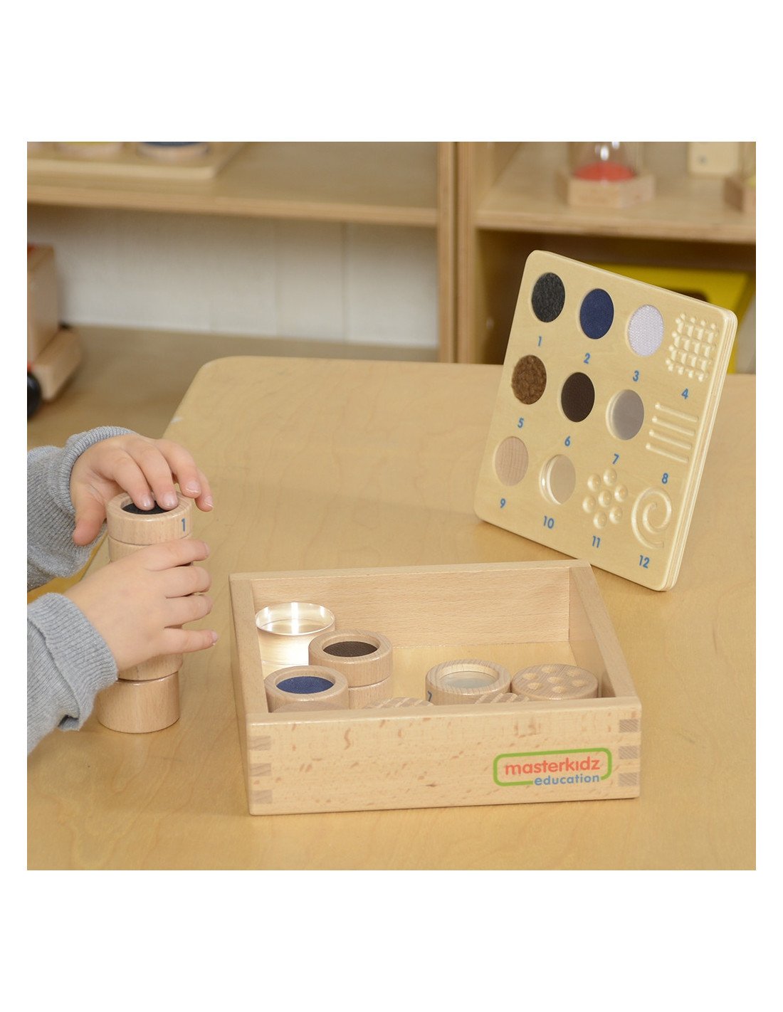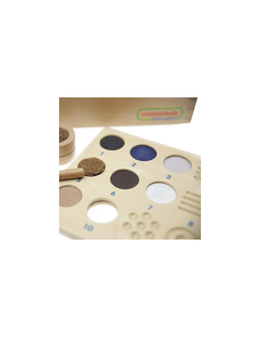 The Guess by Touch expansion from Masterkidz is a fantastic addition to the game, taking tactile development to the next level. The set includes 12 wooden blocks: 7 representing different types of materials and 5 with different textures. Your child's task is to identify the block solely by touch, making the game not only engaging but also educational. This set works best when paired with the Guess by Touch game box (ME04055).