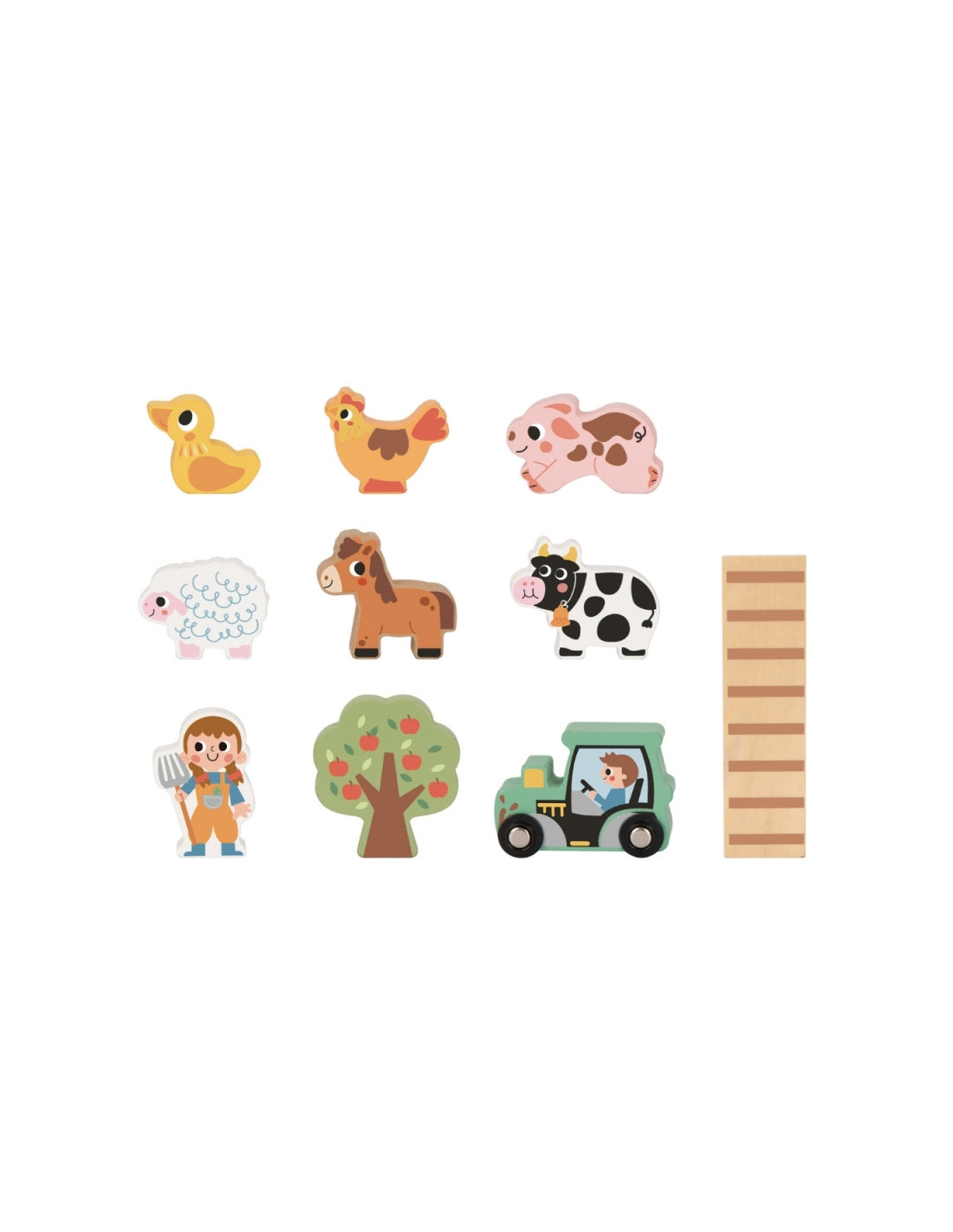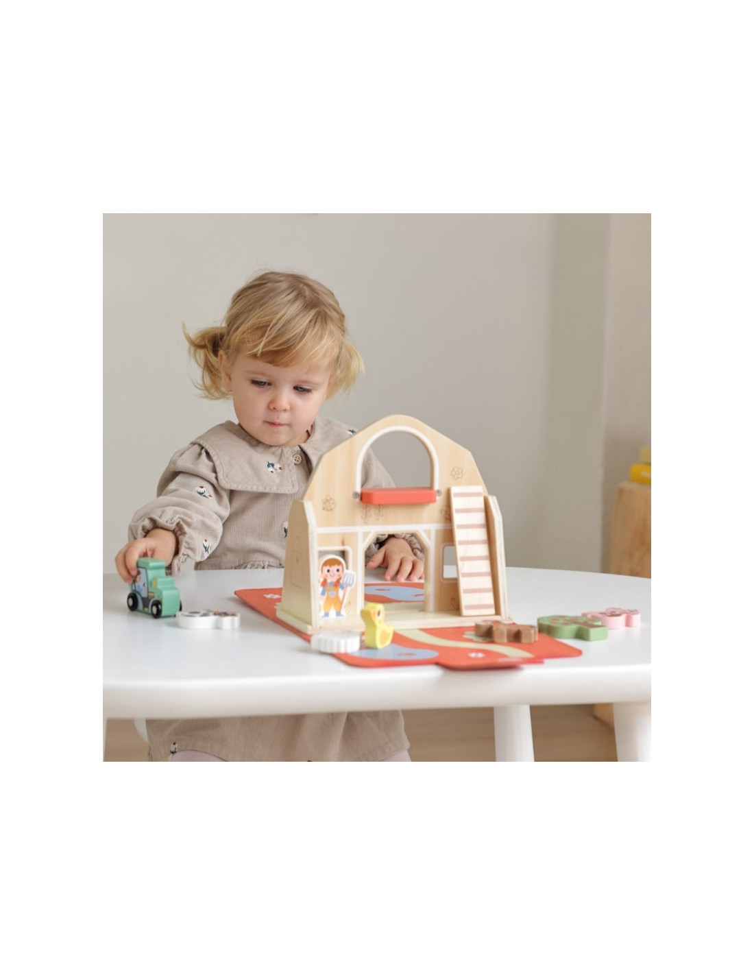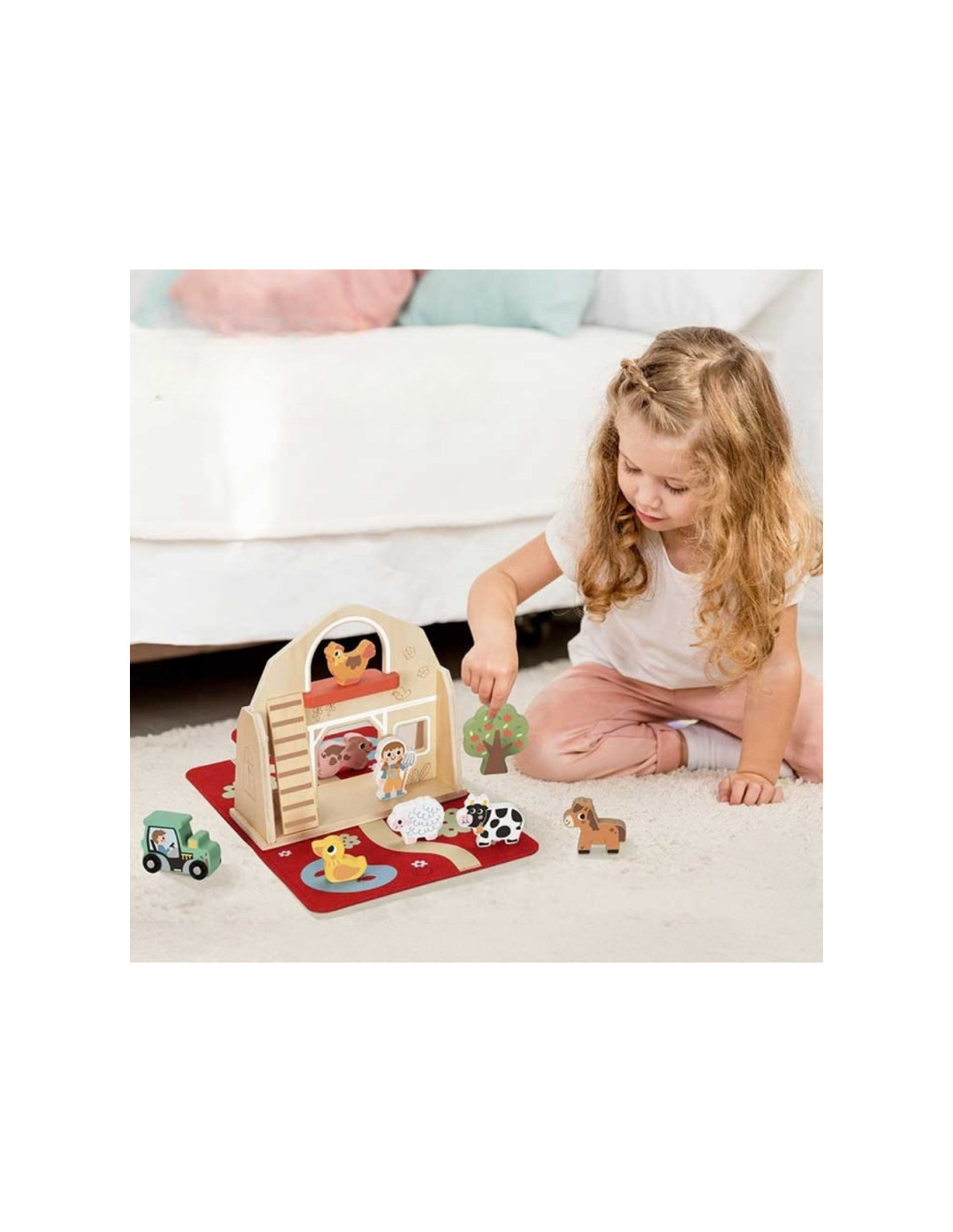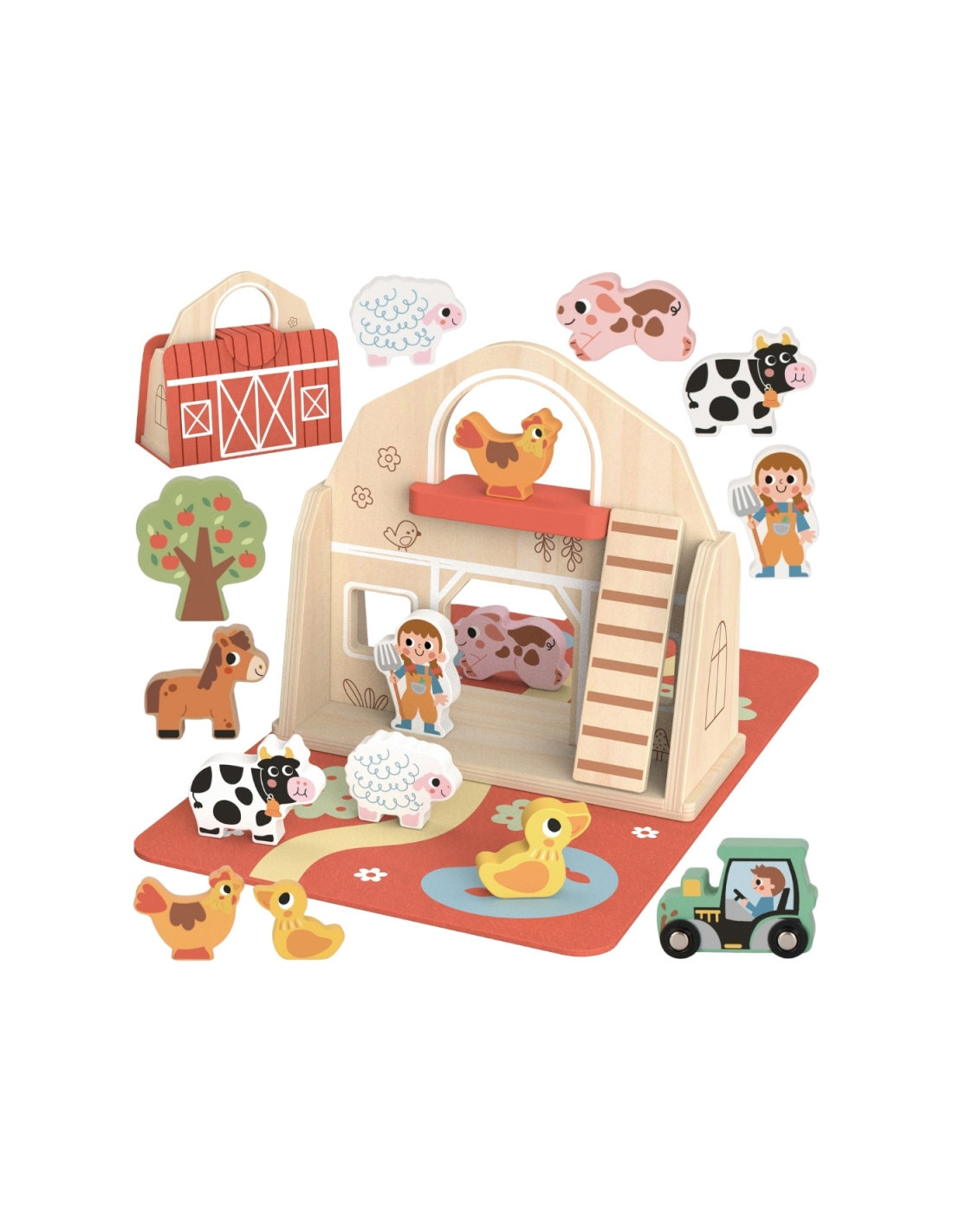 Sveiki atvykę į užburiantį kaimo pasaulį, kuriame kiekvienas gyvūnas turi savo istoriją! Šis žavus medinis rinkinys puikiai tinkamažiesiems gyvūnų mylėtojams ir nuotykių ūkyjemėgėjams. Lengvai sulankstomame nešiojamame ūkyje slepiasi daugybė figūrėlių ir priedų, todėl jūsų mažylis gali suvaidinti daugybę scenų ir kurti savo įdomias istorijas. Tai puikus žaislas, skatinantis kūrybiškumą ir suteikiantis valandų valandas puikios, lavinančios pramogos, kad ir kur būtumėte!