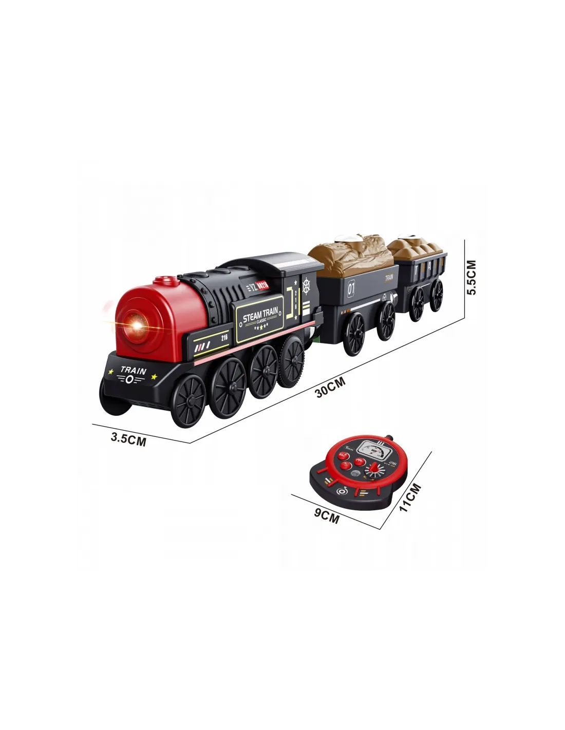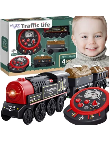 Nukelkite savo vaiką į žavų geležinkelių pasaulį su Woopie Retro“ nuotoliniu būdu valdomu traukiniu ! Šis 4 dalių rinkinys suteiks daugybę kūrybiško žaidimo galimybių, leisdamas jūsų mažyliui tapti tikro traukinio mašinistu. Realistiškas garvežio dizainas , šviesos ir garso efektai bei specialus nuotolinio valdymo pultas valdymo skydelio formos paverčia žaidimą nepaprastai įtraukiantį. Traukinį sudaro lokomotyvas ir du krovininiai vagonai. Šis žaislas tinka vaikams nuo 3 metų amžiaus . Nuotolinio valdymo pultas lavina rankinius įgūdžius ir akių bei rankų koordinaciją, tuo pačiu suteikdamas valandų valandas įdomių pramogų !
