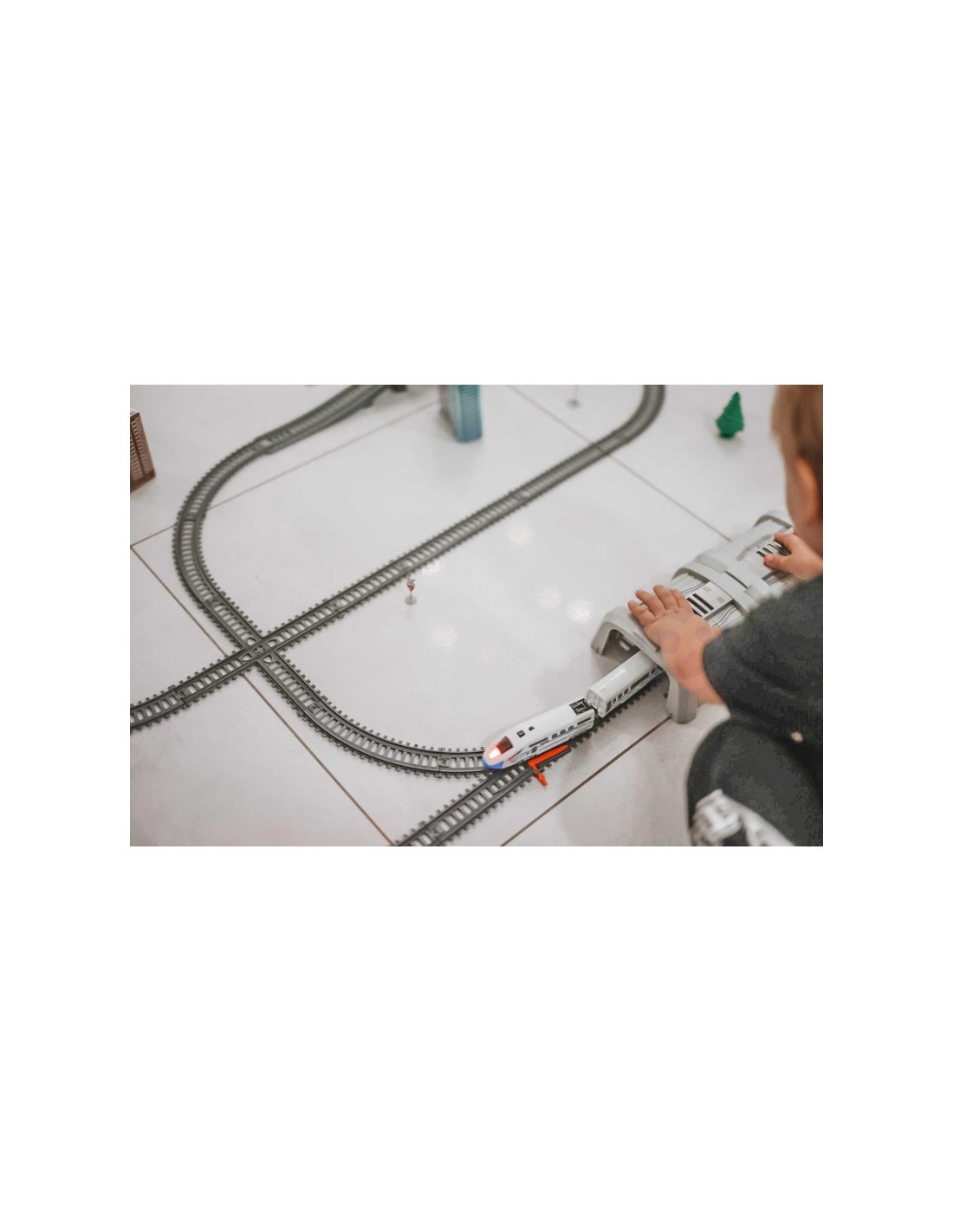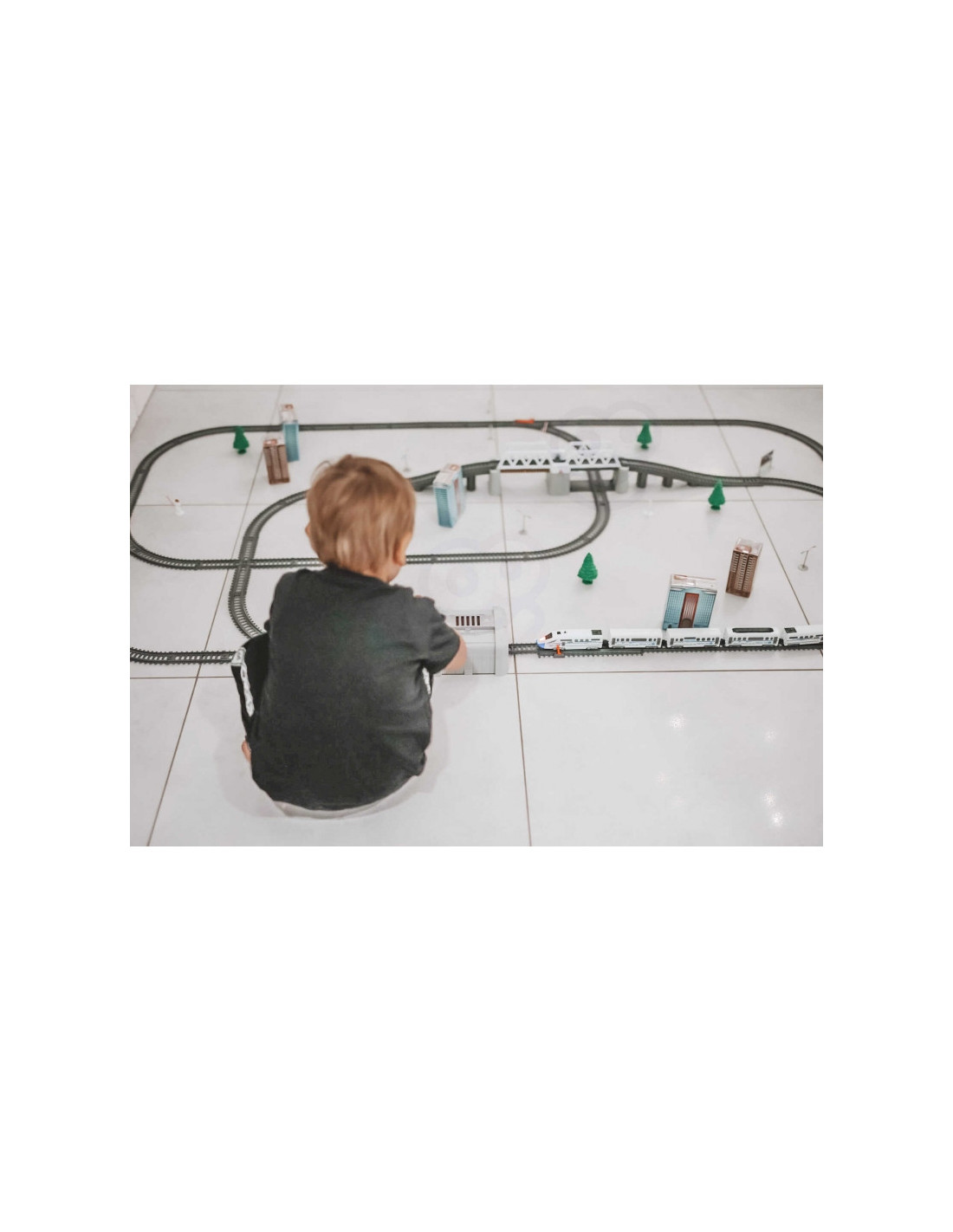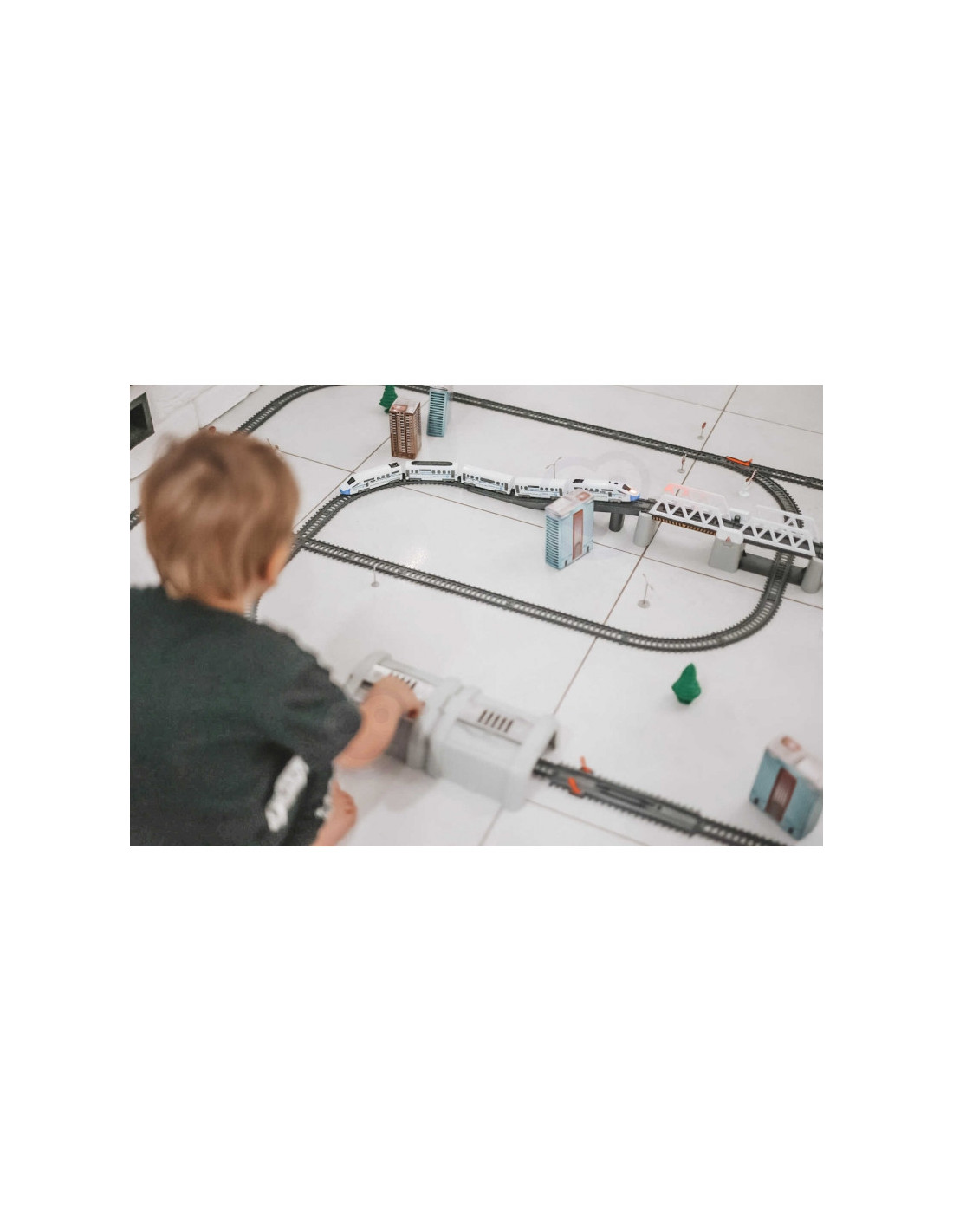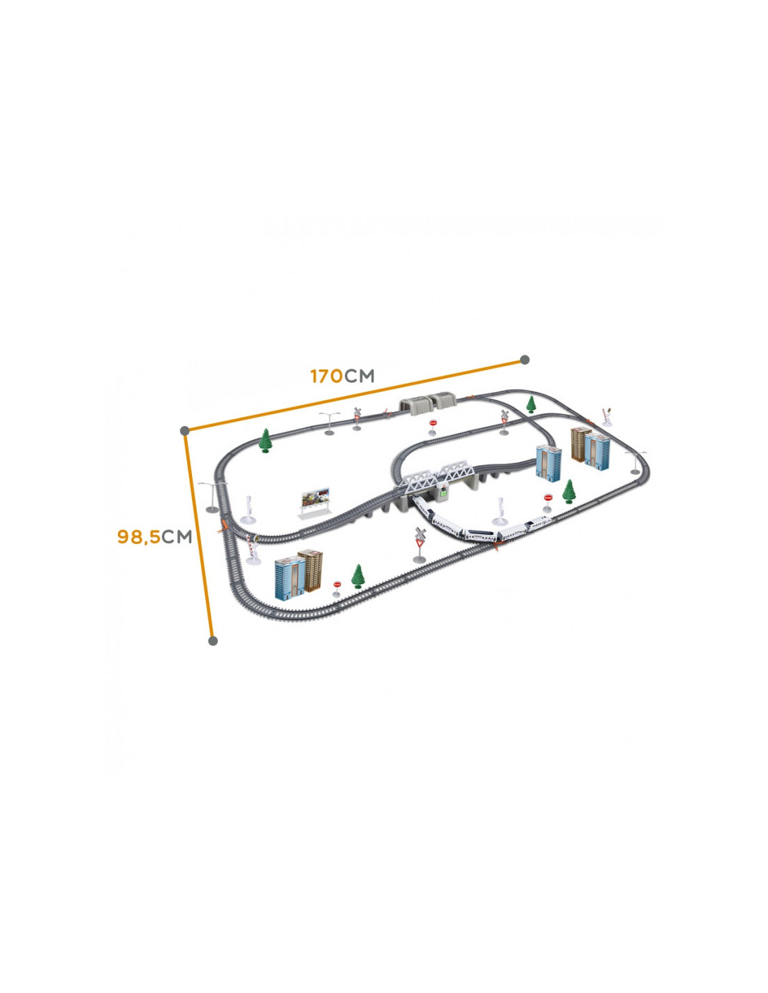 914 cm ilgio elektrinis keleivinis traukinys vaikams su traukos tiltu bus tikra pramoga kiekvienam mažajam mašinistui. Šiuolaikinis geležinkelis yra kruopščiai pagamintas saugus žaislas. Traukinį varo modernus lokomotyvas, kuris važiuodamas šviečia raudona šviesa. Žaislas taip pat turi greičio reguliavimo galimybę. Pakeliamasis tiltas pakeliamas paspaudus mygtuką. Baterijos yra lokomotyvo viduje. Šis nuostabus geležinkelio modelis su vagonėliais pagamintas itin kruopščiai, daug dėmesio skiriant detalėms, todėl tikrai patiks kiekvienam pradedančiajam geležinkelio modelių gerbėjui. Tinka vyresniems nei 3 metų vaikams.