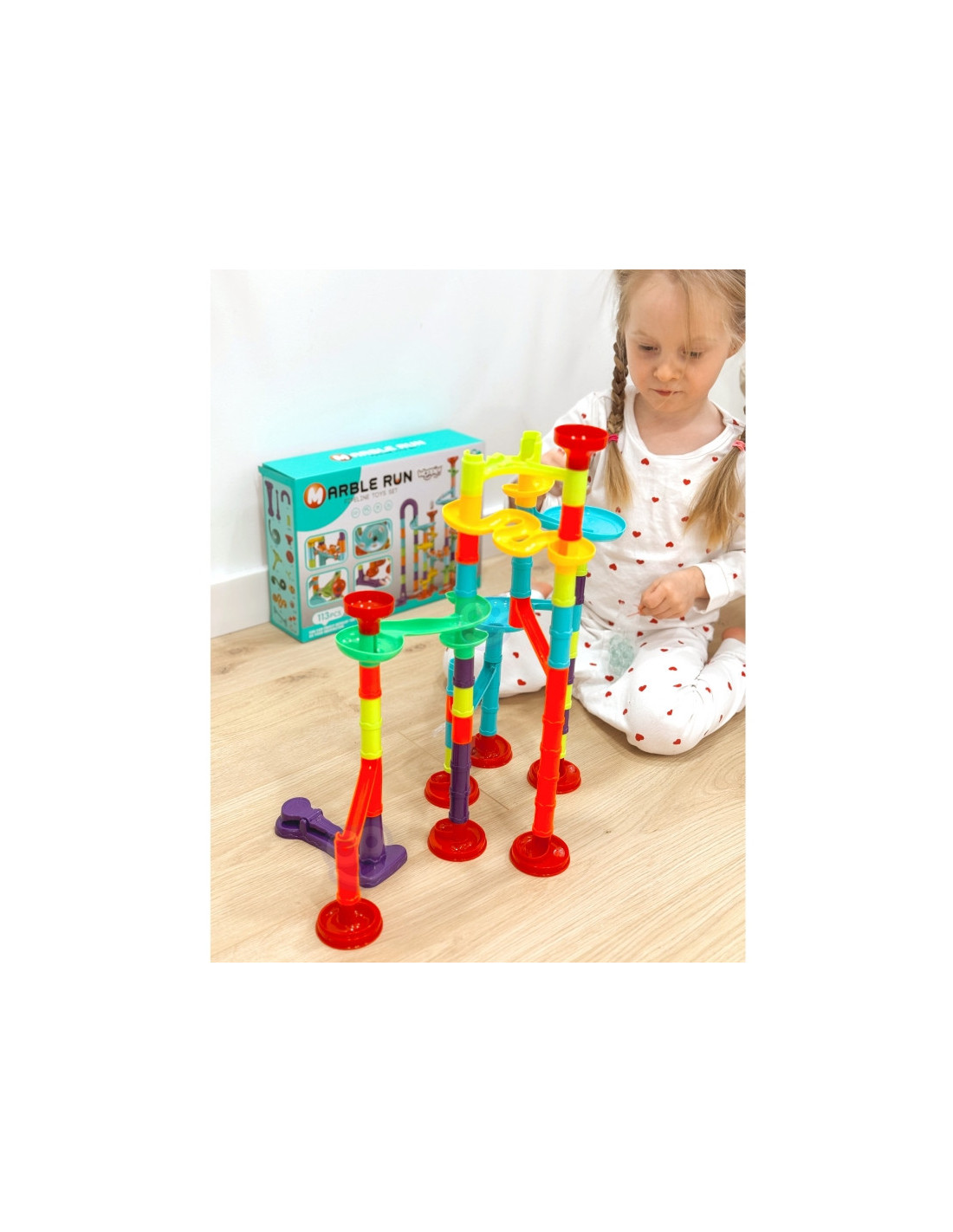 WOOPIE "Ballodrome" - tai spiralinis takas, kuriuo galima mėgautis be galo smagiai. Šį spalvingą rinkinį sudaro daugybė skirtingų spalvų detalių, kurias mažyliai gali lengvai sudėti ir sujungti, kad sukurtų išradingus takelius. Be to, kitoje pakuotės pusėje rasite instrukcijas, kuriose pateikiamas trasos pavyzdys naudojant visas detales. Paleiskite kamuoliukus ir stebėkite, kaip jie vienas po kito rieda ir supasi. Rinkinyje yra iki 113 detalių, įskaitant, pavyzdžiui, paleidimo įrenginį ir kamuoliukus trasai. Dydis tinka mažoms rankoms ir padeda lavinti akies ir rankos koordinaciją.