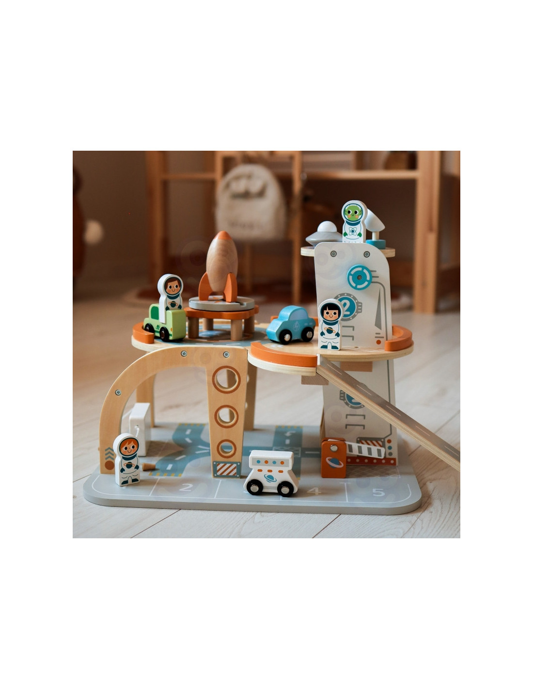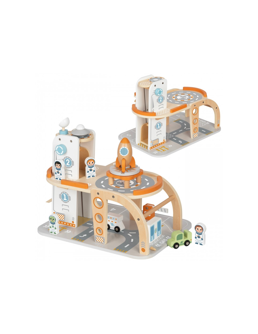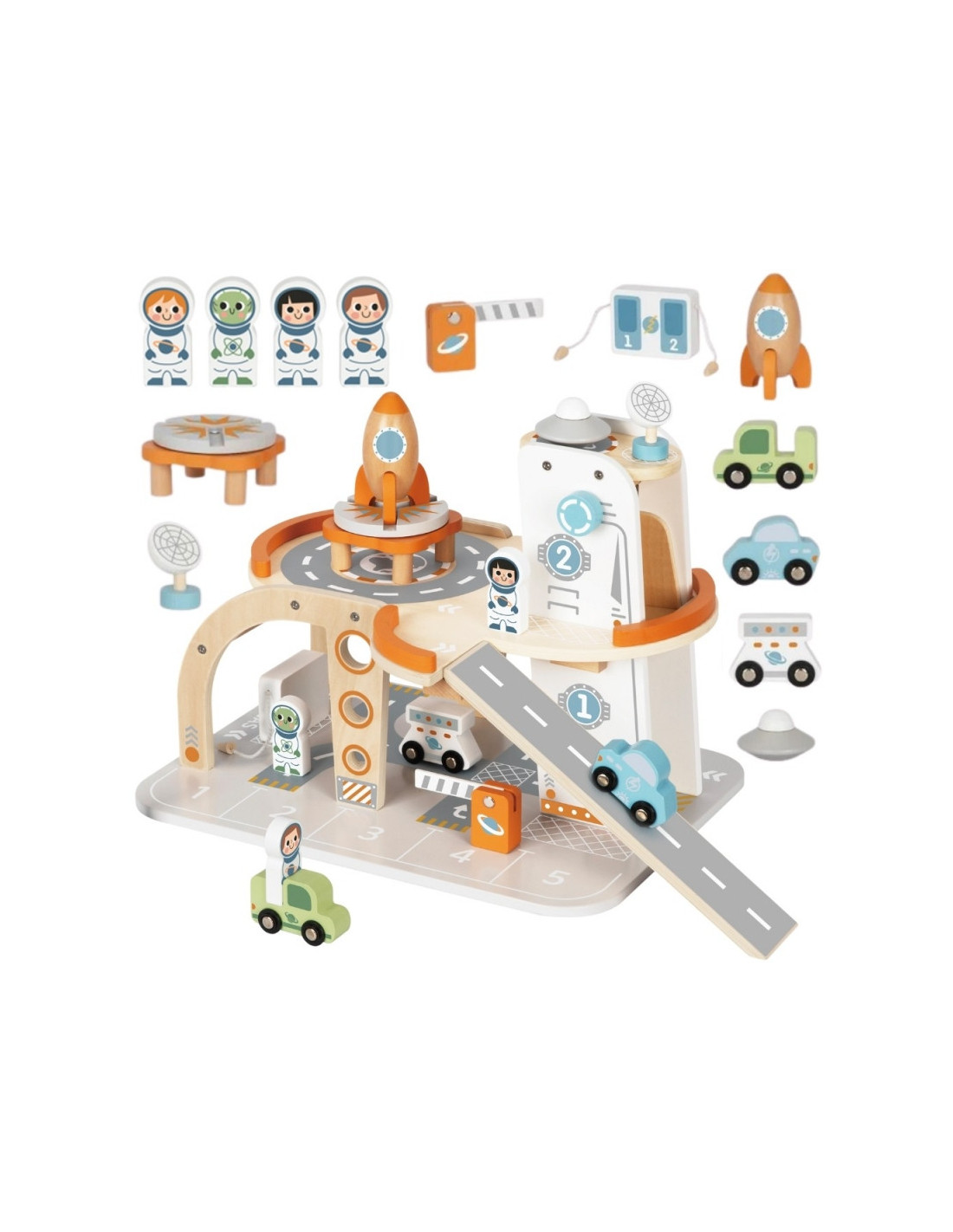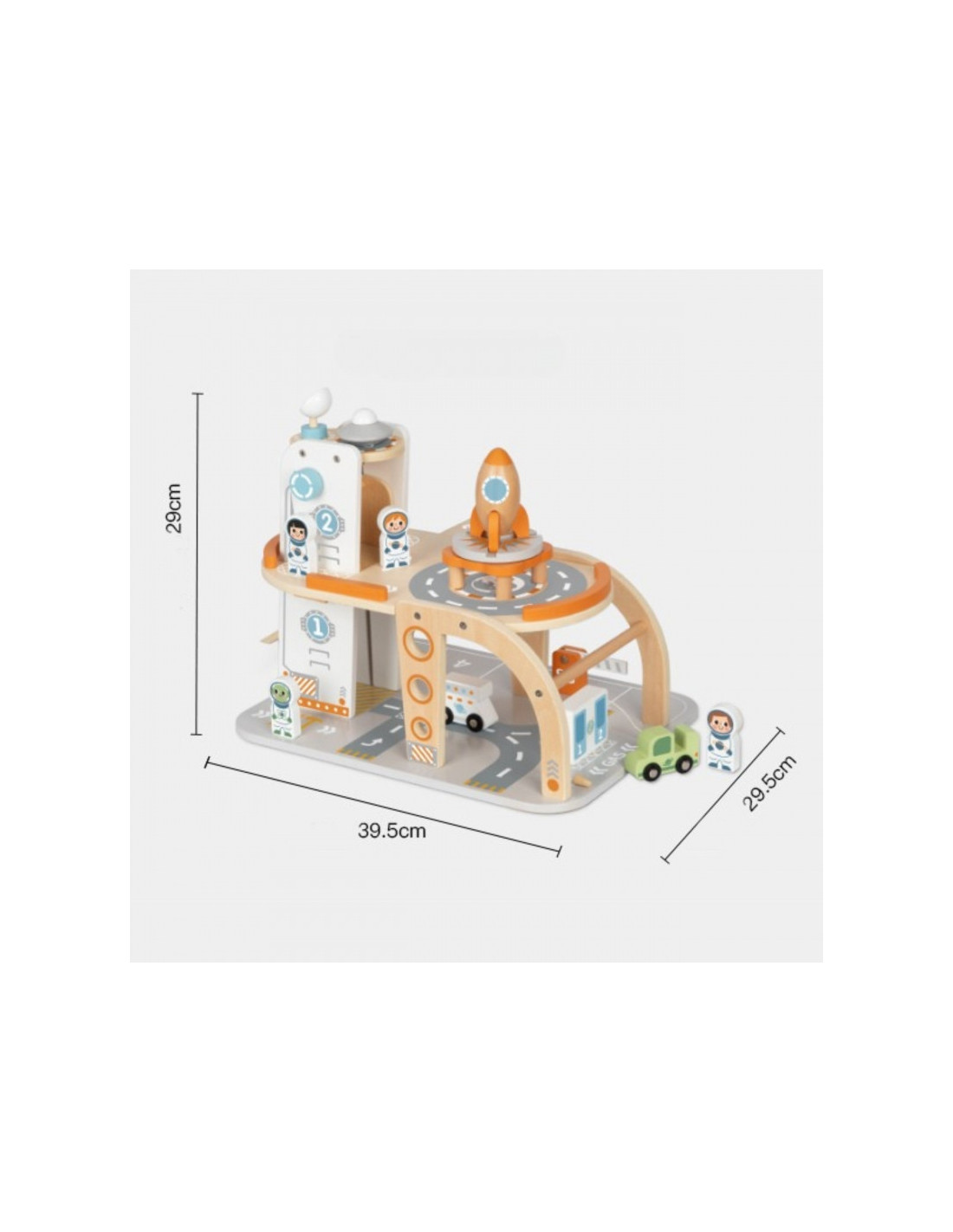 Šis unikalus medinis rinkinys - tikra šventė mažiesiems kosmoso tyrinėtojams! Kosminė stotis su daugybe lygių, rampų, nusileidimo aikštele ir liftu - tai įdomi pramoga, su kuria praleisite valandų valandas. Rinkinyje rasite ne tik stotį, bet ir transporto priemones, raketą, skraidyklę ir astronautus - visa tai pagaminta atsižvelgiant į detales ir vaikų saugumą