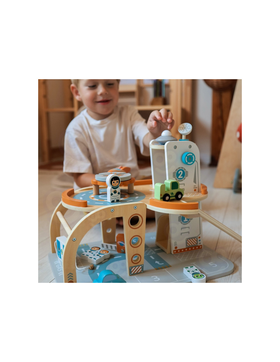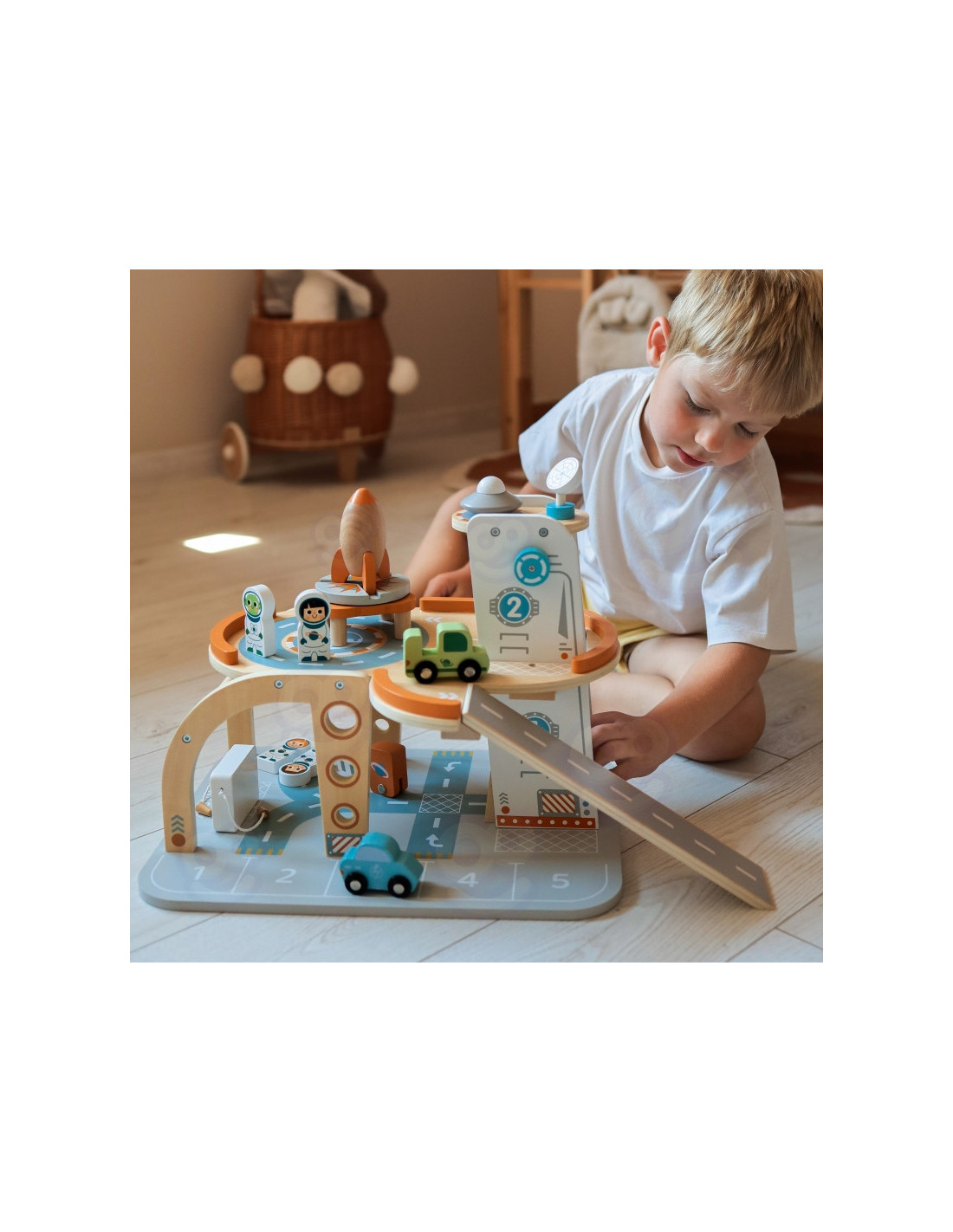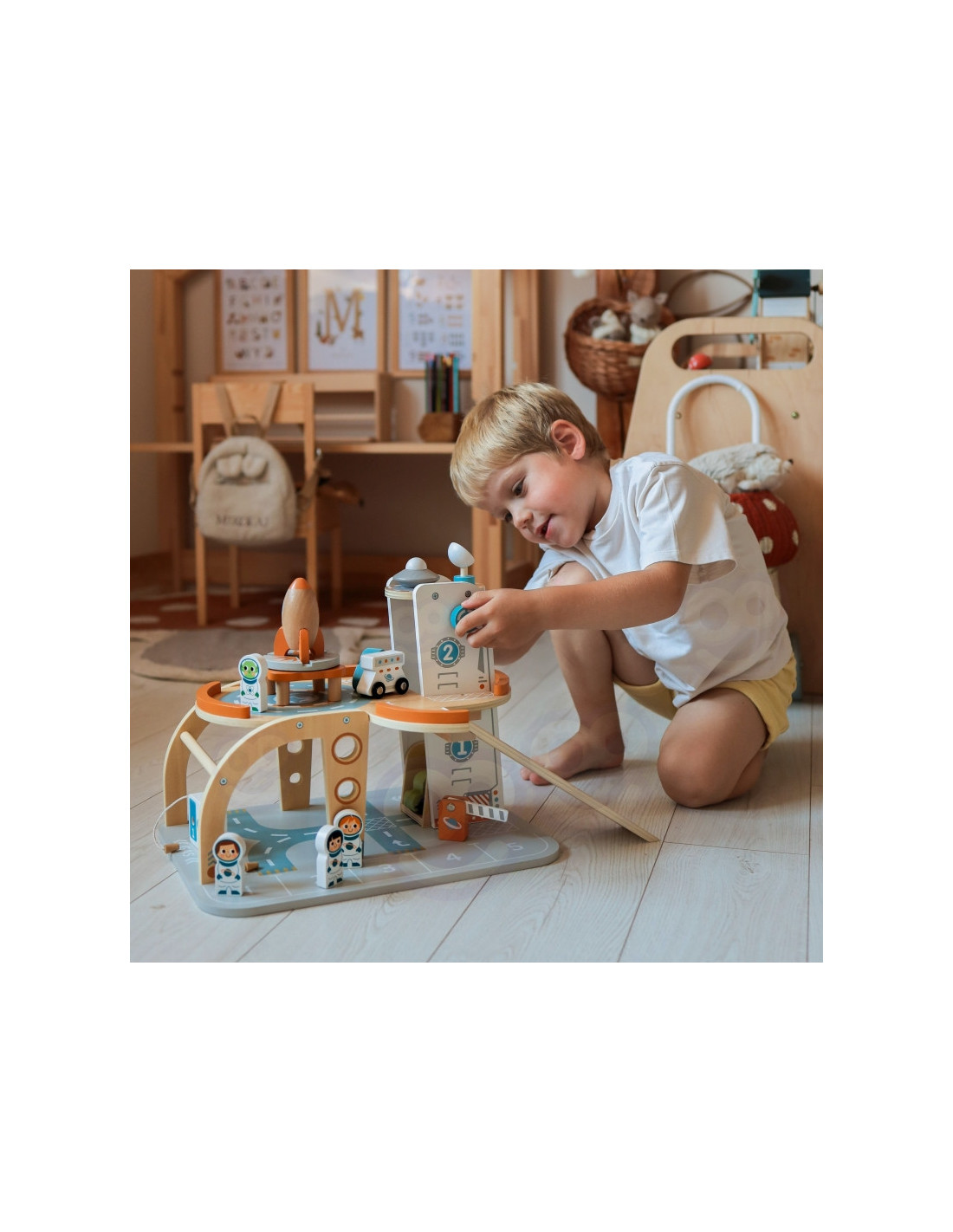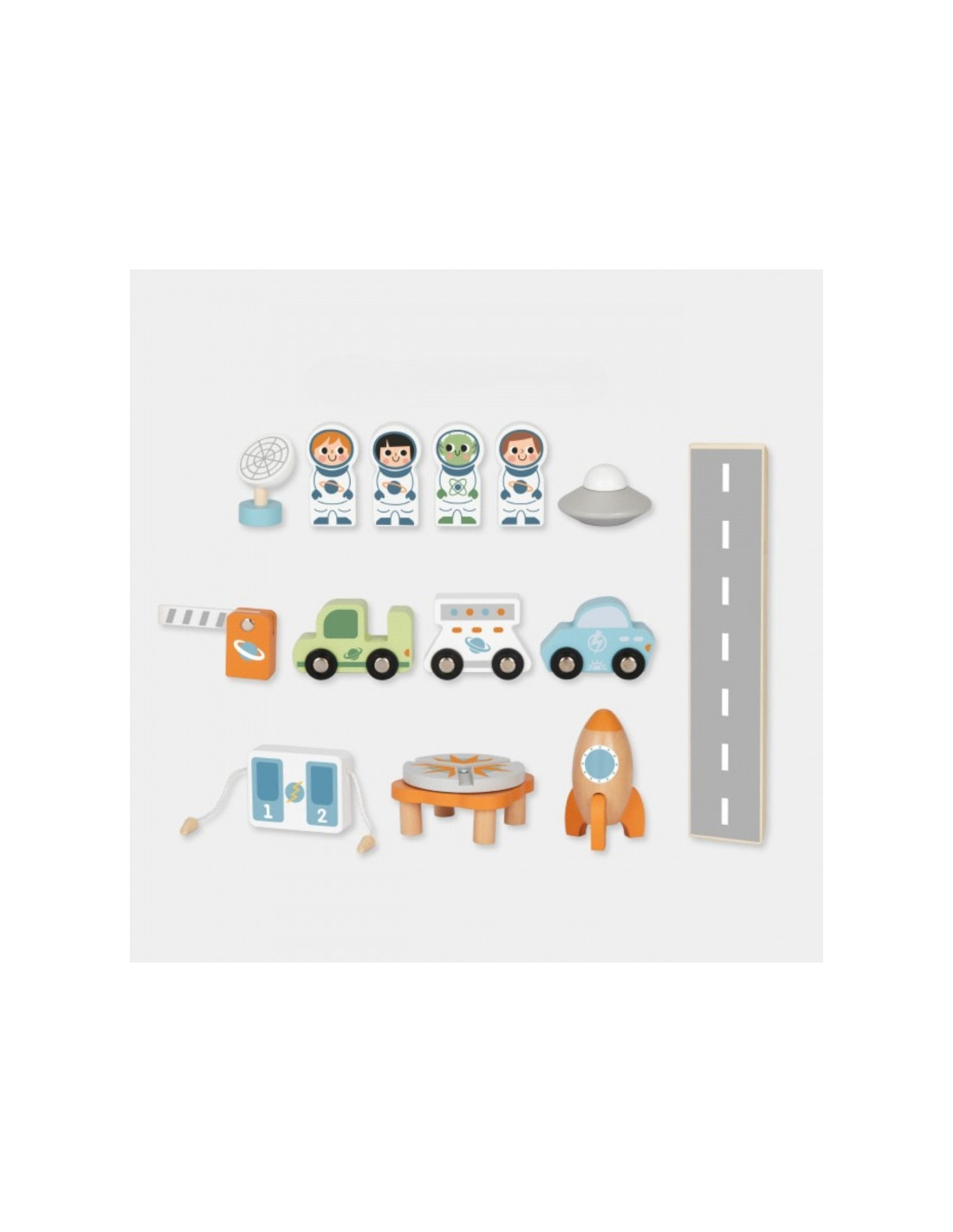 Šis unikalus medinis rinkinys - tikra šventė mažiesiems kosmoso tyrinėtojams! Kosminė stotis su daugybe lygių, rampų, nusileidimo aikštele ir liftu - tai įdomi pramoga, su kuria praleisite valandų valandas. Rinkinyje rasite ne tik stotį, bet ir transporto priemones, raketą, skraidyklę ir astronautus - visa tai pagaminta atsižvelgiant į detales ir vaikų saugumą