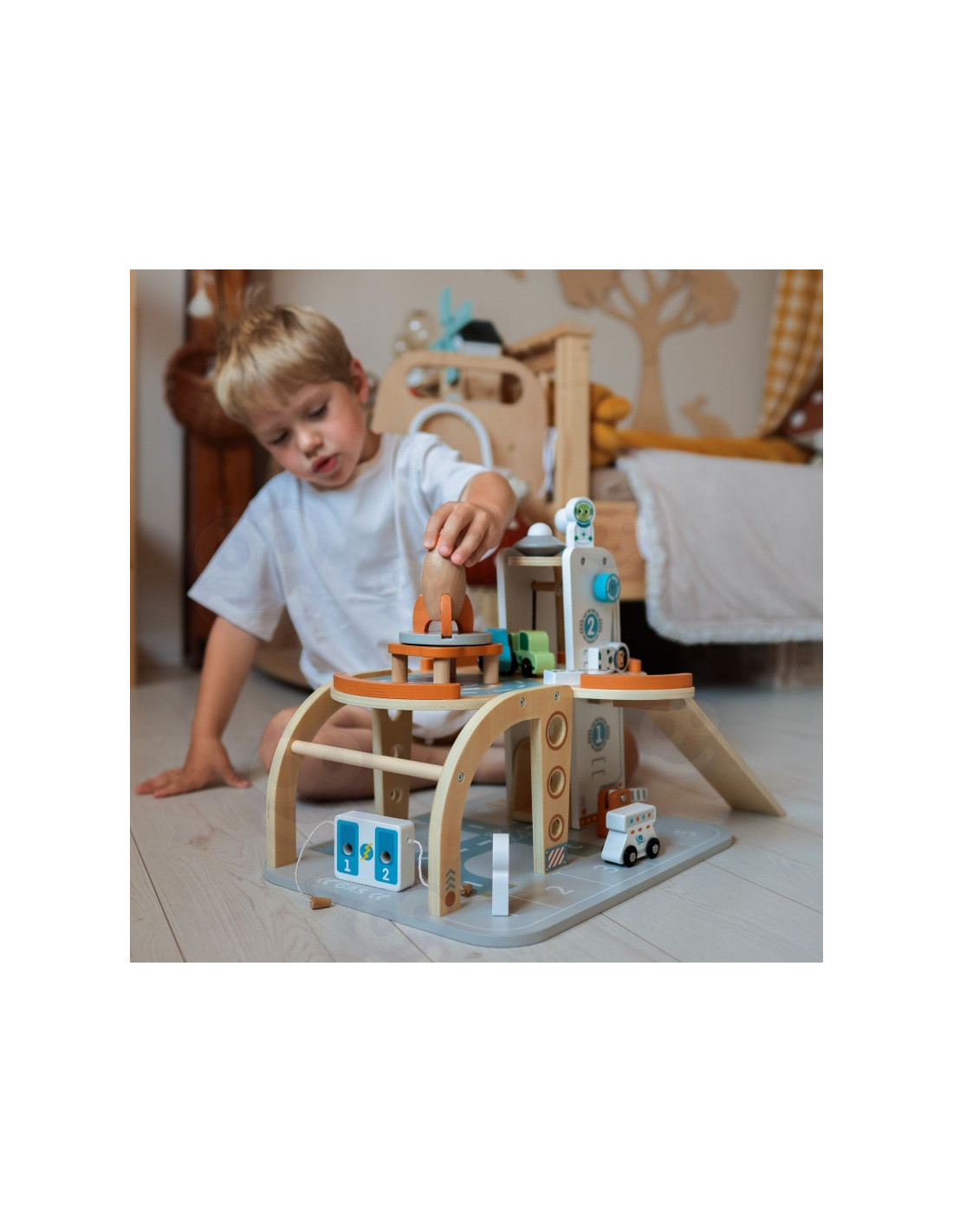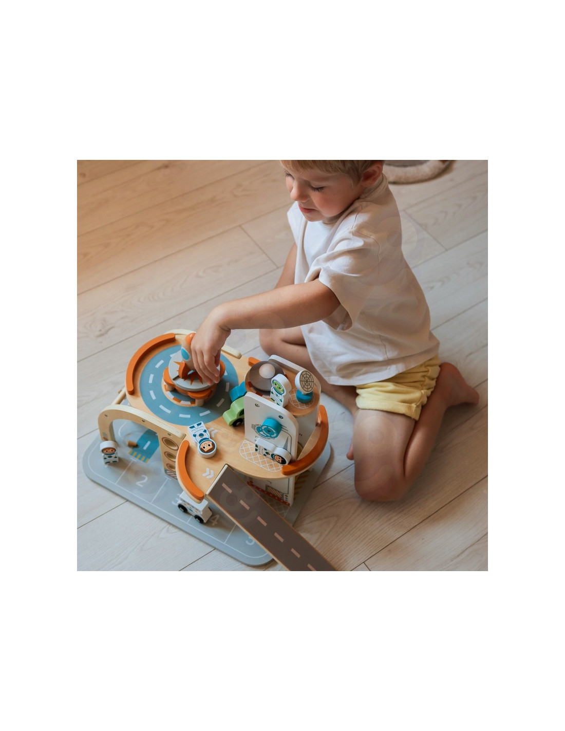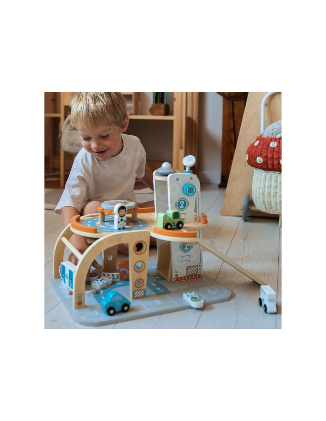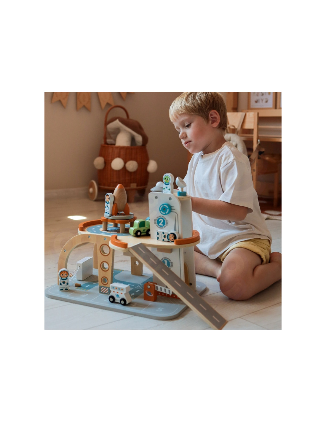 Šis unikalus medinis rinkinys - tikra šventė mažiesiems kosmoso tyrinėtojams! Kosminė stotis su daugybe lygių, rampų, nusileidimo aikštele ir liftu - tai įdomi pramoga, su kuria praleisite valandų valandas. Rinkinyje rasite ne tik stotį, bet ir transporto priemones, raketą, skraidyklę ir astronautus - visa tai pagaminta atsižvelgiant į detales ir vaikų saugumą