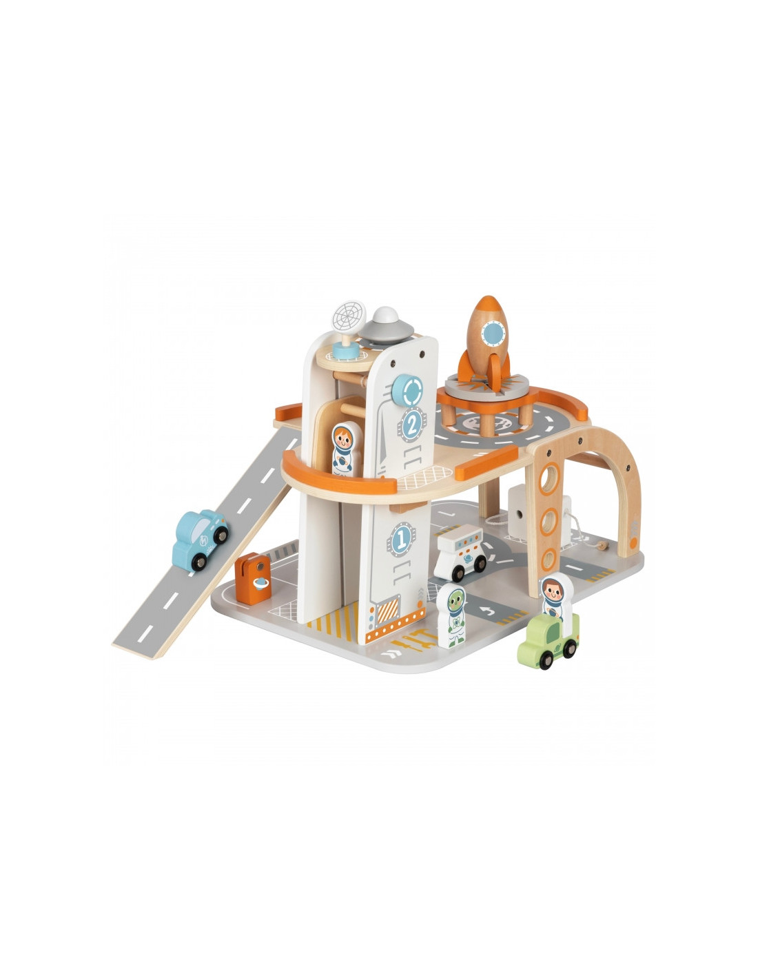TOOKY TOY medinės kosminės stoties automobilių stovėjimo aikštelė
