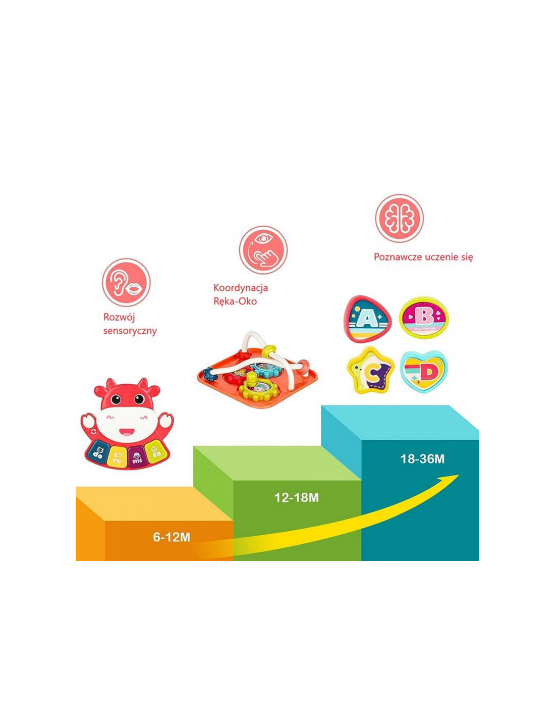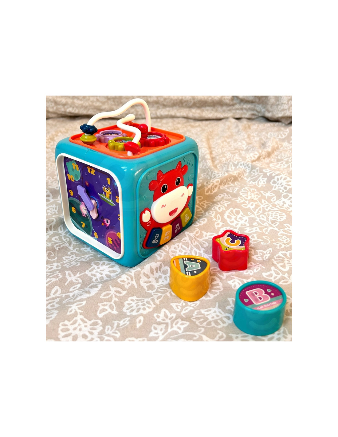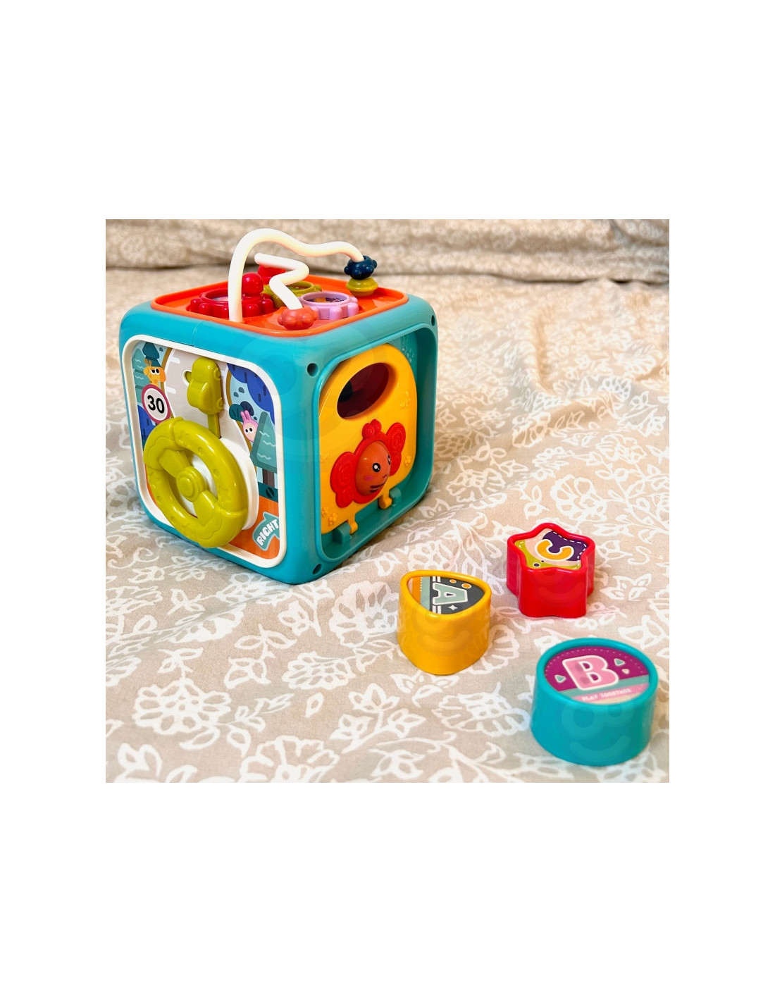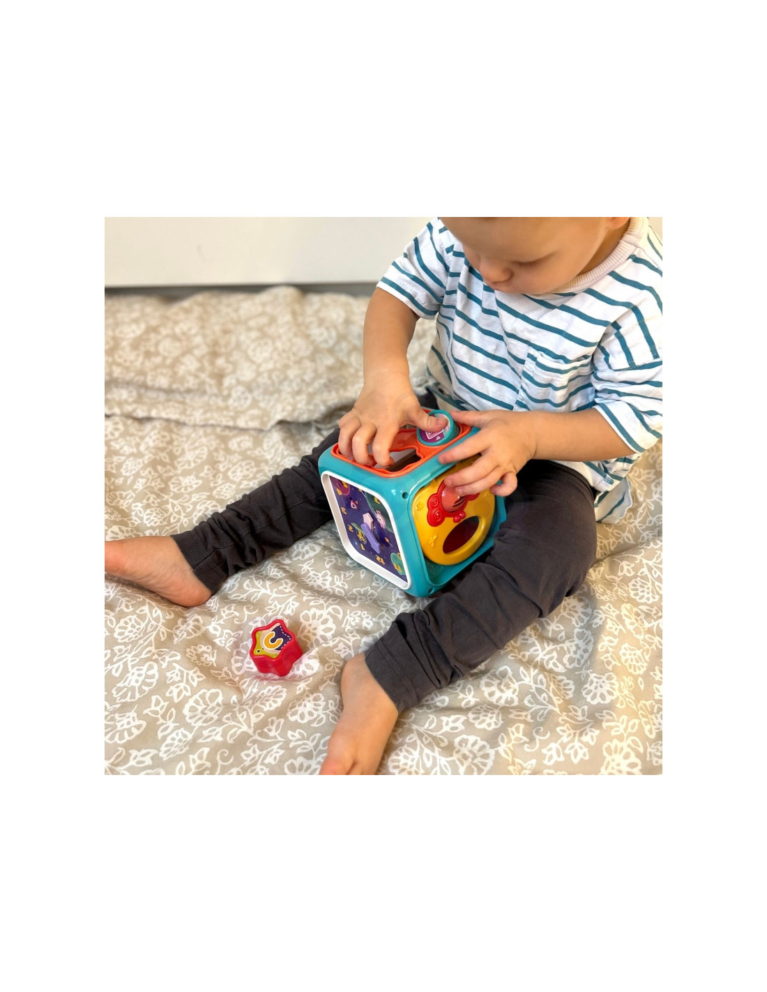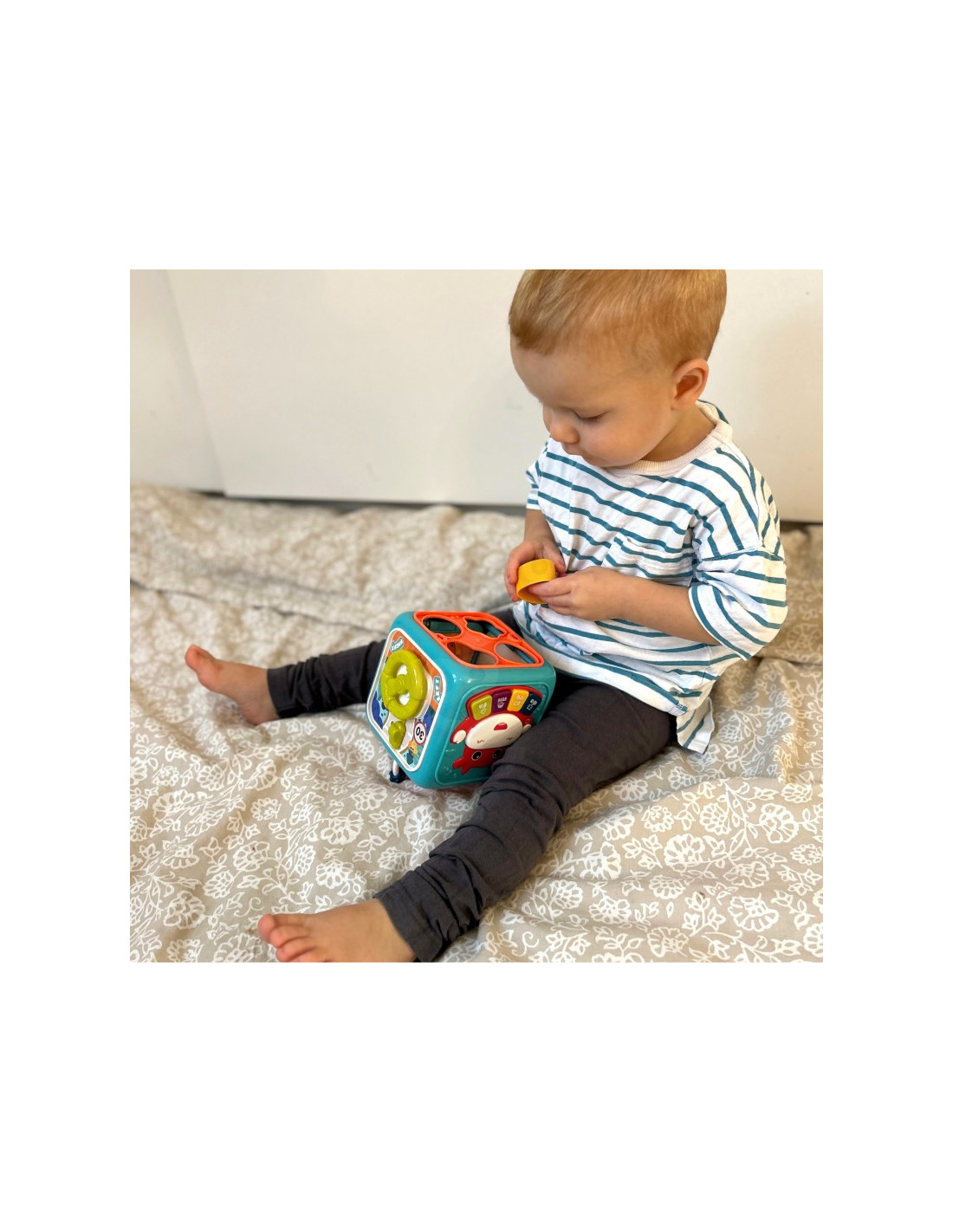 - - Ryškios ir sodrios kubo spalvos, skirtingos formos, tekstūros ir garsai stimuliuoja sensoriką ir skatina smulkiosios motorikos bei akių ir rankų koordinacijos vystymąsi.