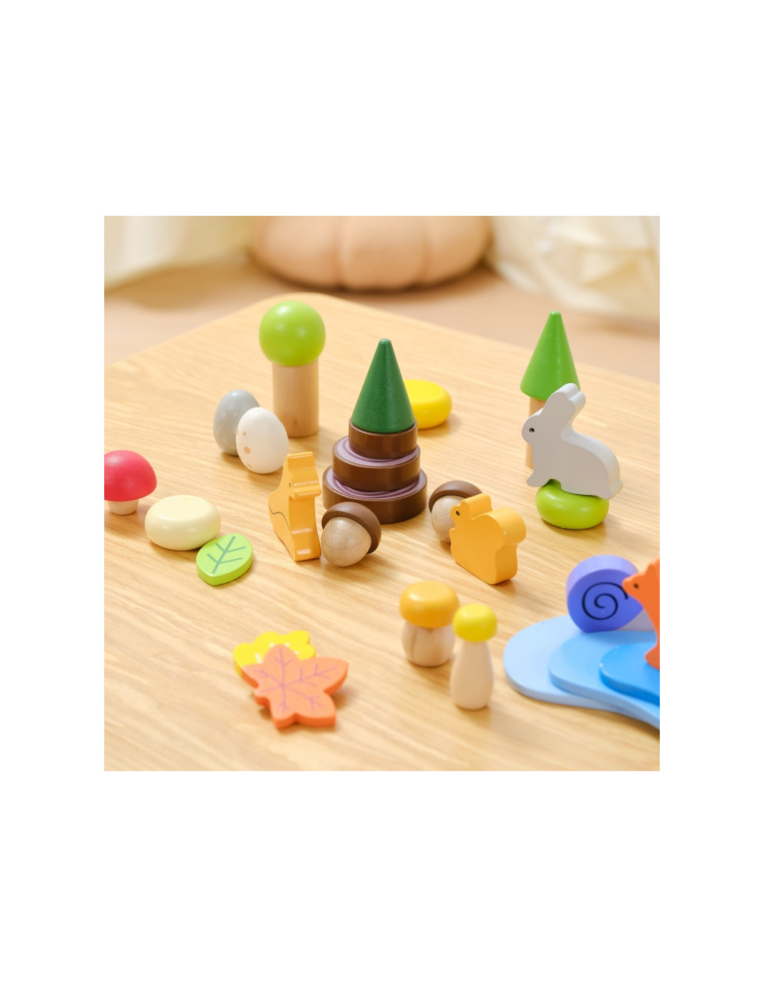 - - Iki 58 spalvingų medinių detalių laisvam žaidimui