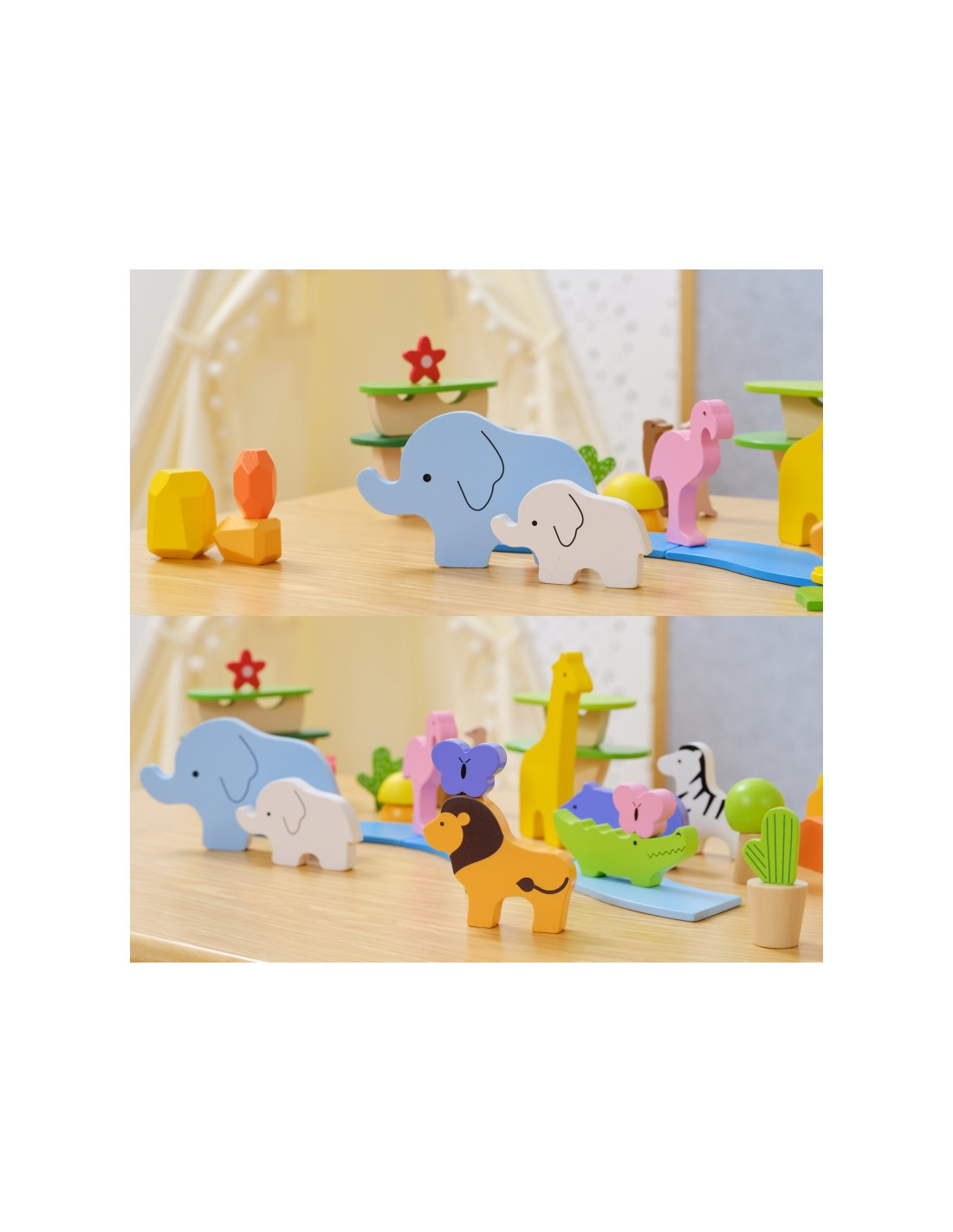Nukelkite savo vaiką į Afrikos nuotykių pasaulį su VIGA spalvingų tropinių istorijų kaladėlių rinkiniu! Šis neįtikėtinai turtingas rinkinys, sudarytas iš 55 medinių, palaidų detalių , yra neriboto žaidimo ir mokymosi Montessori dvasia esmė. Savanos gyvūnų figūrėlės – dramblys, žirafa, liūtas ir zebras – kartu su tropinės augmenijos ir upės elementais įkvepia mažuosius kurti savo scenarijus ir lavinti kūrybiškumą . Kaladėlės lavina smulkiąją motoriką ir susikaupimą , o dėl patogios medinės dėžutės su skyreliais surinkimas yra toks pat lengvas, kaip ir žaidimas.