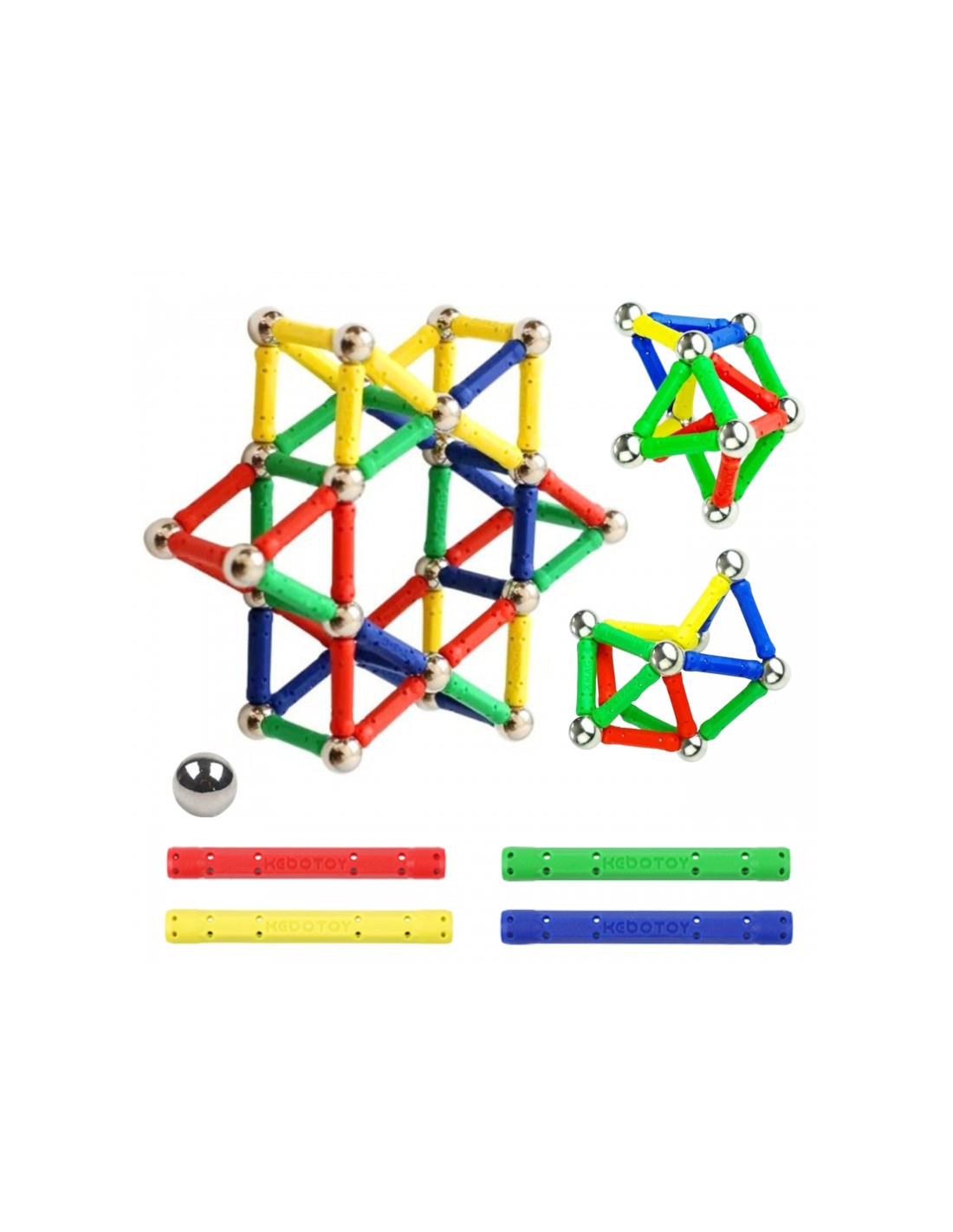 - - 58 spalvingi elementai: strypeliai, magnetiniai rutuliukai, pagrindai