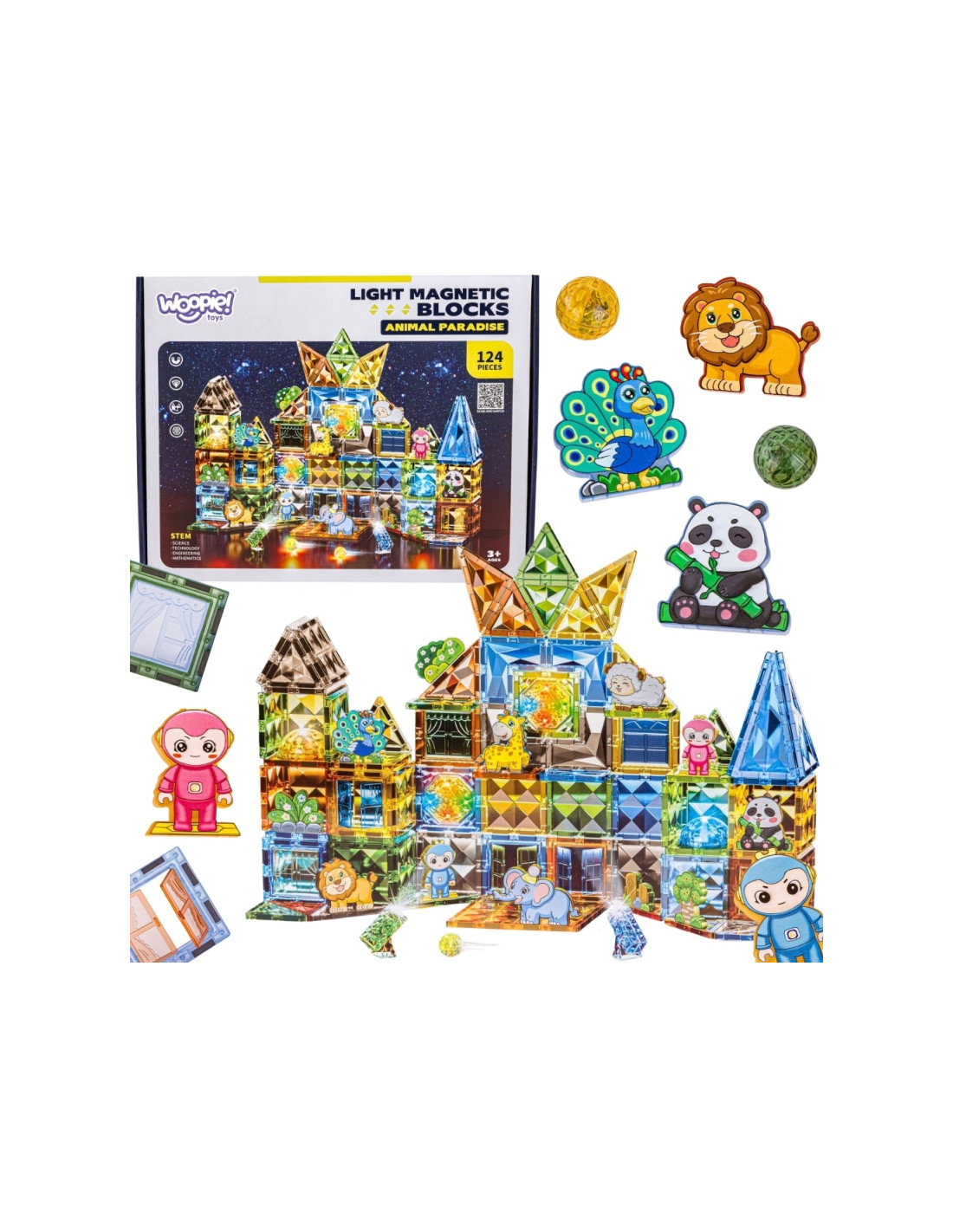 WOOPIE Šviečiantys 3D konstrukciniai magnetiniai kaladėlės Gyvūnų pasaulis 124el.