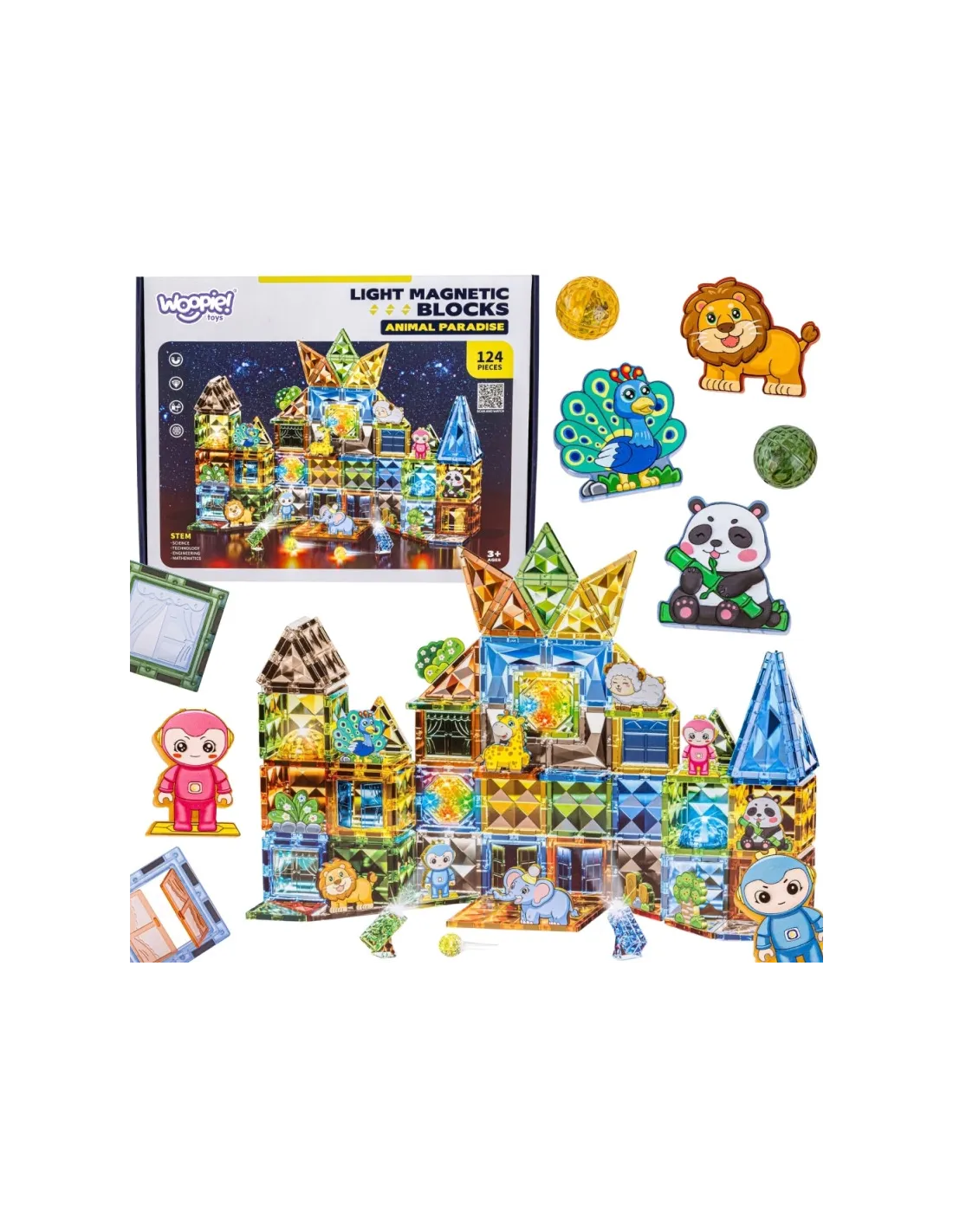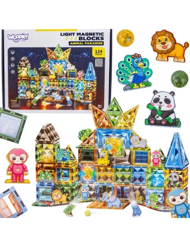 WOOPIE Šviečiantys 3D konstrukciniai magnetiniai kaladėlės Gyvūnų pasaulis 124el.