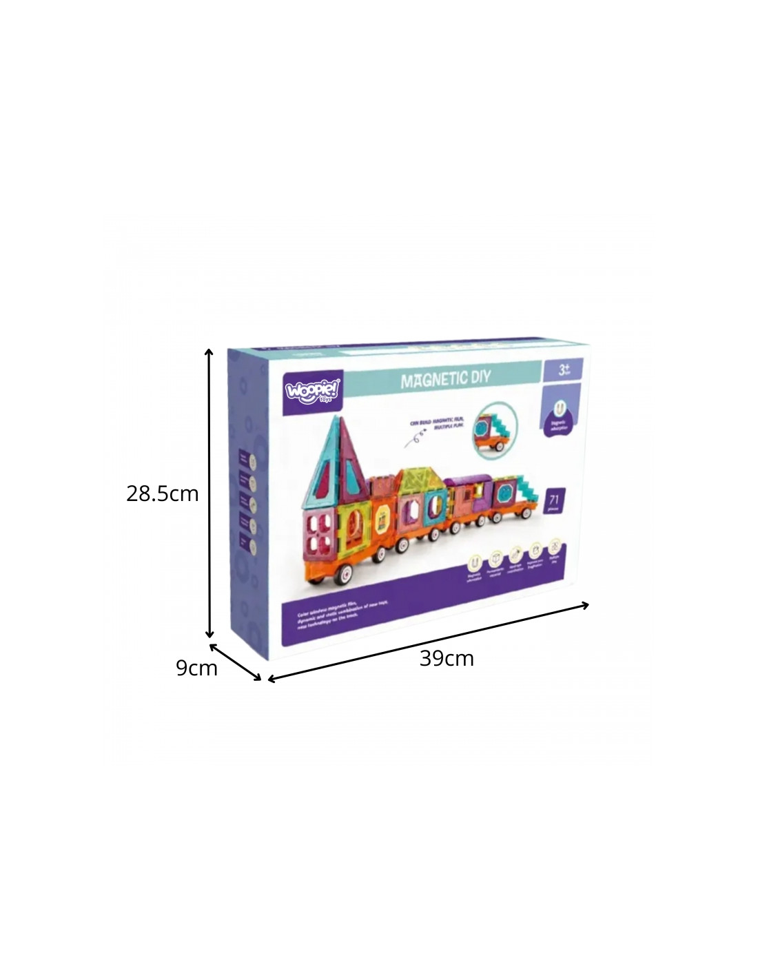 Sukonstruokite savo spalvingą traukinuką! Šis 71 el. magnetinis „Woopie“ kaladėlių rinkinys yra puikus žaislas įvairioms transporto priemonėms kurti. Kaladėlės paprastai ir magiškai susijungia dėl įmontuotų magnetų. Jos leidžia laisvai kurti traukinius su vagonais ar kitomis konstrukcijomis, kartu lavindamos erdvinę vaizduotę ir rankinius įgūdžius. Tai puiki įžanga į STEAM mokymąsi, derinant mokslą ir kūrybiškumą.