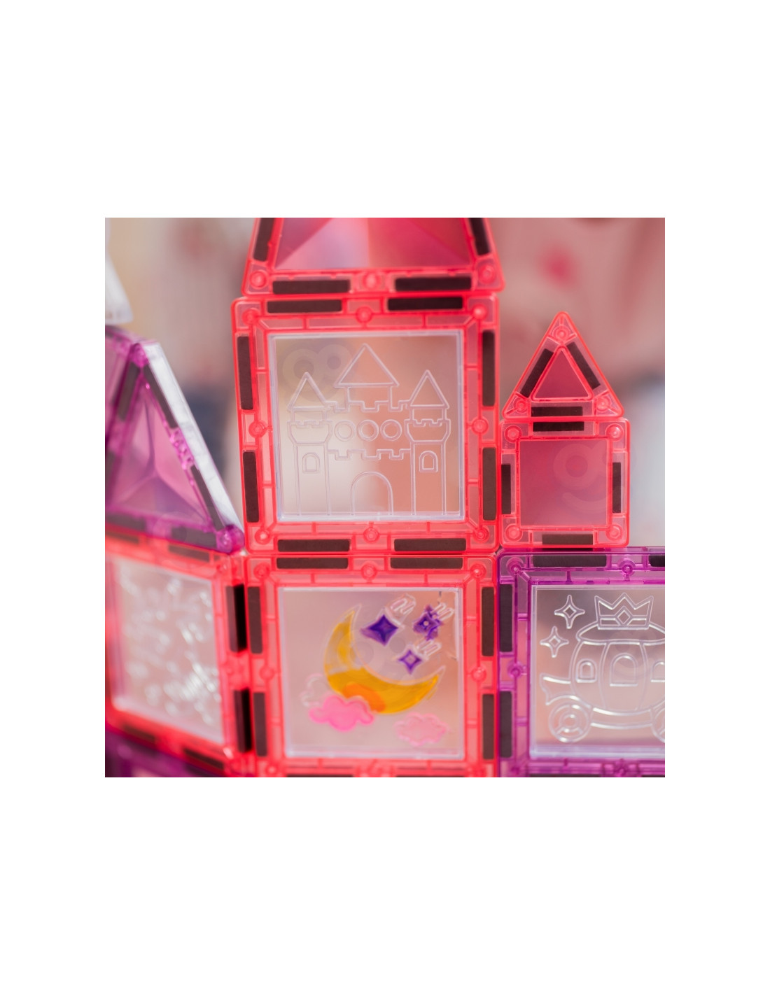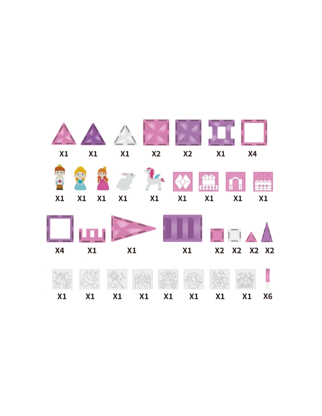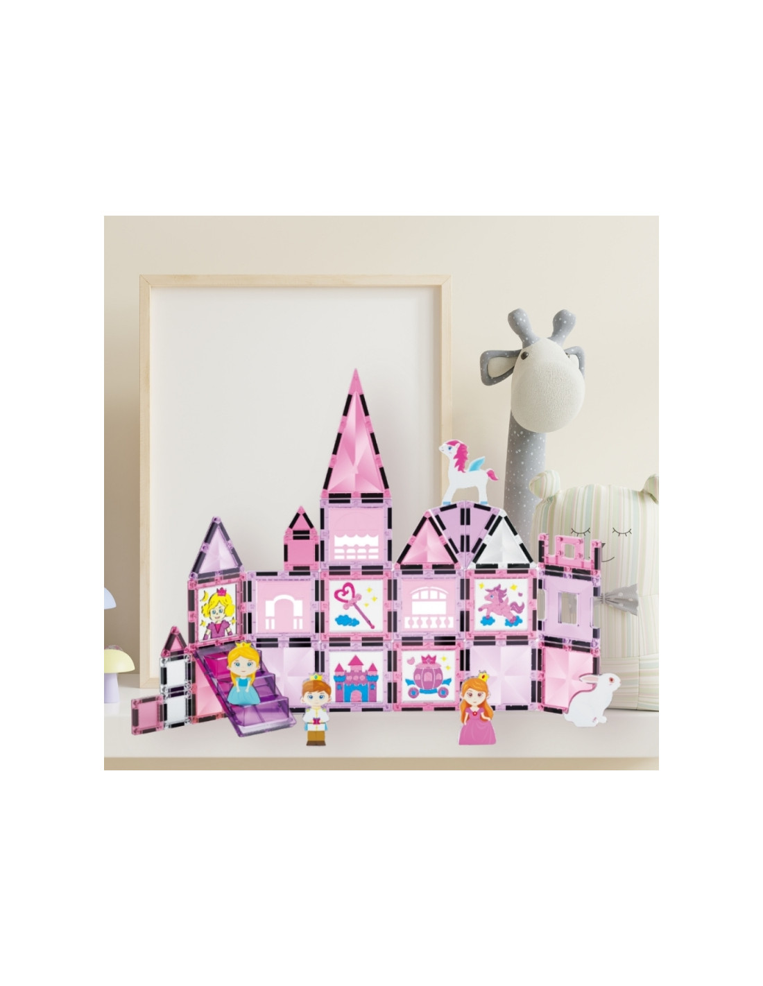 Žadinkite savo vaiko vaizduotę su šiuo magnetinių kaladėlių rinkiniu, skirtu mažiesiems princesių, vienaragių ir pasakų šalių mylėtojams. Šį unikalų rinkinį sudaro 58 tiksliai pagamintos įvairių formų ir funkcijų detalės – visos jos turi įmontuotus magnetus, kad būtų galima greitai, patvariai ir saugiai sujungti. Tai puikus kūrybinio žaidimo ir lavinimo derinys, lavinantis rankinius įgūdžius, loginį mąstymą ir erdvinę vaizduotę.