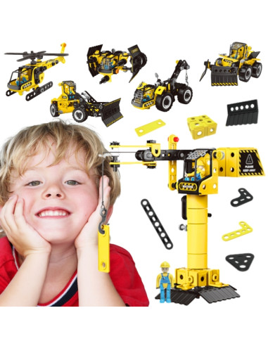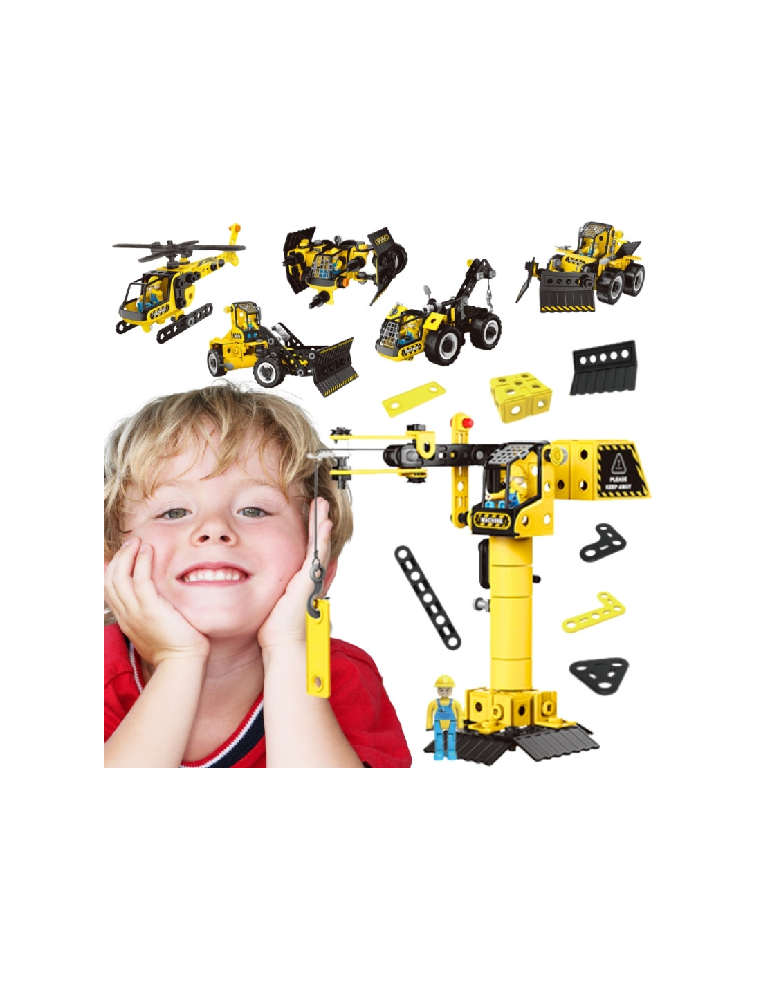 Atraskite žavų statybų pasaulį su Woopie STEAM“ statybinių transporto priemonių rinkiniu. Šis unikalus statybinių kaladėlių rinkinys leidžia vaikams sukonstruoti iki 6 skirtingų statybinių transporto priemonių modelių iš vieno dalių rinkinio. Kiekvienas modelis vaizduoja tikras mašinas, naudojamas karjeruose ir statybvietėse – nuo galingų ekskavatorių iki statybinių kranų ir gelbėjimo sraigtasparnių. Geltona ir juoda spalvų schema suteikia žaislui profesionalų, industrinį pojūtį, o daugybė judančių dalių – realistišką žaidimo patirtį.