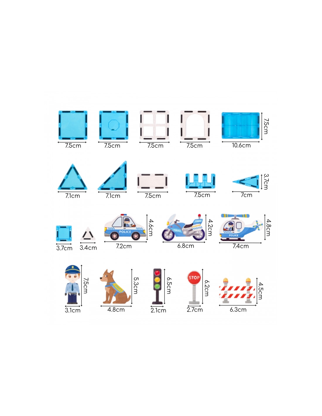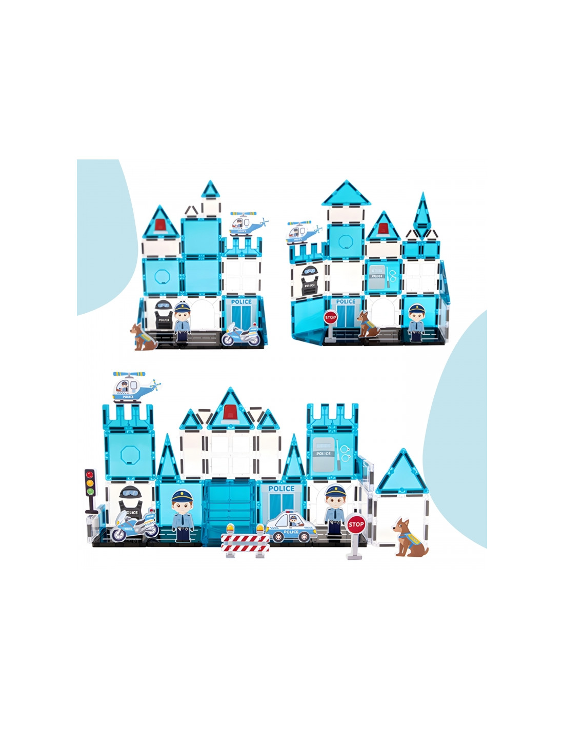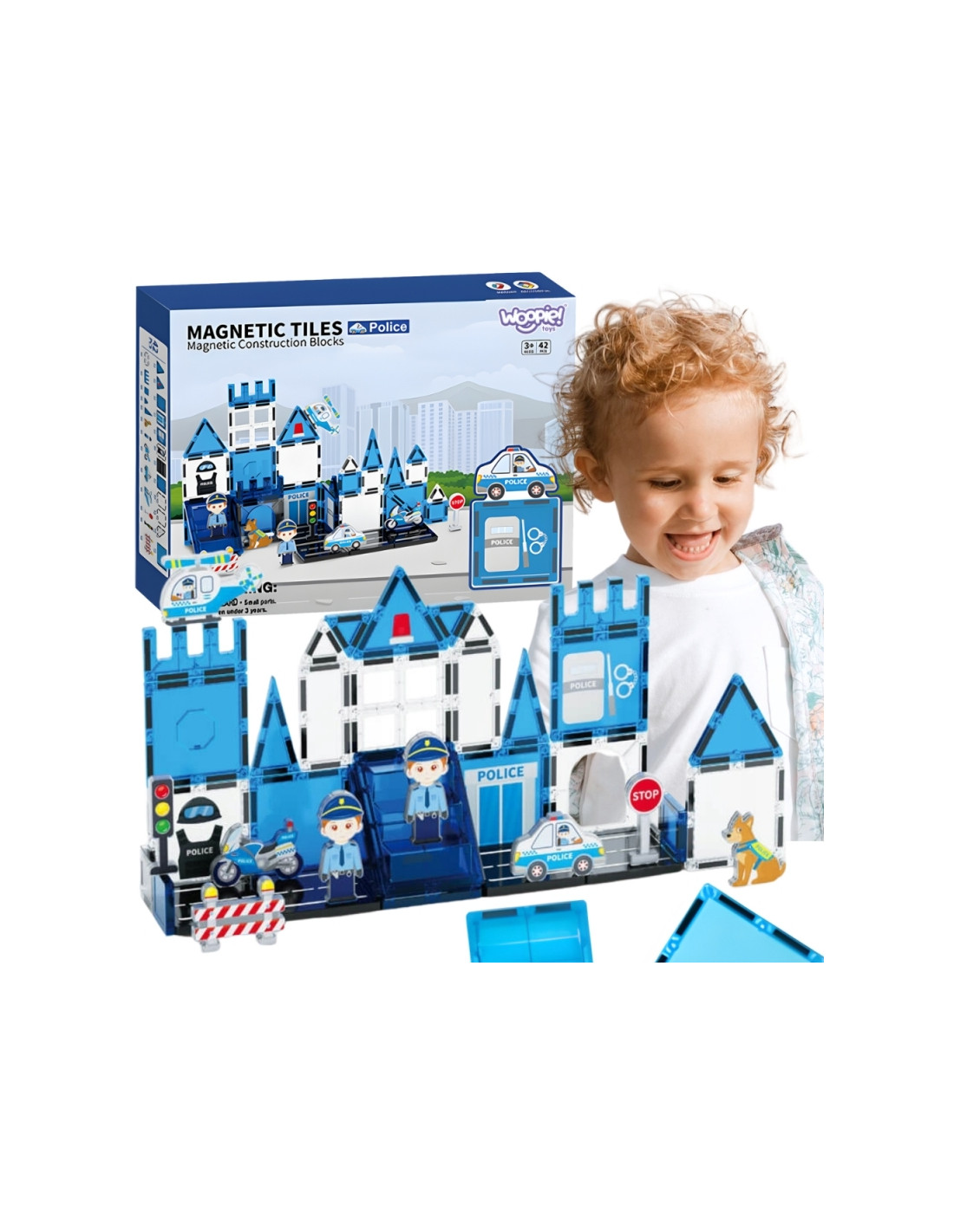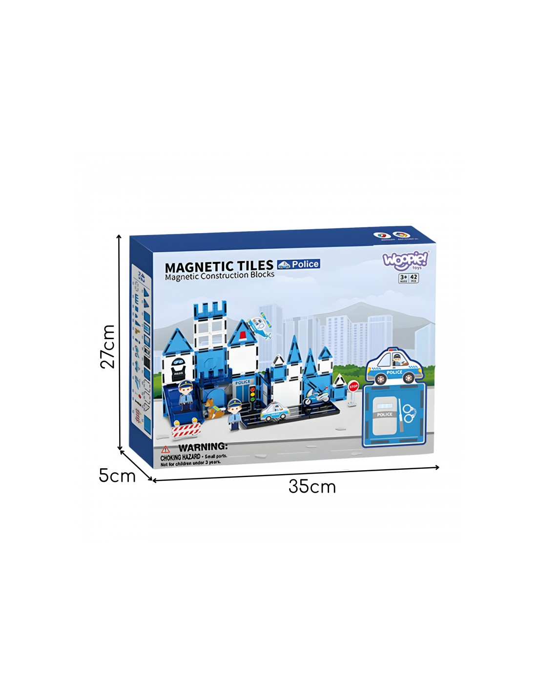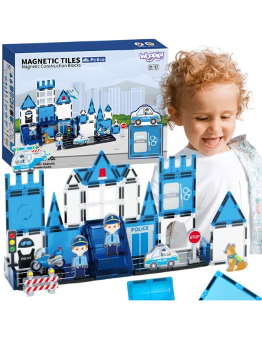 „Woopie! “ policijos nuovados magnetiniai kaladėlės Woopie kūrybingas žaislas, leidžiantis vaikams sukonstruoti savo policijos nuovadą naudojant magnetines plokštes ir priedus. Stiprūs magnetai užtikrina, kad dalys būtų saugiai sujungtos, užtikrinant stabilias konstrukcijas. Policijos priedai, tokie kaip policijos automobilis , sraigtasparnis , pareigūnų figūrėlės , policijos šuo ir kelio ženklai, praturtina žaidimo patirtį. Šis rinkinys leidžia vaikams lavinti kūrybiškumą, loginį mąstymą ir planavimo įgūdžius. Pagamintas iš saugių medžiagų, jis yra puiki dovana jauniems policijos nuotykių gerbėjams.