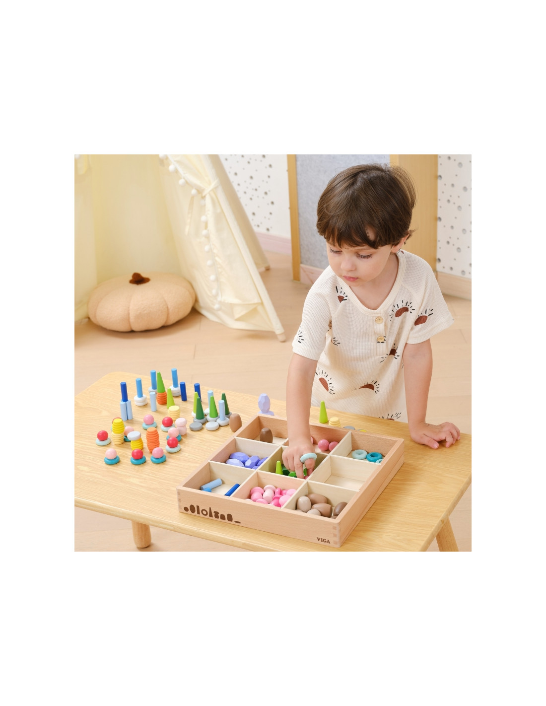 VIGA mediniai lavinamųjų kaladėlių Montesori dėlionė 58 vnt.