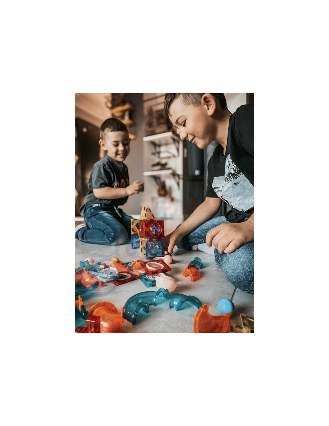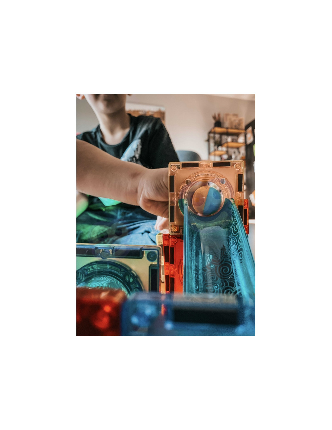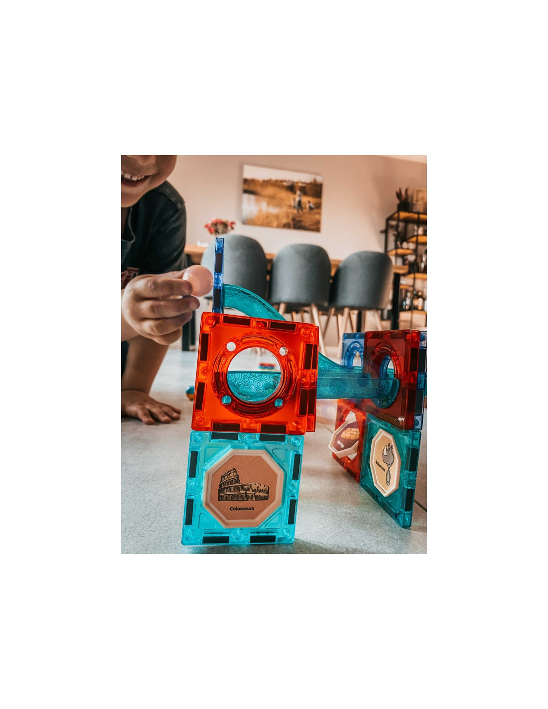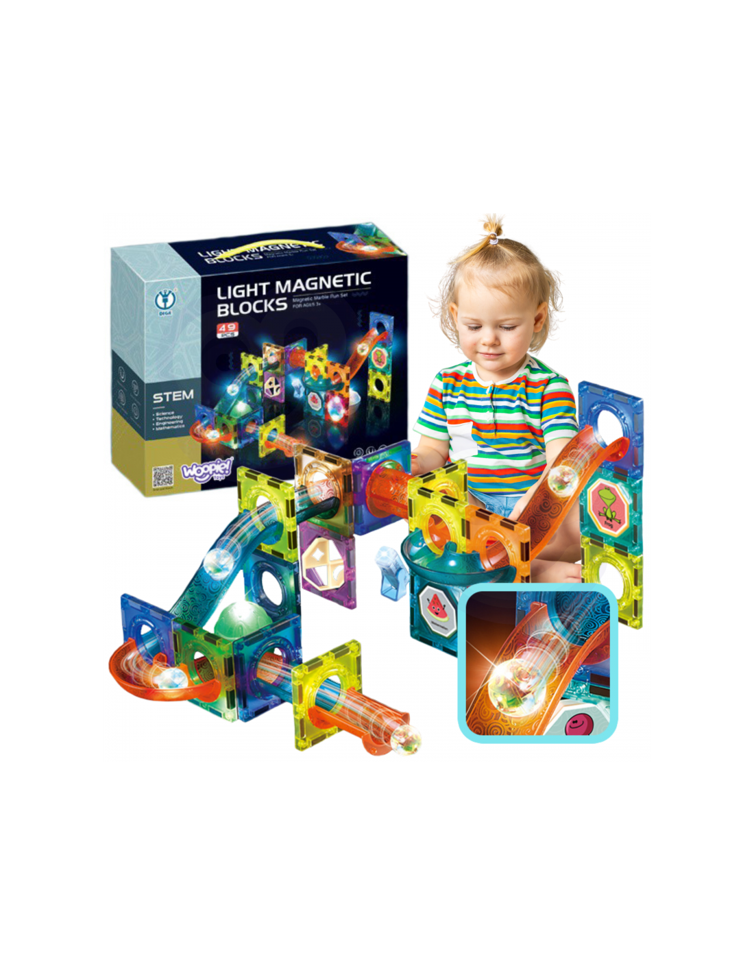 Magnetinės WOOPIE prekės ženkloplytos pritrauks dėmesį ir sužavės jūsų vaiką. Blokelius labai lengva sujungti tarpusavyje ir iš jų galima kurti nuostabias konstrukcijas su kalneliais, pavyzdžiui, takelį, kuriuo juda kamuoliukas. Kad takelis būtų dar įspūdingesnis, jį galima apšviesti pridėtu žibintuvėliu, o jūsų vaikas galės stebėti, kaip juda šviesa, taip lavindamas savo suvokimą. Paprasčiausiai sutvarkę takelį taip, kad kamuoliukai nesunkiai pasiektų galą, konstruodami lavinsite vaiko loginį mąstymą, vaizduotę, kūrybiškumą ir koncentraciją . Dėliodamas kaladėles vaikas susipažįsta su formomis ir spalvomis bei lavina rankų darbo įgūdžius, vadinamąją smulkiąją motoriką.
