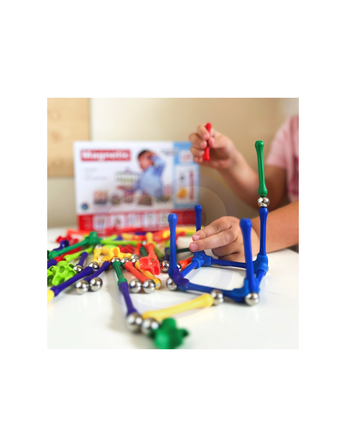 WOOPIE prekės ženklo magnetinių kaladėlių rinkinys sujungia pramogą ir mokymąsi! Viskas, ką jaunajam konstruktoriui reikia padaryti, tai sudėti kaladėles ir pradėti kurti vaizduotę žadinančius pastatus ir daugybę kitų figūrų, pavyzdžiui, geometrines figūras, raides, skaičius ir net matematinius veiksmus! Vienintelė riba - jūsų vaizduotė. Rinkinyje yra 110 elementų ir spalvingų įkvėpimo pavyzdžių su mažyliui padedančiomis lankstymo instrukcijomis . Statinių surinkimas iš kaladėlių lavina vaiko kūrybiškumą, rankų įgūdžius ("smulkiąją motoriką"), erdvinę vaizduotę ir koncentraciją.