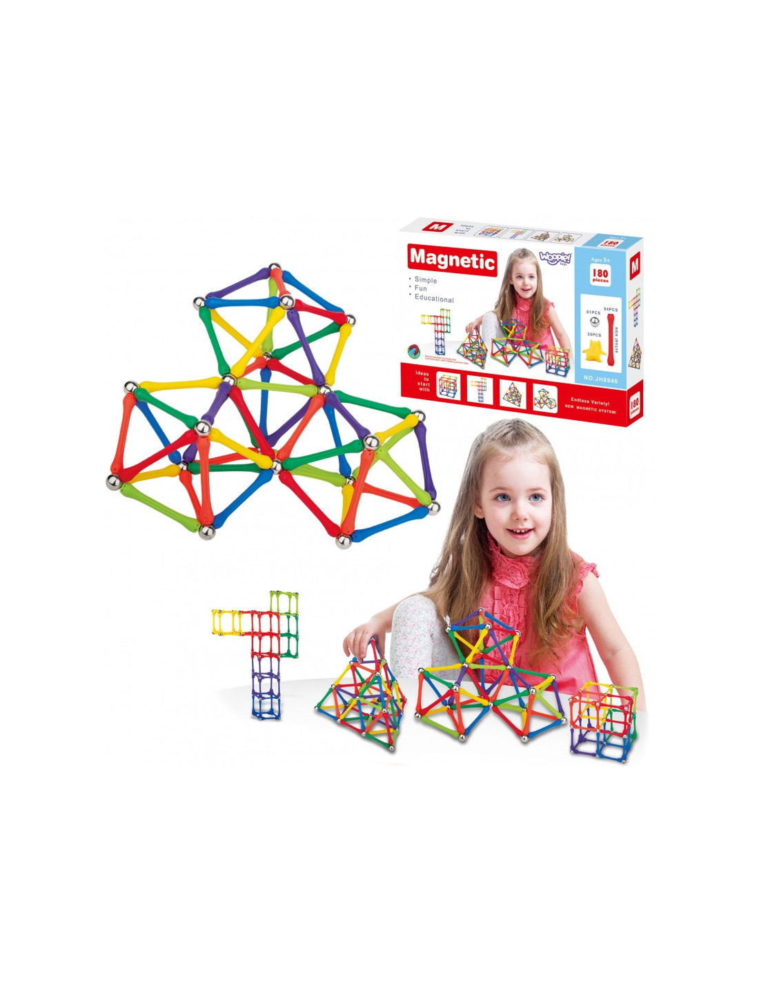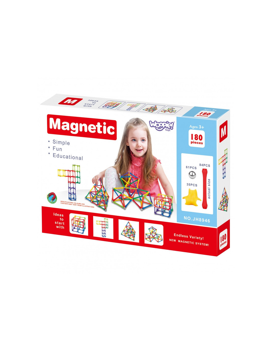 WOOPIE prekės ženklo magnetinių kaladėlių rinkinys sujungia pramogą ir mokymąsi! Viskas, ką jaunajam konstruktoriui reikia padaryti, tai sudėti kaladėles ir pradėti kurti vaizduotę žadinančius pastatus ir daugybę kitų figūrų, pavyzdžiui, geometrines figūras, raides, skaičius ir net matematinius veiksmus! Vienintelė riba - jūsų vaizduotė. Rinkinyje yra 180 elementų ir spalvingų įkvėpimo pavyzdžių su mažyliui padedančiomis lankstymo instrukcijomis . Statinių surinkimas iš kaladėlių lavina vaiko kūrybiškumą, rankų įgūdžius ("smulkiąją motoriką"), erdvinę vaizduotę ir koncentraciją.