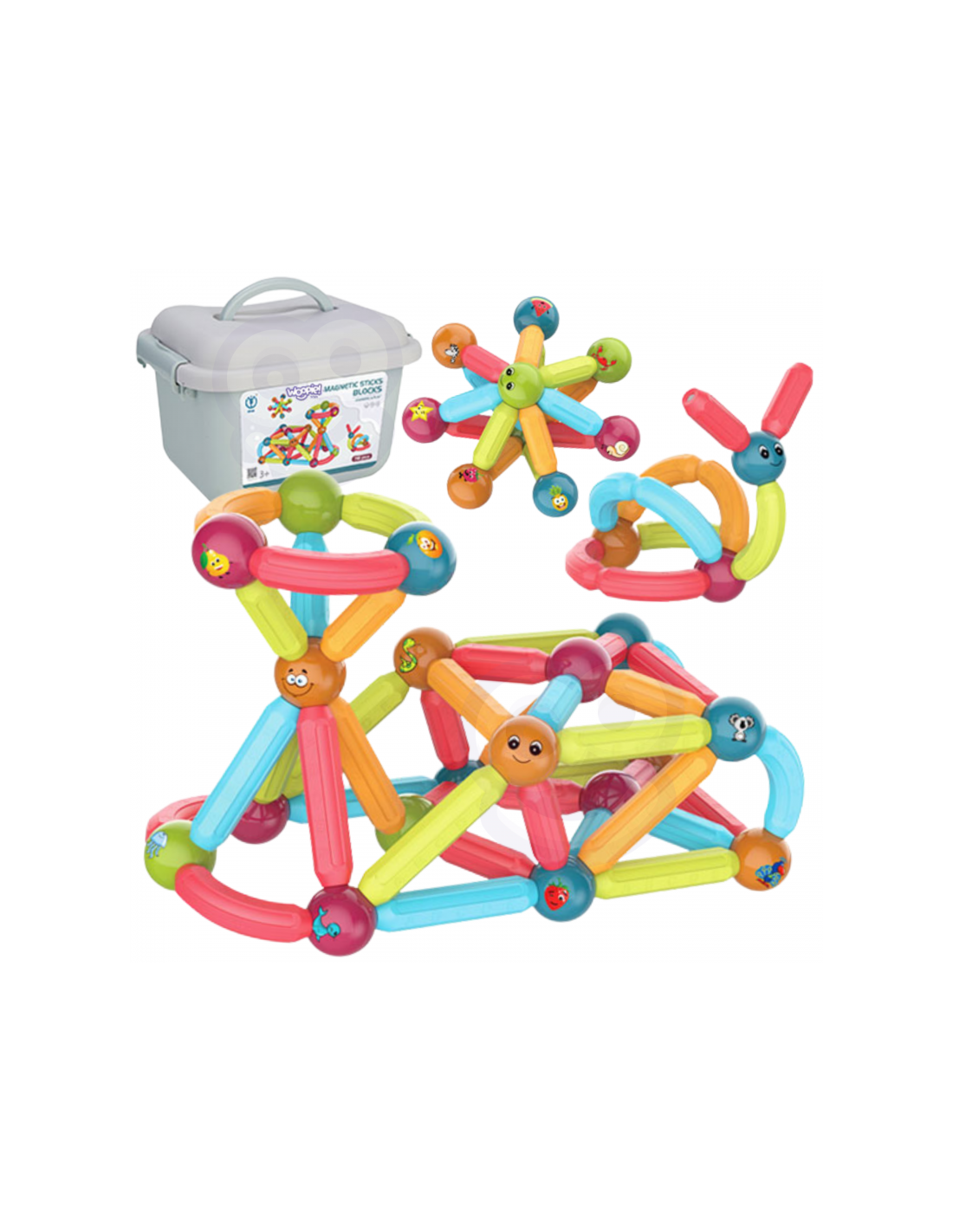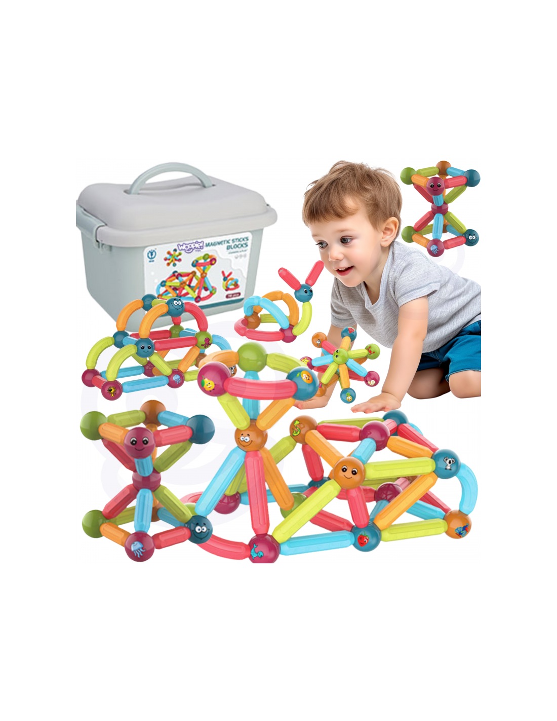 Šis WOOPIE prekės ženklo stambių magnetinių kaladėlių rinkinys sujungia linksmybes ir mokymąsi! Viskas, ką jaunajam konstruktoriui reikia padaryti, tai sudėti detales ir pradėti kurti vaizduotę žadinančius pastatus ir daugybę kitų statinių, pavyzdžiui, geometrines figūras ar mini namelį! Tik vaizduotė yra riba. Rinkinį sudaro 76 detalės ir modelio kortelė . Plytos yra storos, įvairiaspalvės ir saugios - idealiai tinka mažų vaikų rankoms. Edukacinės kaladėlių funkcijos: abėcėlės mokymasis, mokymasis skaičiuoti ir pažinti formas. Ant kamuoliukų pavaizduoti gyvūnai ir šypsenos . Viskas supakuota į patogią dėžutę. Statinių iš kaladėlių dėliojimas lavina vaiko kūrybiškumą, rankų ("smulkiosios motorikos") įgūdžius, erdvinę vaizduotę ir koncentraciją.