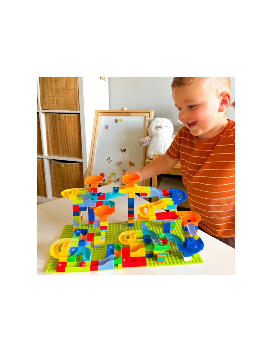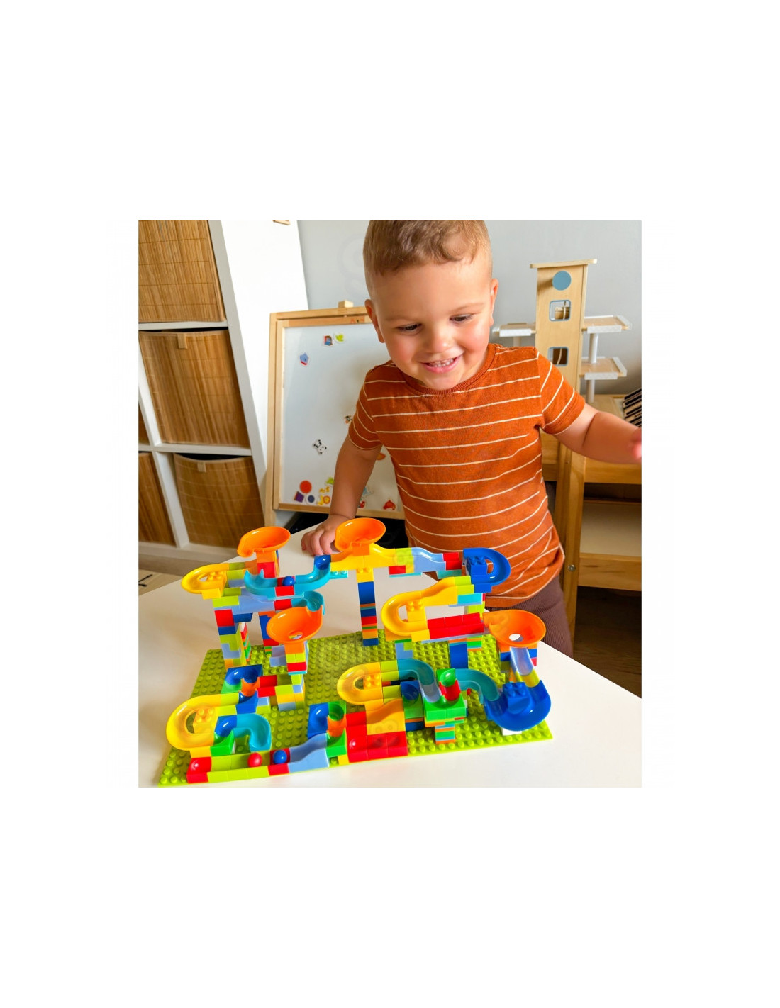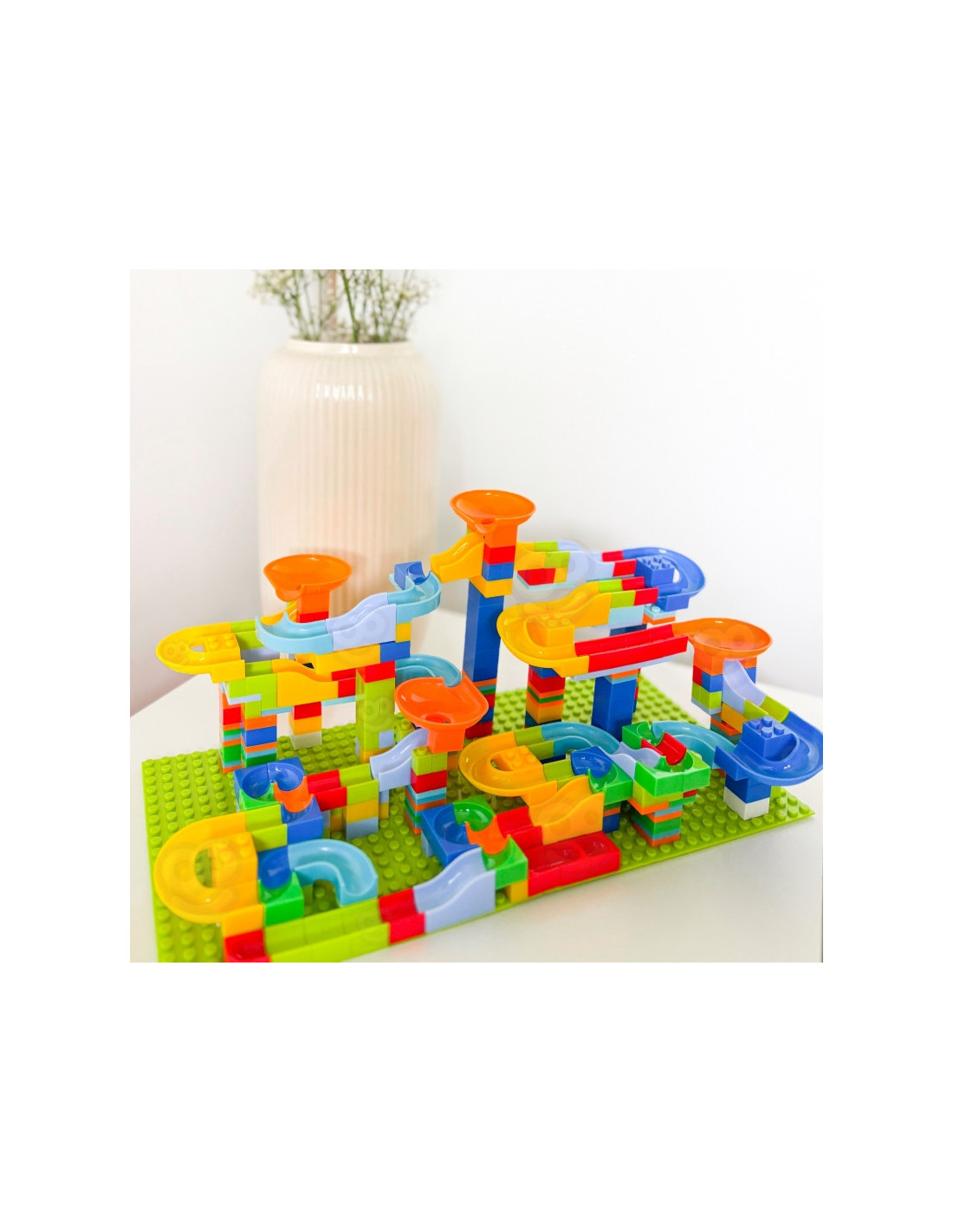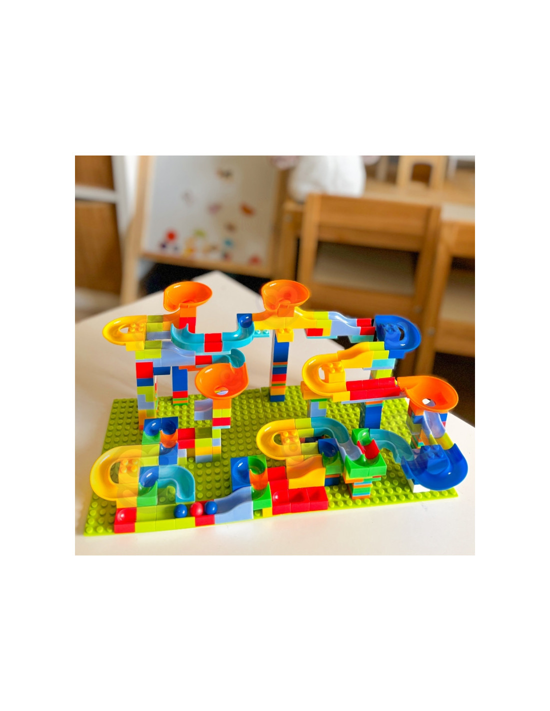 Šis WOOPIE prekės ženkloplytų rinkinys leis jūsų vaikui tapti tikru architektu ir pastatyti didžiulį kamuolio kelią, suteiks jam daug džiaugsmo statant ir vėliau žaidžiant su konstrukcija. Tai žavus rinkinys, garantuojantis ilgas mažųjų pramogų valandas. Jame yra įvairių elementų, pavyzdžiui, kaladėlių, kalnelių ir kamuoliukų, kad jūsų vaikas galėtų pastatyti savo unikalią trasą! Trasos konstravimas yra tikras iššūkis ir kūrybinė patirtis, lavinanti mažųjų erdvinius ir konstravimo įgūdžius. Kreivės ir kalneliai suteikia kamuoliukams greičio, o kaladėlės leidžia kurti įvairias konstrukcijas ir kliūtis. Galima statyti skirtingo sudėtingumo trasas - vaikus riboja tik jų vaizduotė! Rinkinyje pateikiama instrukcija, kaip pastatyti pavyzdinę kamuoliukų trasą.