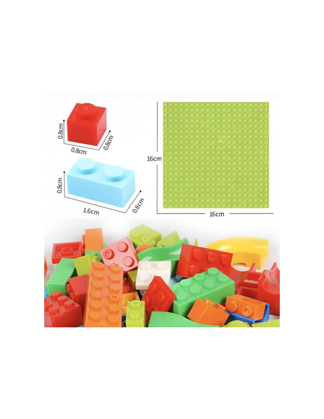 - - Net 340 detalių, įskaitant dvi dideles statybines kaladėles, kurių kiekviena yra 16 x 16 (cm) dydžio