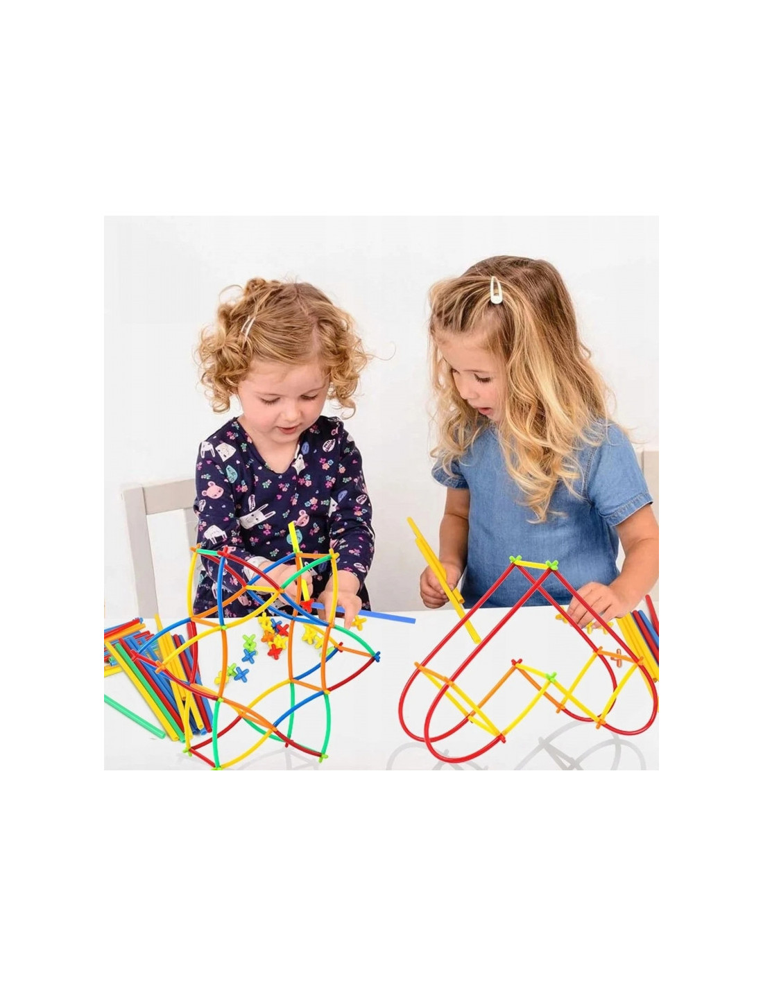 "Construction Straws" yra unikalus žaislų prekės ženklas Woopiekuris leidžia vaikams kurti figūras, geometrines figūras ir erdvines konstrukcijas. Spalvingi šiaudeliai ir jungtys skatina vaizduotę, lavina rankų darbo įgūdžius ir suteikia valandų valandas įdomių pramogų - tiek savarankiškai, tiek su šeima ar draugais. Dėl praktiško indo su rankena rinkinį lengva laikyti ir nešiotis, o elementų įvairovė reiškia, kad žaisti niekada nebus nuobodu.