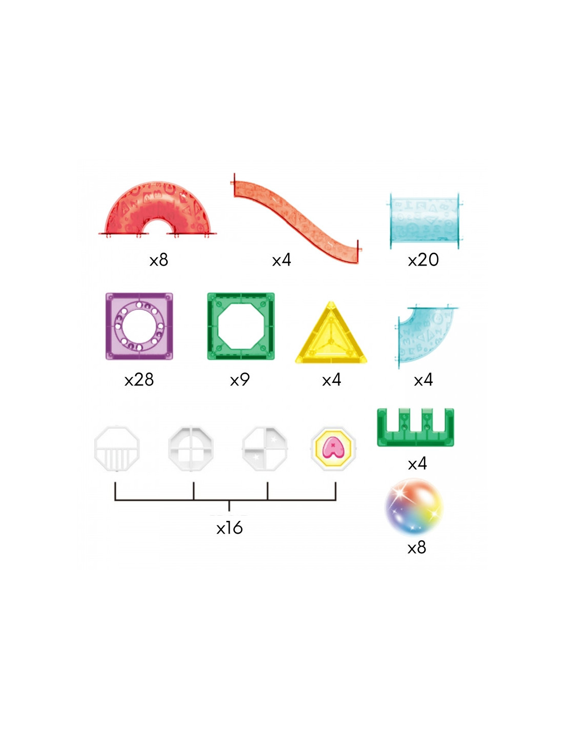 Pasinerkite į užburiantį konstravimo pasaulį su 3D magnetiniu kamuoliukų taku su šviečiančiais kamuoliukais iš prekės ženklo Woopie! Šis naujoviškas magnetinių kaladėlių rinkinys yra daugiau nei žaislas - tai įtraukiantis nuotykis, skatinantis kūrybiškumą ir loginį mąstymą. Lengvai jungiamų magnetinių detalių dėka jūsų vaikas gali sukurti nesuskaičiuojamą daugybę bėgių konstrukcijų, kuriomis kamuoliukai lekia žemyn. Tai puikus būdas leisti laiką, lavinti vaizduotę ir džiaugtis kiekvienu pavykusiu projektu!