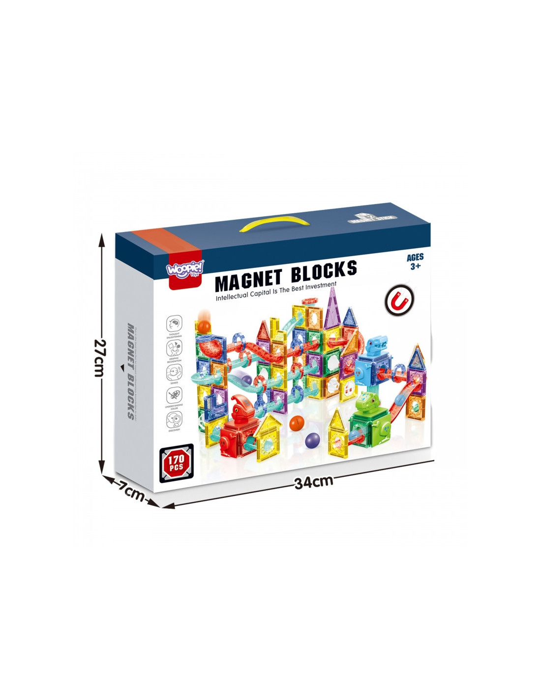 Atraskite tikrą kūrybiškumo ir inžinerijos rojų su šio prekės ženklo 3D magnetinių kaladėlių rinkiniu Woopie! Iš šio įspūdingo 170 detalių rinkinio galima pastatyti sudėtingą kelių lygių kamuoliukų trasą ir fantastiškas erdvines struktūras. Skaidrios magnetinės kaladėlės ir įvairūs intensyvių spalvų takelio elementai garantuoja valandų valandas įtraukiančio žaidimo, kurio metu vaikai praktiškai išmoks fizikos pagrindų ir gravitacijos principų. Tai idealus būdas lavinti loginį mąstymą, erdvinę vaizduotę ir rankų darbo įgūdžius. Šis rinkinys - tai vartai į neribotų konstravimo galimybių pasaulį!