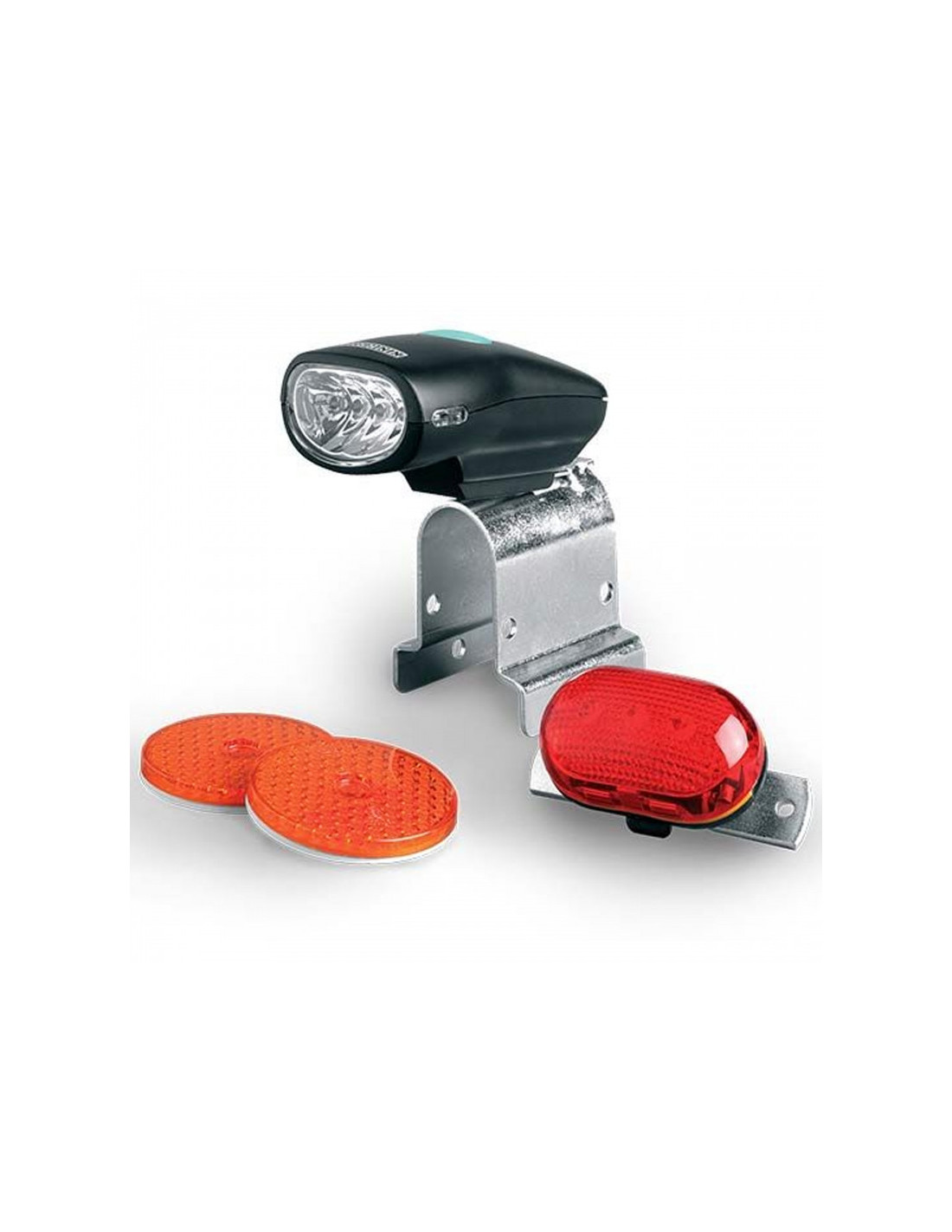 Pilnas LED apšvietimo komplektas Berg kartingams. Komplektą sudaro: priekinis žibintas, galinis žibintas ir du šviesą atspindintys diskai. Žibintai aprūpinti tvirtais metaliniais laikikliais.