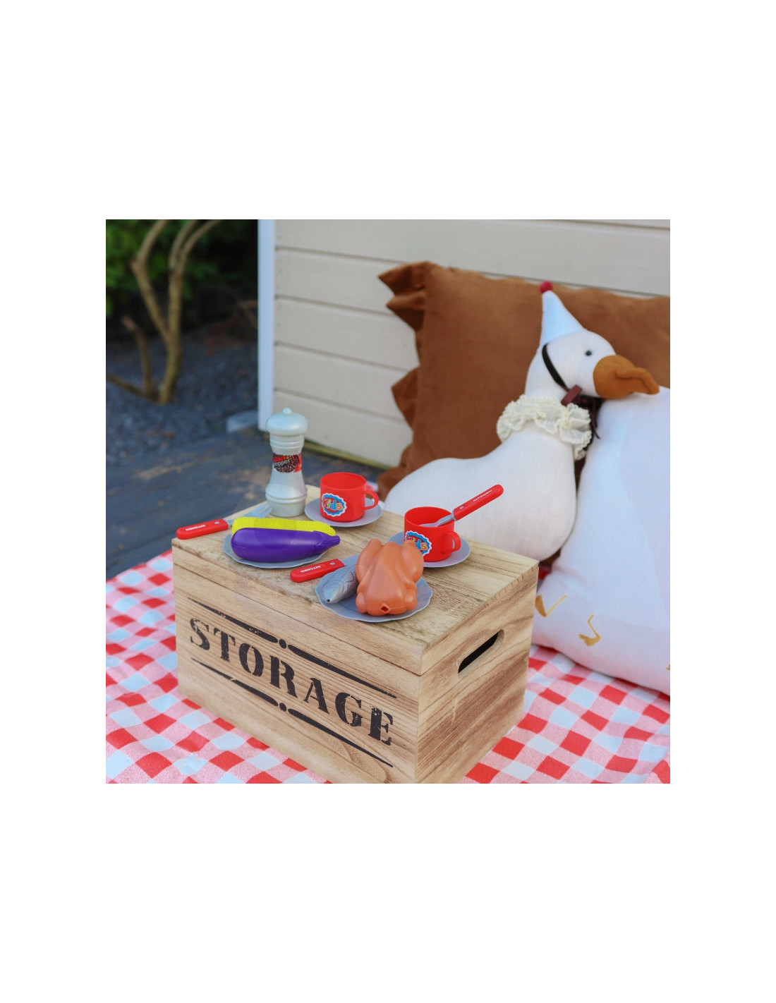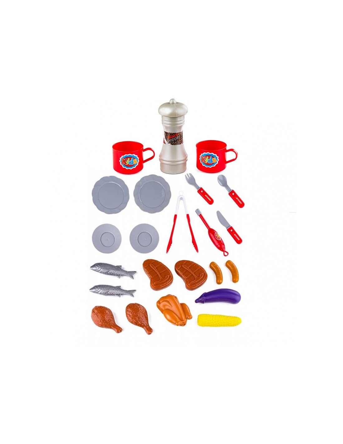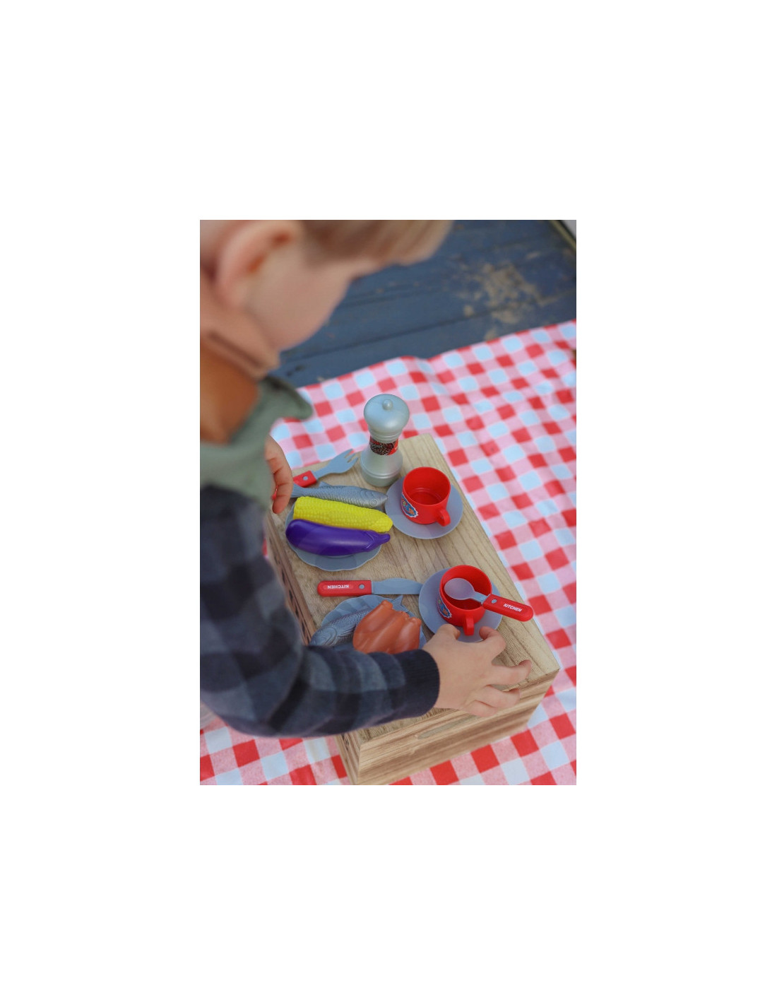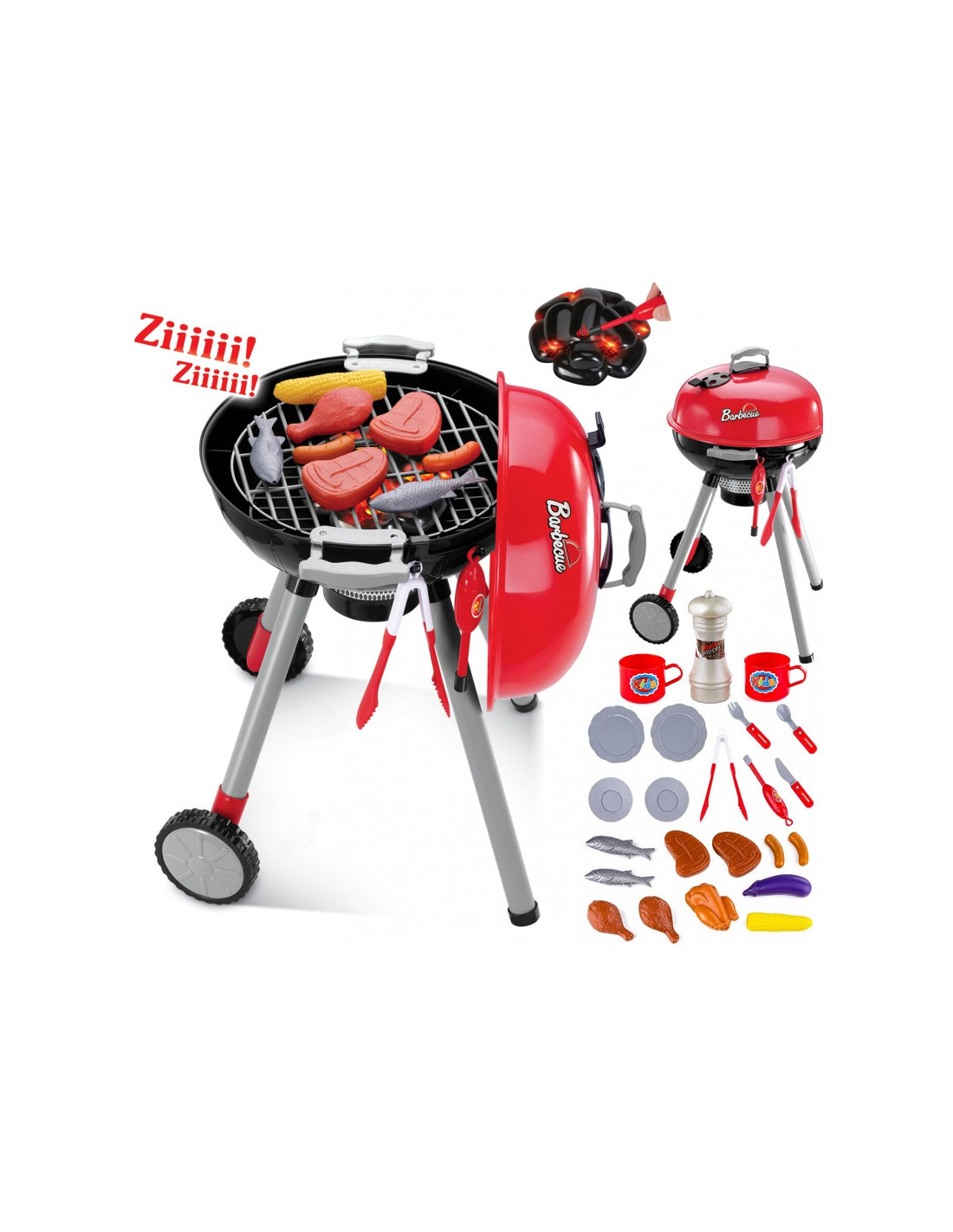 WOOPIE kepsninė-grilis yra kaip tikra grilinė! Rinkinyje yra viskas, ko reikia kepimui ant grotelių: anglys, žiebtuvėlis, žnyplės, virtuvės reikmenys, dešrelės, kepsniai, vištiena, žuvis ir kukurūzai. Šviesos ir garso efektai suteikia realizmo . Tikro uždegimo funkcija – tiesiog padėkite žiebtuvėlį prie anglių ir išgirsite savitą garsą, o anglys ims šviesti raudonai, imituodamos uždegimą (modulį galima bet kada išjungti mygtuku). Nuimamas dangtelis apsaugo „karštas“ groteles po kepimo, o ratukai ir patogi rankena leidžia transportuoti grilį bet kur sode ar namuose. Su šiuo rinkiniu jūsų vaikas gali atlikti suaugusiojo, stebinčio šeimos kepsninę, vaidmenį.