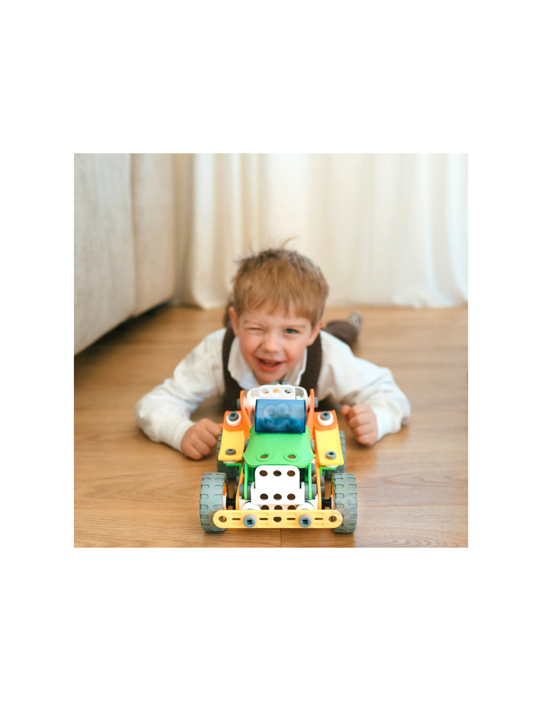 - - jei neturite idėjos, rinkinyje yra išsamios instrukcijos, padedančios sukonstruoti transporto priemonę