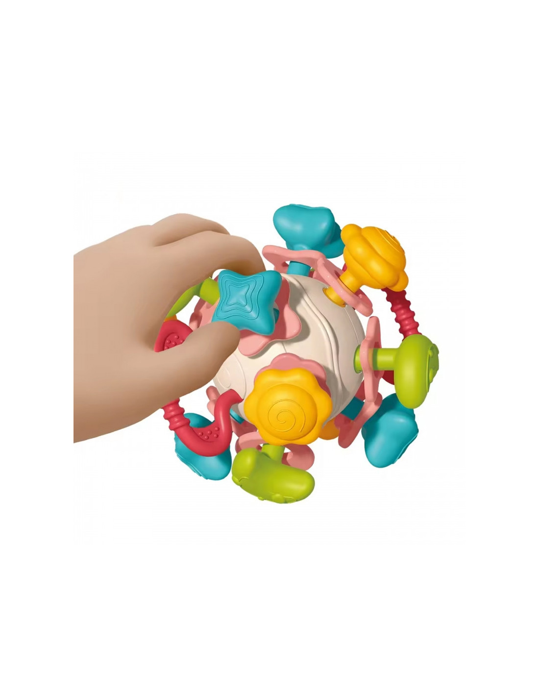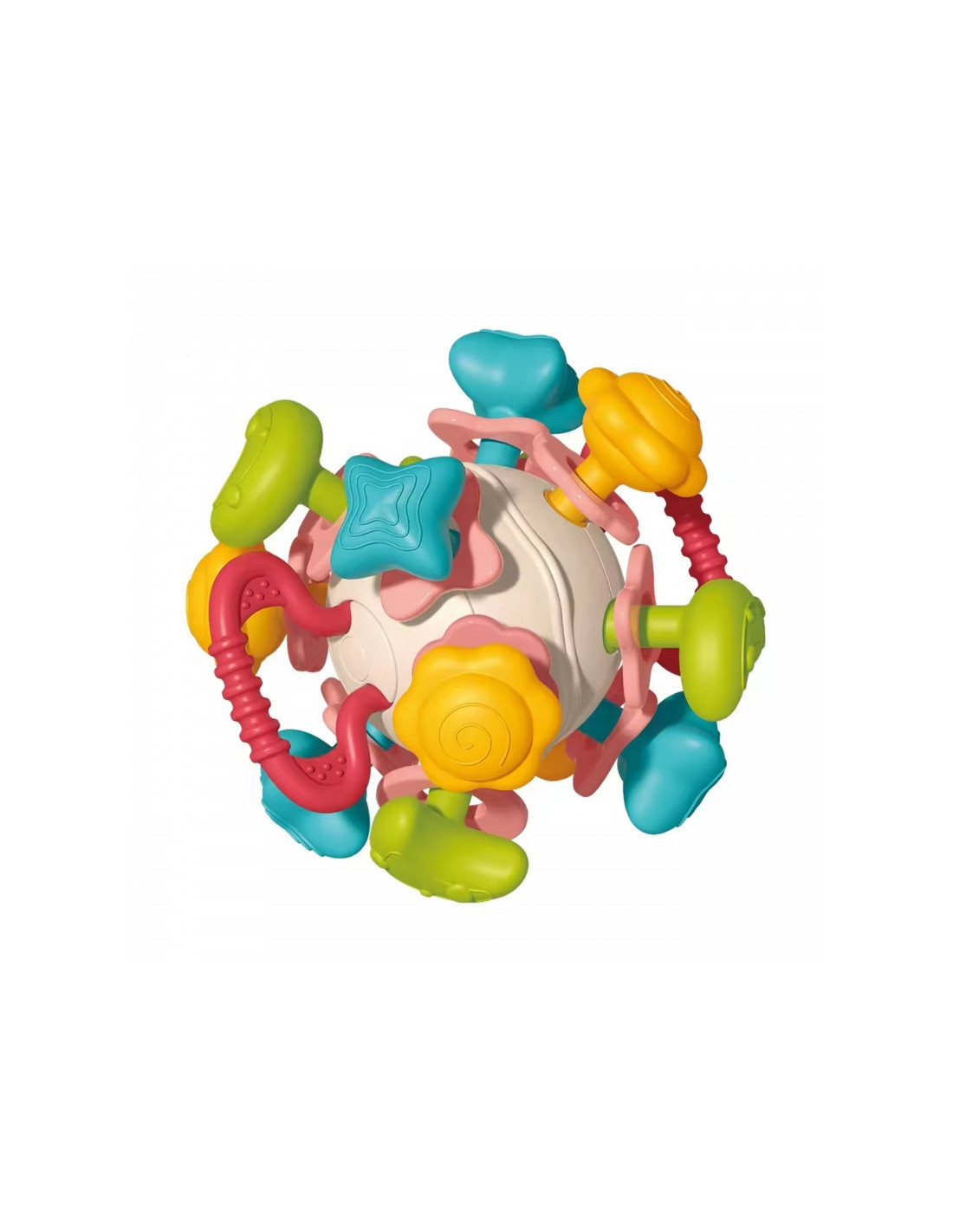 - kramtukas ir barškutis 4 viename, moko naujų formų, lavina smulkiąją motoriką,