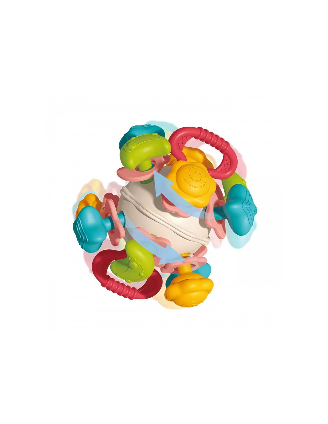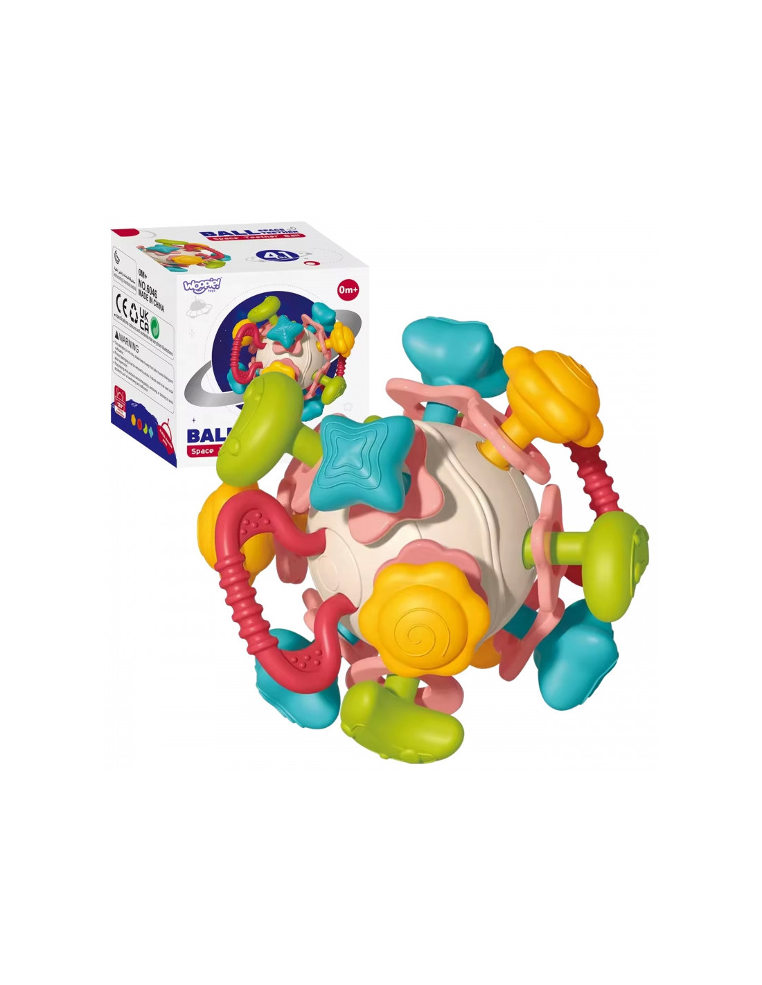 Ryškus barškutis kamuoliuko formos iš WOOPIE yra puikus žaislas mažyliams. Forma ir dydis pritaikyti prie vaikų galimybių ir poreikių, o kiekvienas žiedas sukasi, skleisdamas unikalų garsą. Barškučio rankenos pagamintos iš gumos, kuri suteikia komforto.