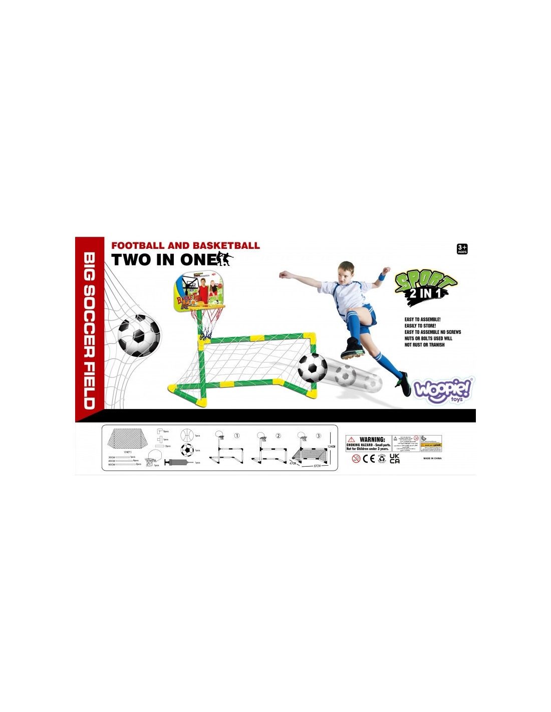 „ Woopie 2-in-1“ krepšinio ir vartų rinkinys – puikus sportinis derinys jauniausiems vaikams! Jūsų vaikas gali pasirinkti, ką nori apsirengti. Jie gali žaisti futbolą ar krepšinį vienas arba su draugais – jiems niekada nebus nuobodu! Šis rinkinys tikrai paskatins jūsų vaiką sportuoti. Ši veikla padės jūsų vaikui lavinti stambiąją motoriką , o tai idealiai tinka tinkamam vaiko vystymuisi.