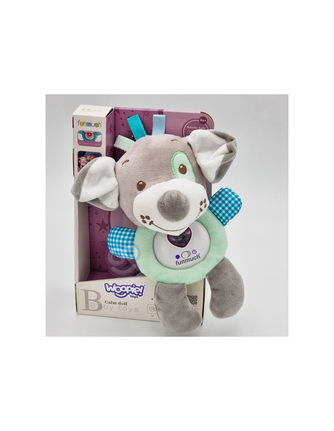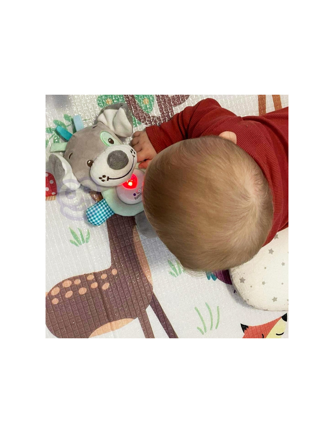 Interaktyvus pliušinis šuo nuramins ir užmigdys jūsų kūdikį . Žaisle galima įjungti mažyliui skirtą lopšinę ir rodyti spalvotas lemputes, todėl mažyliui nebus nuobodu su žaislu. Šis minkštas ir švelnus meškiukas taps jūsų kūdikio draugu nuo pat mažens. Žaislas tinkamas kūdikiams, todėl yra minkštas ir užpildytas vata, todėl nereikės jaudintis, kad jūsų mažylis susižeis. Be to, pliušinį meškiuką galima saugiai ir lengvai išvalyti(nuėmus mechanizmą), nesibaiminant, kad jis bus pažeistas.