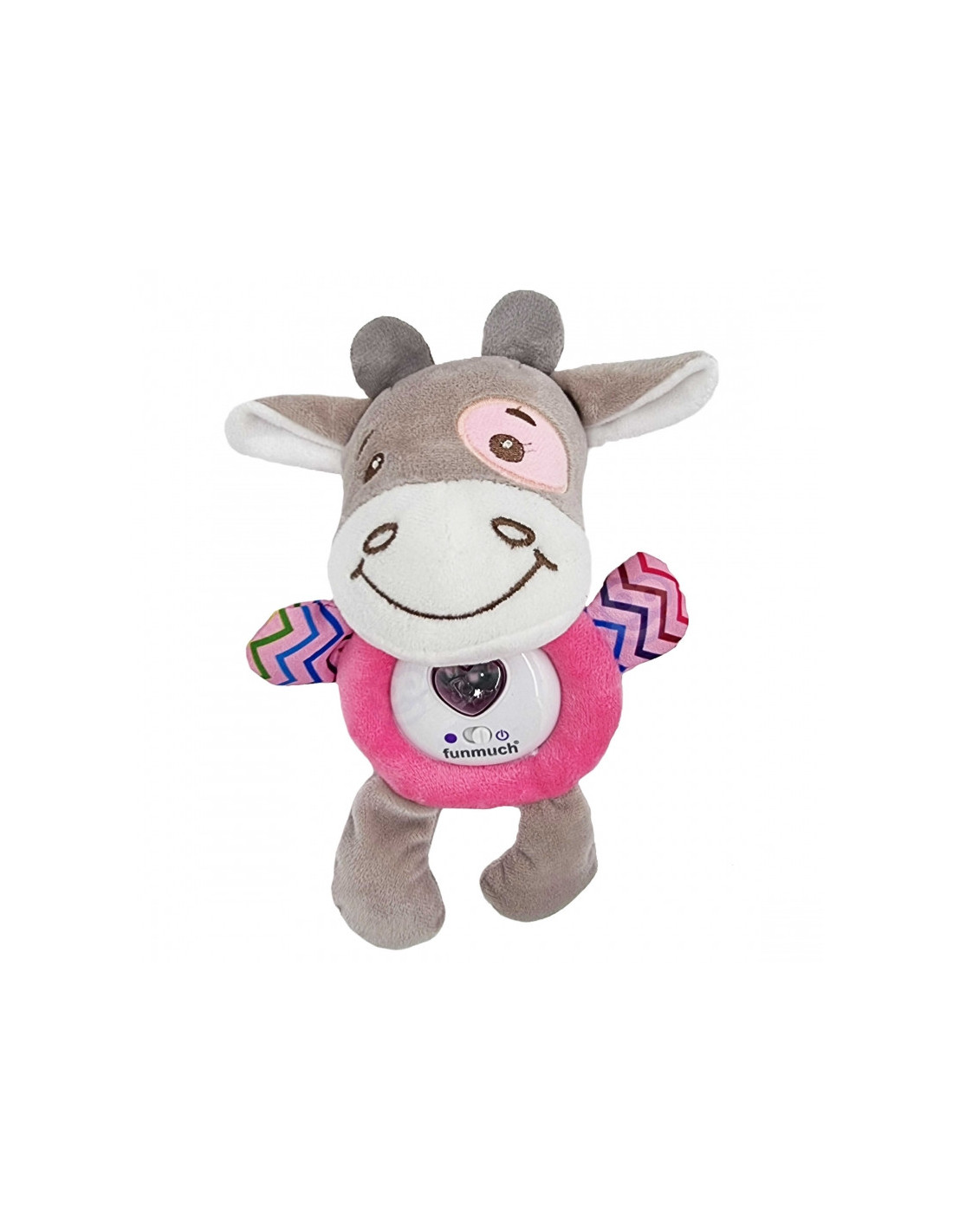Interaktyvus pliušinis jautis nuramins ir užmigdys jūsų kūdikį . Žaisle galima įjungti mažyliui skirtą lopšinę ir rodyti spalvotas lemputes, todėl mažyliui nebus nuobodu su žaislu. Šis minkštas ir švelnus žaisliukas taps jūsų kūdikio draugu nuo pat mažens. Žaislas minkštas, užpildytas vata, todėl nereikės jaudintis, kad jūsų mažylis susižeis. Be to, žaisliuką galima saugiai ir lengvai išplauti(nuėmus mechanizmą), nesibaiminant, kad jis bus pažeistas.