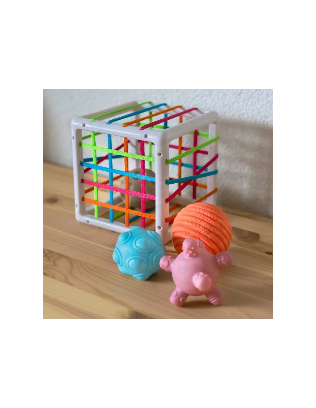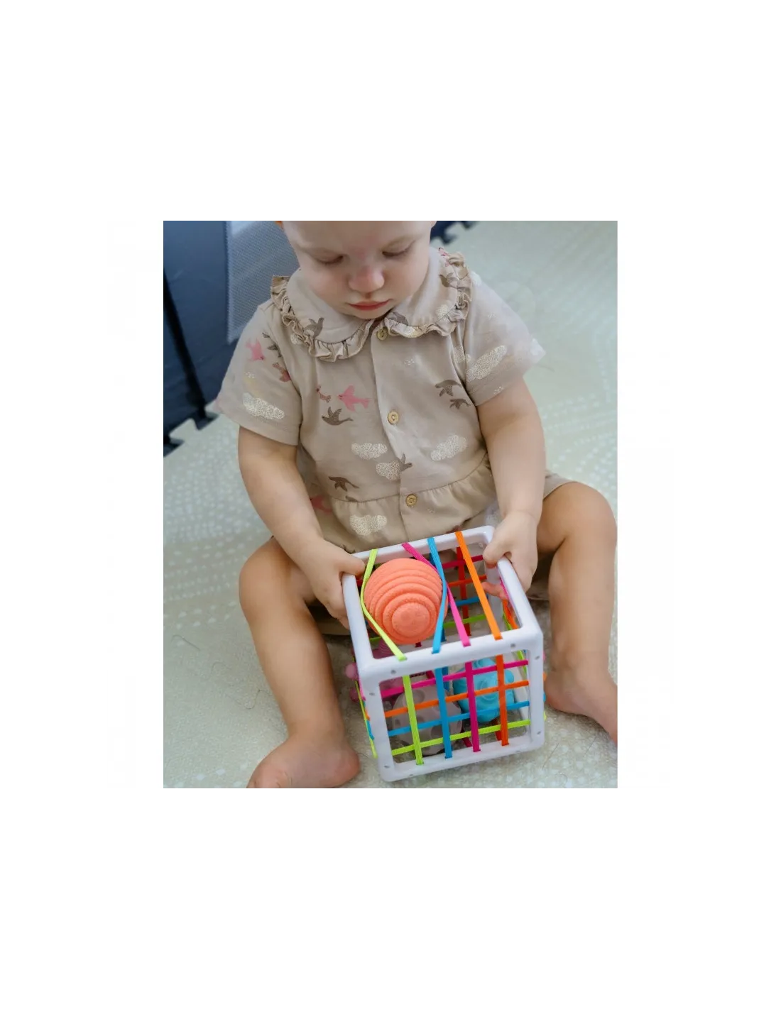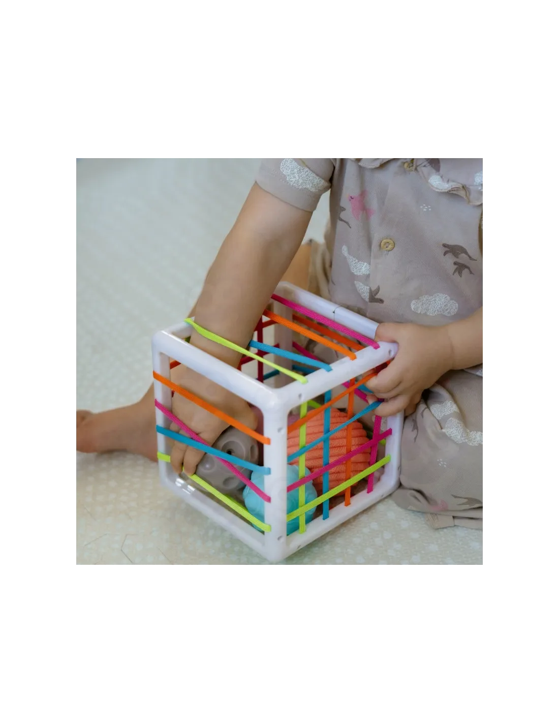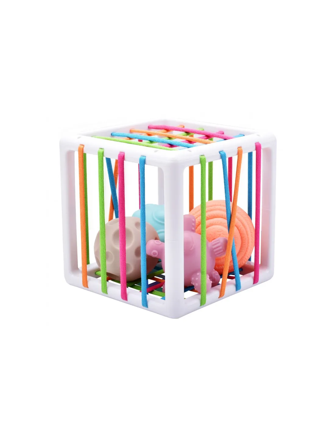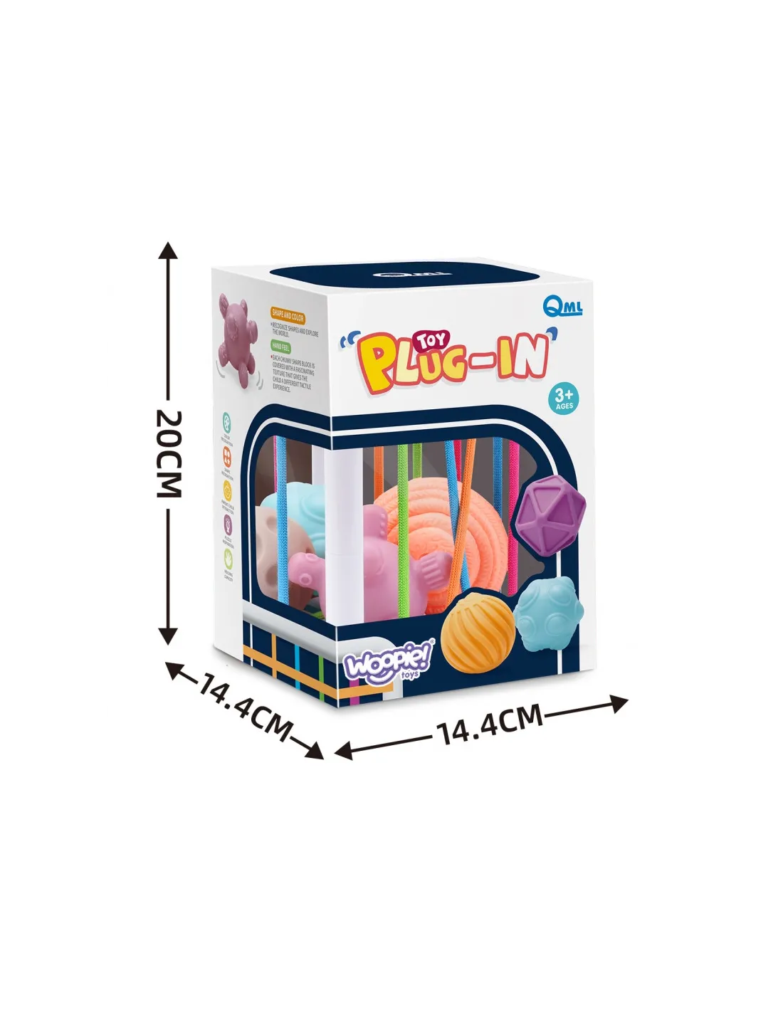 WOOPIE prekės ženklolankstus sensorinis kubas skatins jūsų vaiko vystymąsi! Vaikas žaisdamas įdeda ir išiminėja elementus iš lavinamojo kubo. Žaisdamas vaikas lavina pojūčius ir tobulina rankų darbo įgūdžius. Kiekvienas iš 4 blokų išsiskiria, o tai sužadina vaiko smalsumą tiek, kad jis norėtų juos išimti ir įdėti atgal į rūšiuoklę. Blokeliai yra minkšti, juos galima spausti, jie yra skirtingų formų, tekstūrų, kad lavintų pojūčius, protą ir skatintų vaiką eksperimentuoti. Blokelius galima papildomai naudoti mokantis formų ir spalvų. Kubelių rūšiuoklė turi vaikui malonias elastingas spalvotas gumytes. Nepakeičiamas žaislas jūsų vaikui ankstyvuoju gyvenimo etapu!