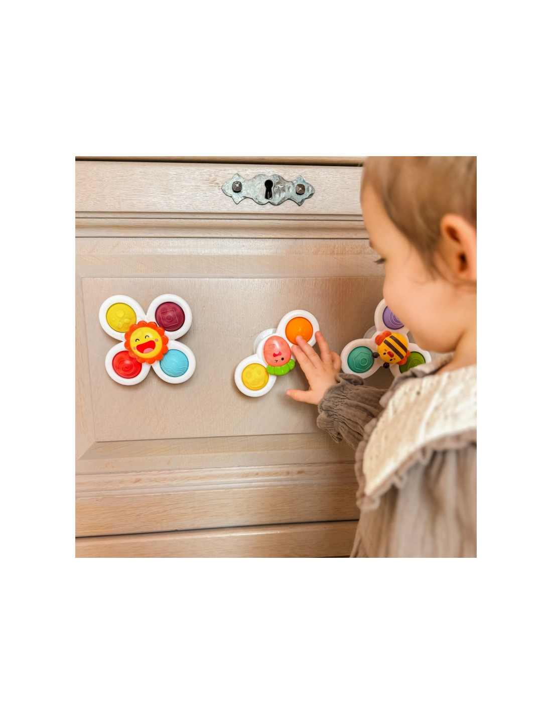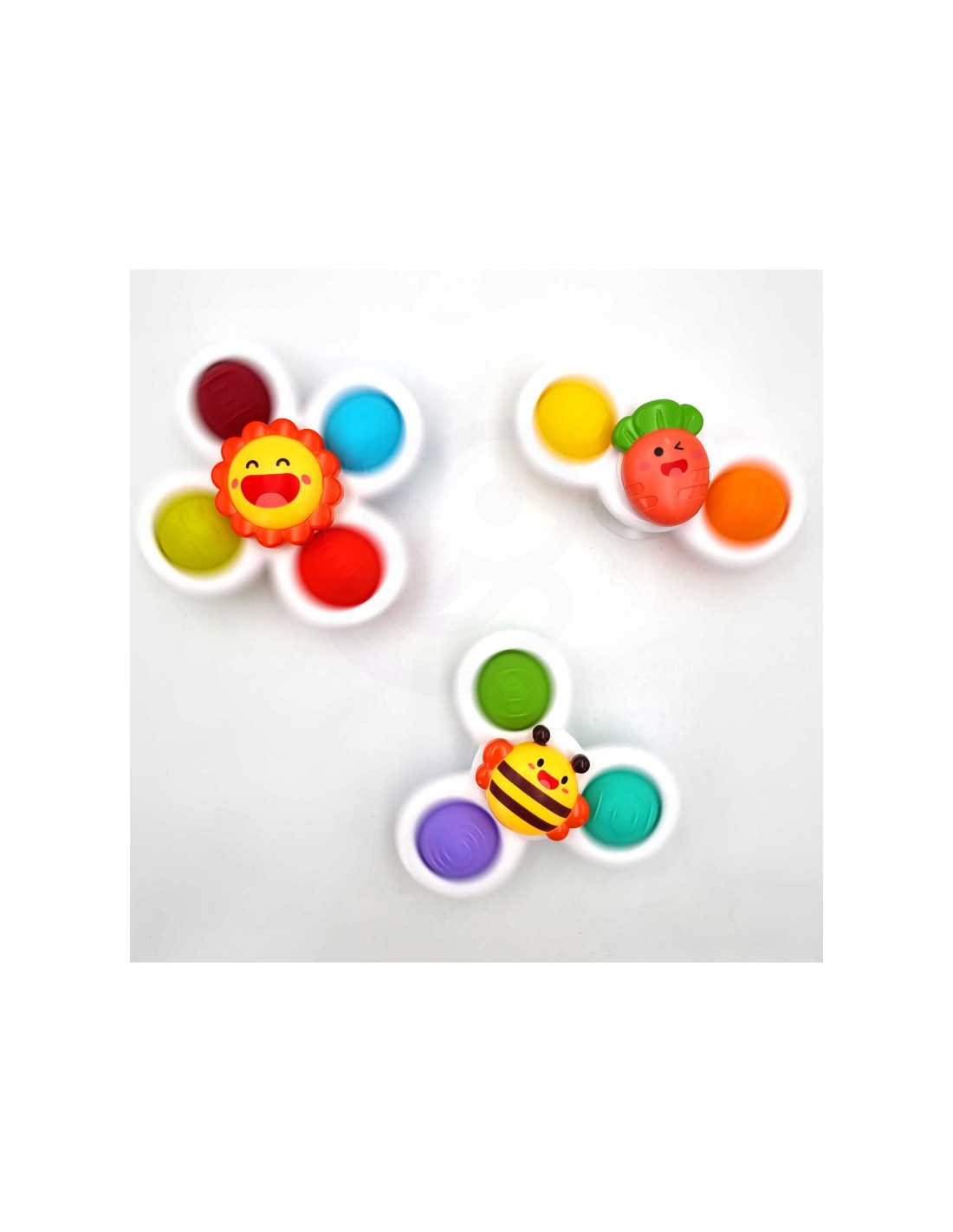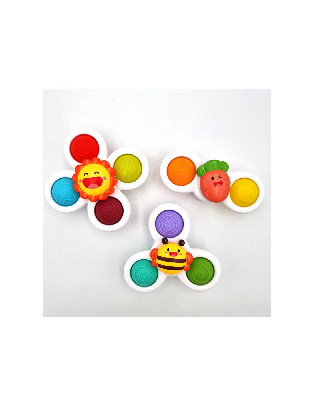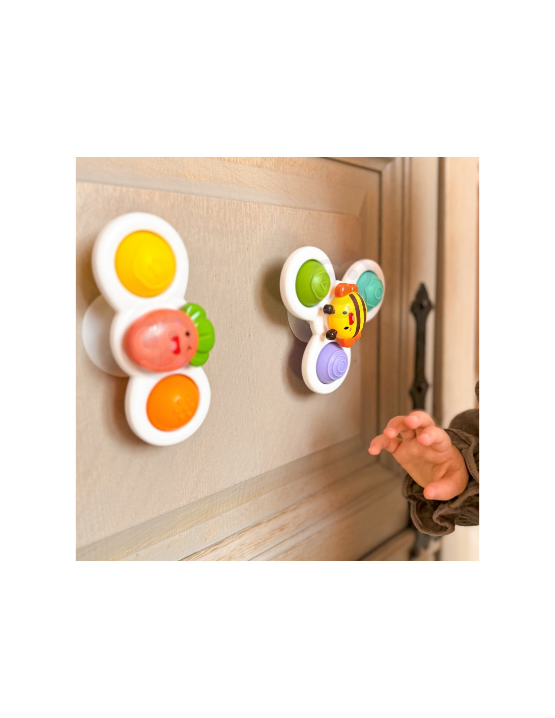 Šis „WOOPIE“ prekės ženklo suktukų rinkinys paliks didelį įspūdį jūsų vaikui. Rinkinį sudaro trys suktukai: morka, bitė ir saulė. Suktukus galima pasiimti bet kur ir pritvirtinti guminių siurbtukų dėka. Suktuką galite pritvirtinti prie lango keliaujant arba prie vonios maudydamiesi maudydamiesi (žaislas gali būti šlapias). Suktukų guoliai garantuoja ilgalaikius sukimus . Žaislai turi guminius prispaudimo elementus, kurie lavins jūsų vaiko pojūčius ir sumažins stresą . Žaidimas su vienerių metų vaiku lavina vikrumą ir gerina rankų bei akių koordinaciją .