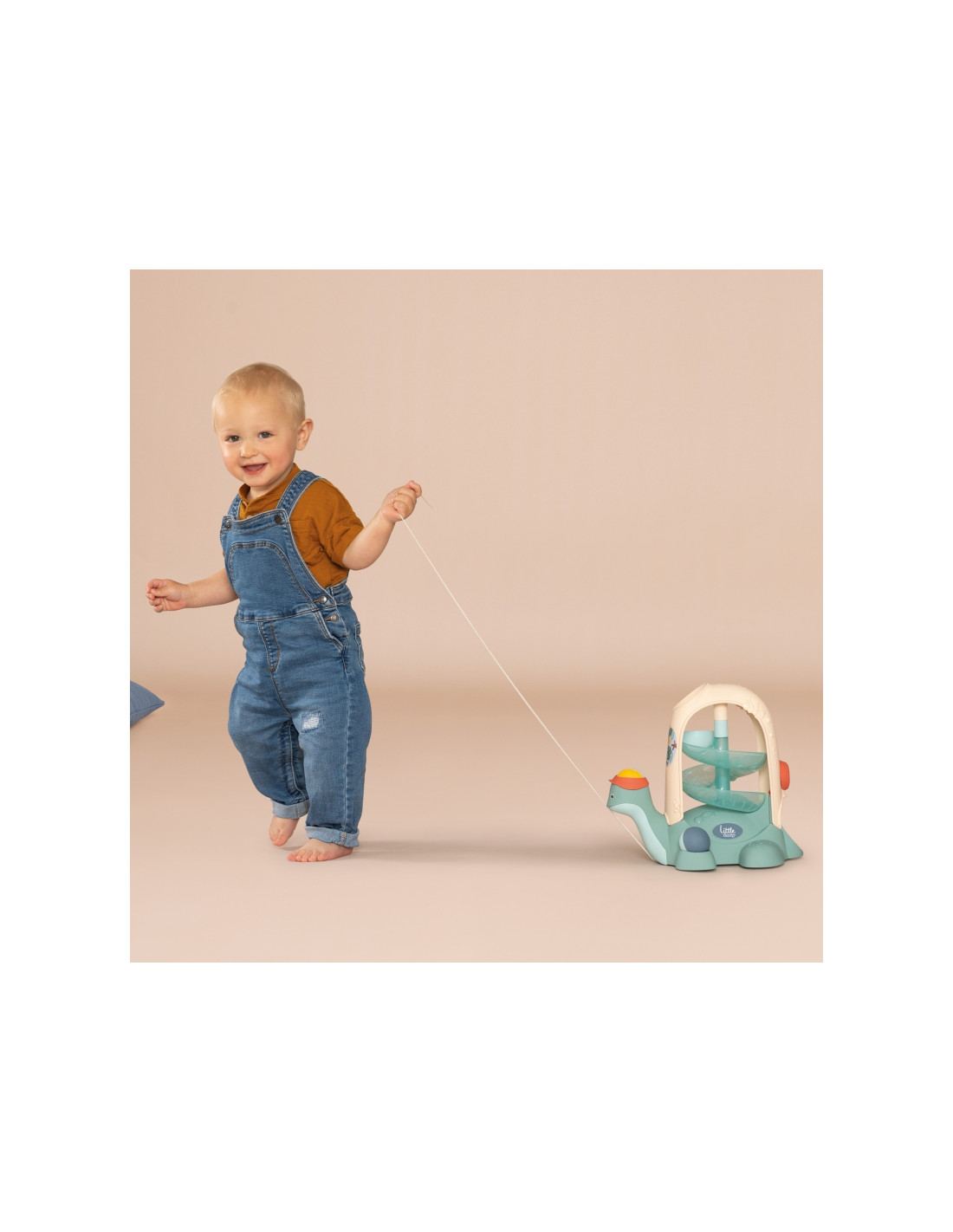 „SMOBY“ traukiamas vėžliukas su kamuoliukų čiuožykla 12 m+ yra daugiafunkcis žaislas, kuris motyvuoja vaikus aktyviai lavinti motorinius įgūdžius . Pasivaikščiojimas su šiuo žavingu gyvūnu padeda mažyliams lavinti motorinę koordinaciją. Šis spalvingas vėžliukas yra ne tik traukiamas žaislas, bet ir žavi kamuoliukų trasa! Įmetus kamuolį į skylę kiaute, jis slysta besisukančia čiuožykla žemyn! Šis žaislas skatina kiekvieno vaiko smalsumą. Smoby žaislas yra produktas, turintis didelę lavinamąją vertę .