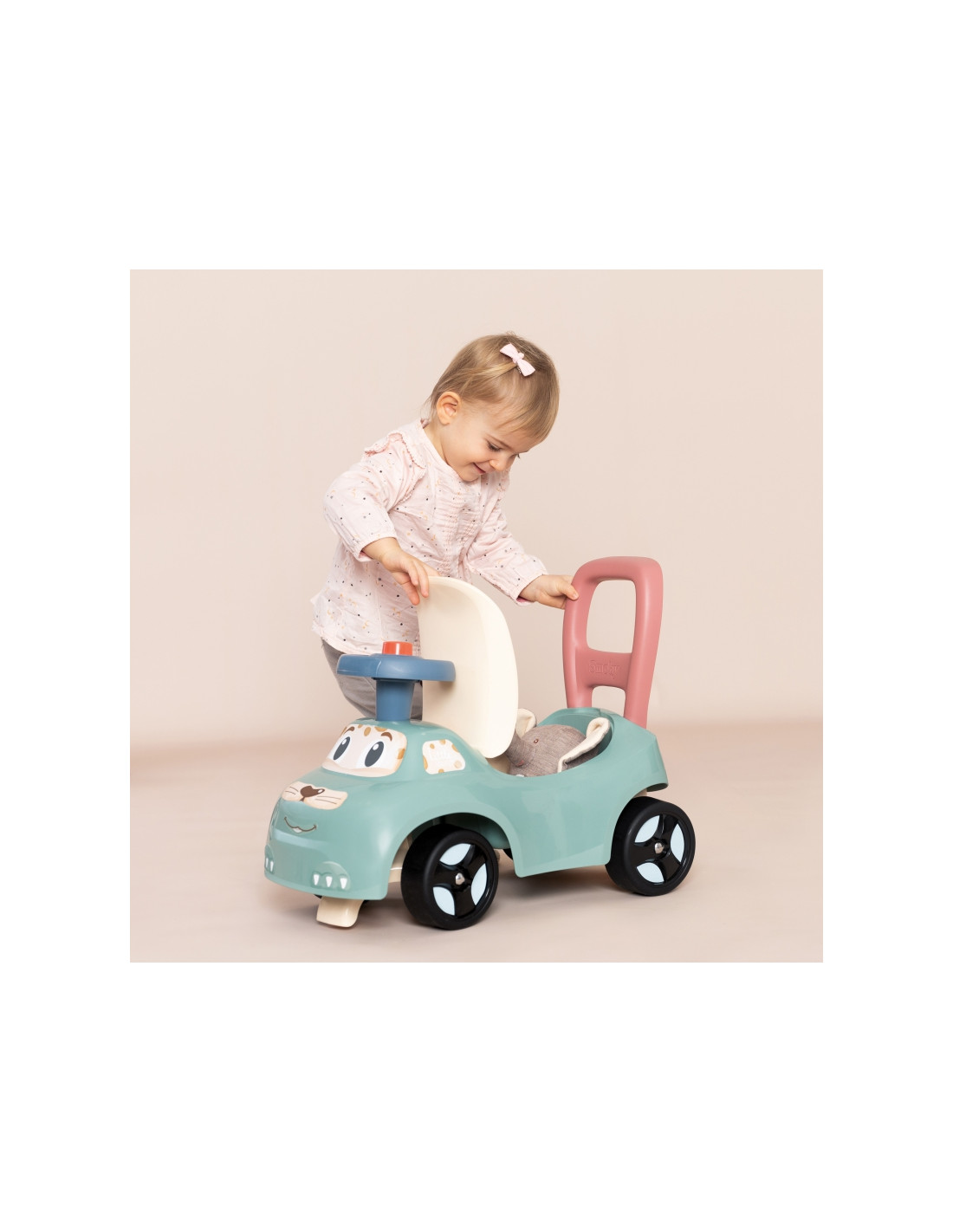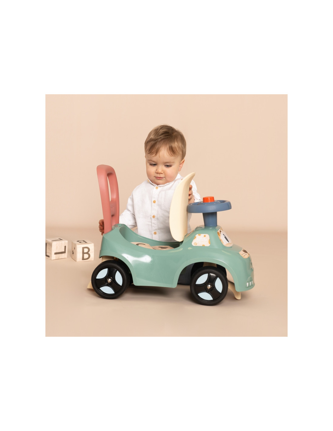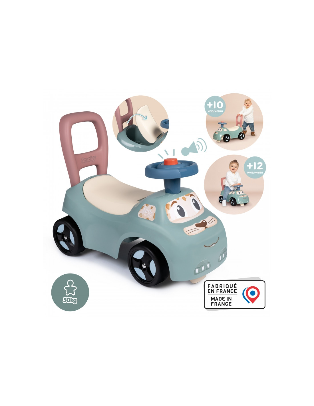Vežimėlis turi papildomą stūmimo funkciją . Šios funkcijos yra labai svarbios mažylio fiziniam vystymuisi ir motorinei koordinacijai . Vežimėlis idealiai tinka mokytis vaikščioti . Jis taip pat puikiai tinka kaip smagus žaislinis automobiliukas, leidžiantis vaikui laisvai judėti kojomis. Jis puikiai tinka naudoti tiek viduje, tiek lauke.